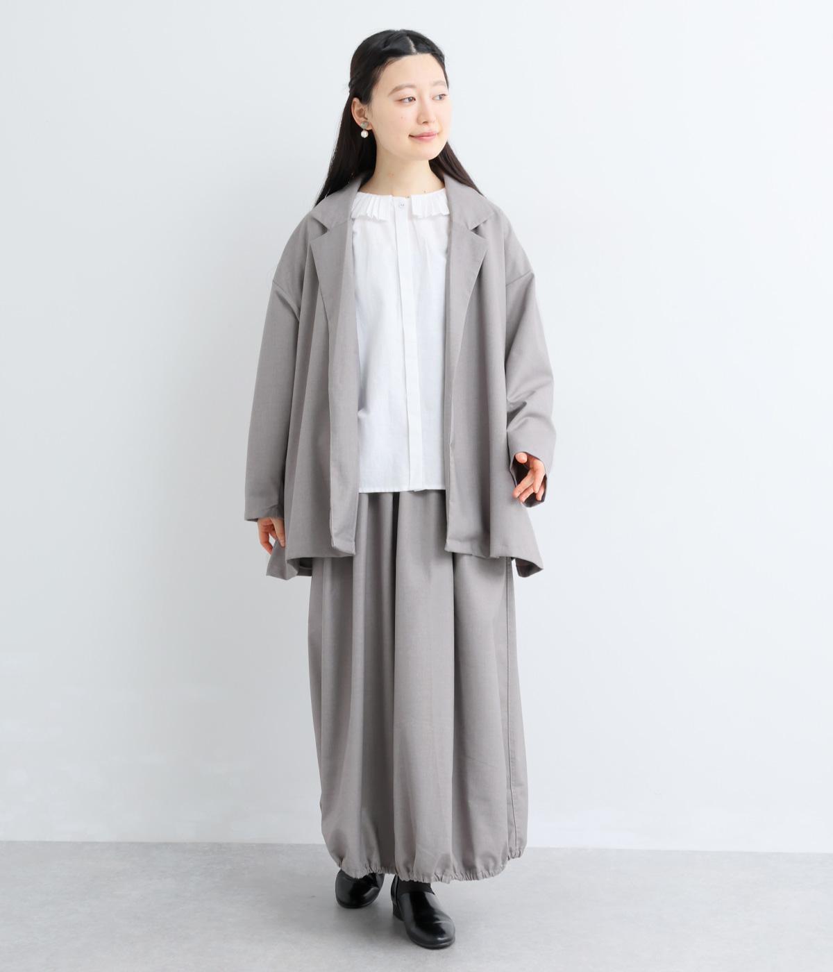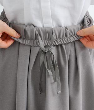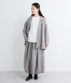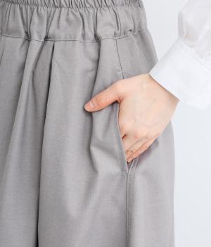 つるりとしたなめらかな表情と、ほのかなツヤが上品な印象を与えるTR素材で仕立てました。軽やかな着心地ながら、ほどよいハリ感があり、シルエットをきれいに保ちます。シワになりにくい素材なので、デイリーからフォーマルまで幅広いシーンで活躍します。