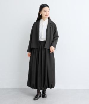 立体的なタック使いが特徴のバルーンスカート。ふんわりとしたボリューム感がありながらも、広がりすぎないので上品な印象に仕上がりました。自然な丸みが、女性らしいやわらかな雰囲気を演出。ウエストは太めの平ゴムで安定感があり、シルエットの美しさを引き立てています。およばれのシーンにもおすすめな一枚です。