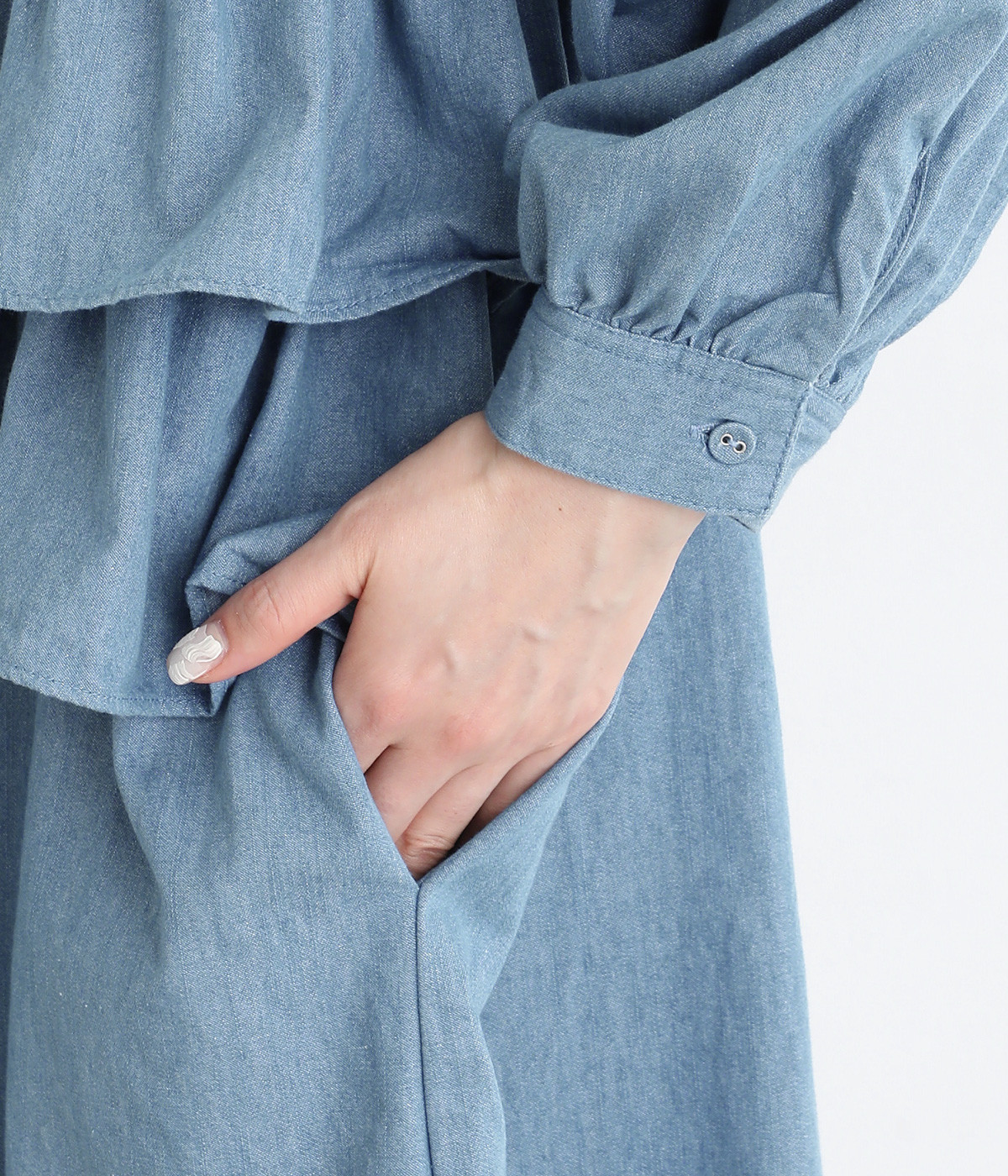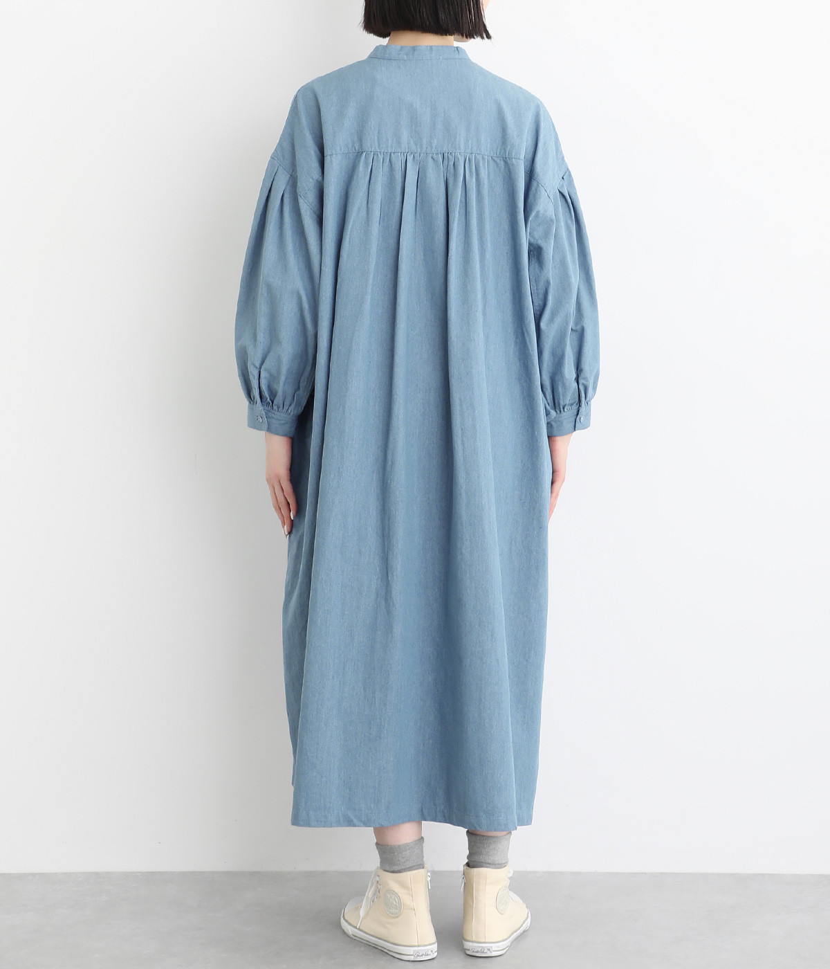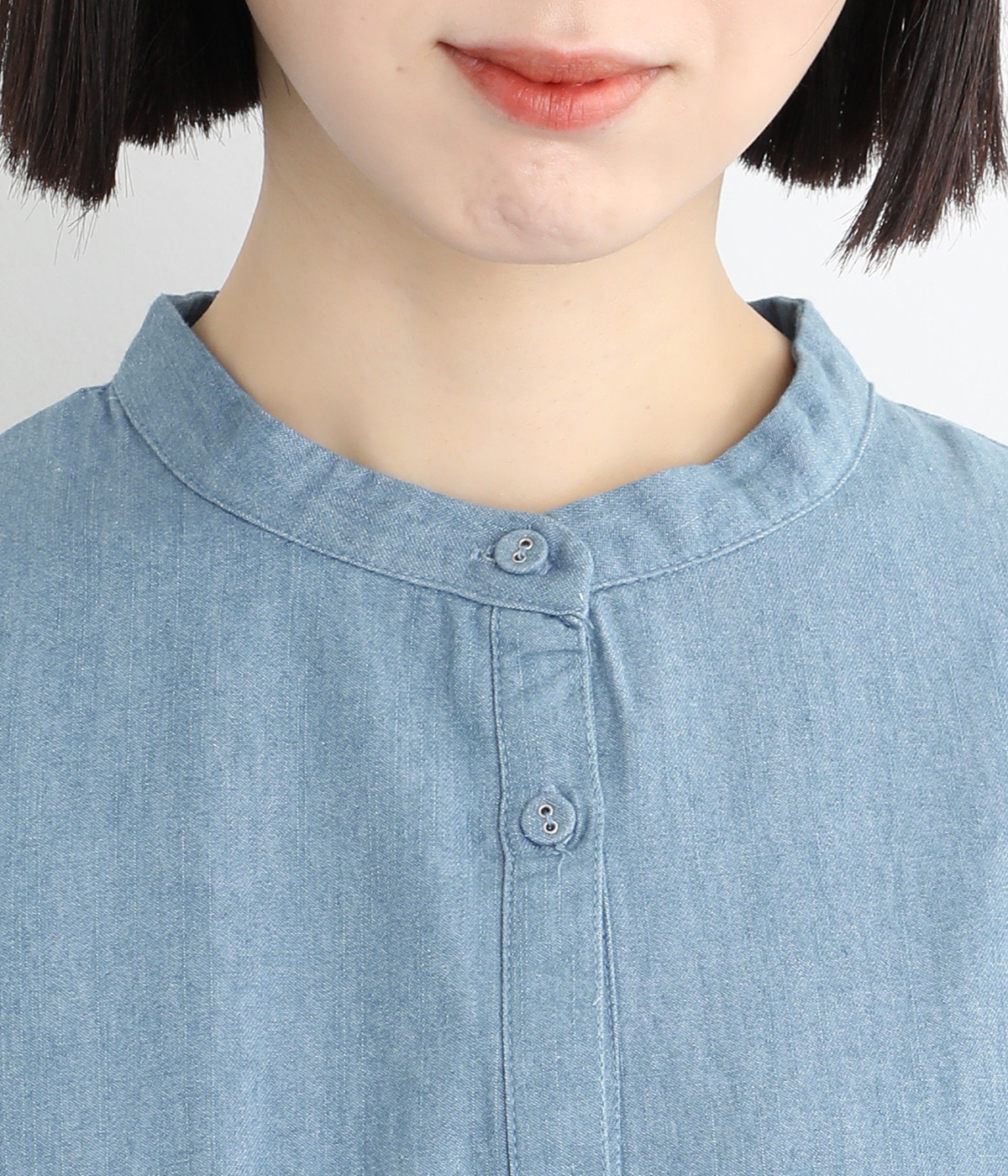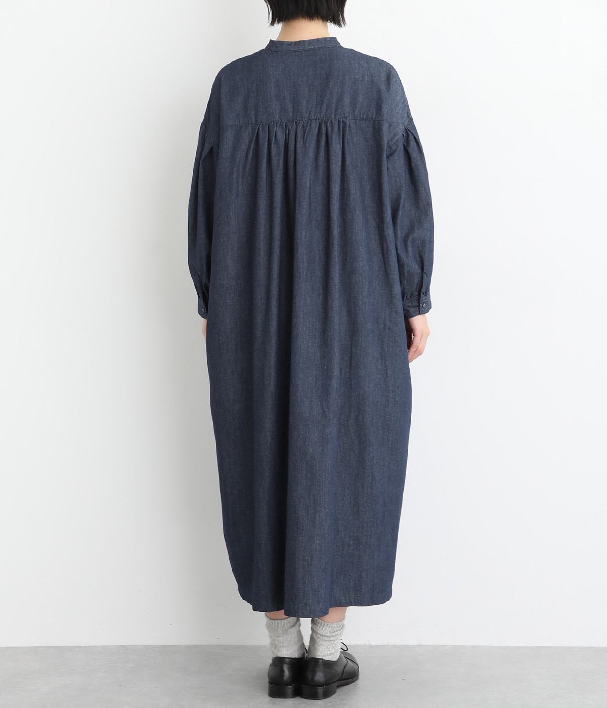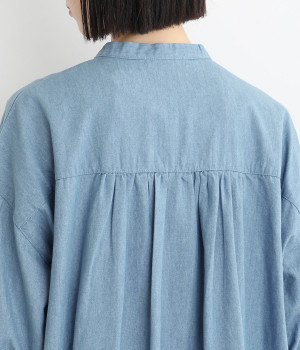 コットンリネンの混紡素材で仕立てたデニム生地を採用。コットンのしっかりとしたやわらかい風合いは残しつつ、リネンがブレンドされることによる軽やかさが加わったさらっとした仕上がりです。