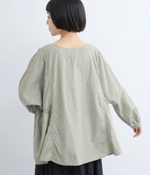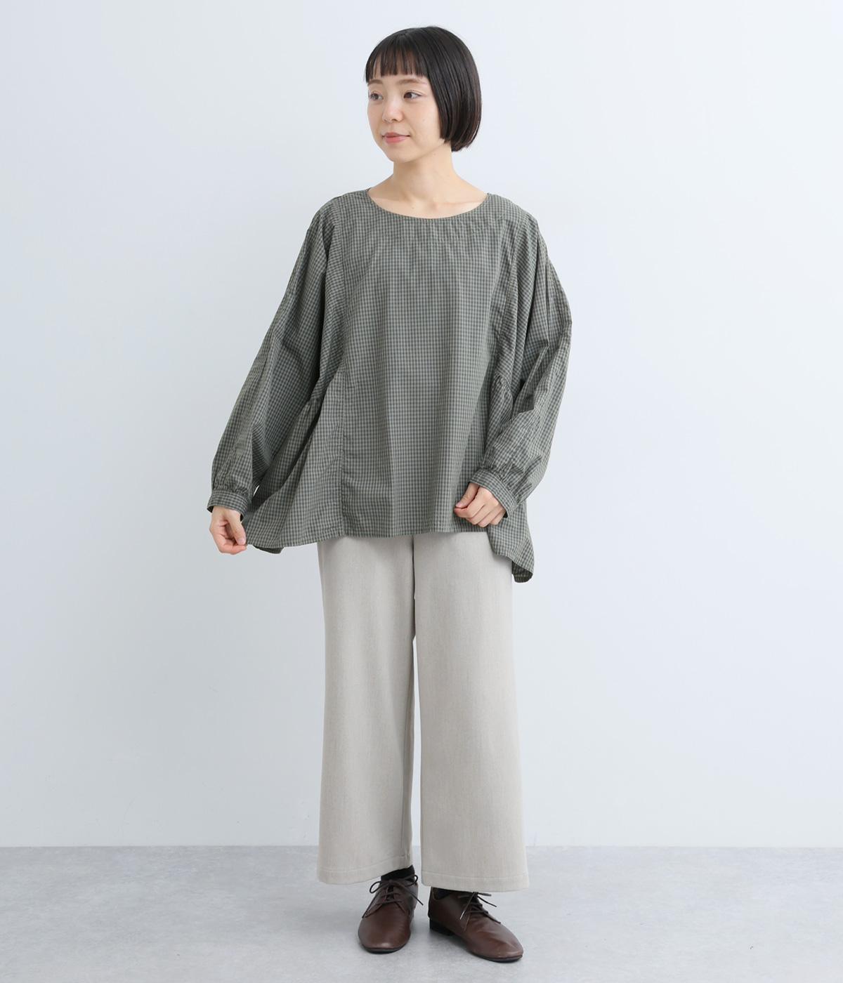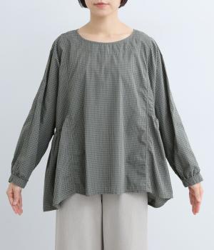 生地の切り替えが美しくリズミカル。裾の動きの軽快さが魅力的です。サイドのギャザーでゆとりのあるシルエットを表現し、体型を選ばず着用できます。サラリとした生地で重ね着もスムーズ。カジュアルにもきれいめにも着こなせる一枚です。