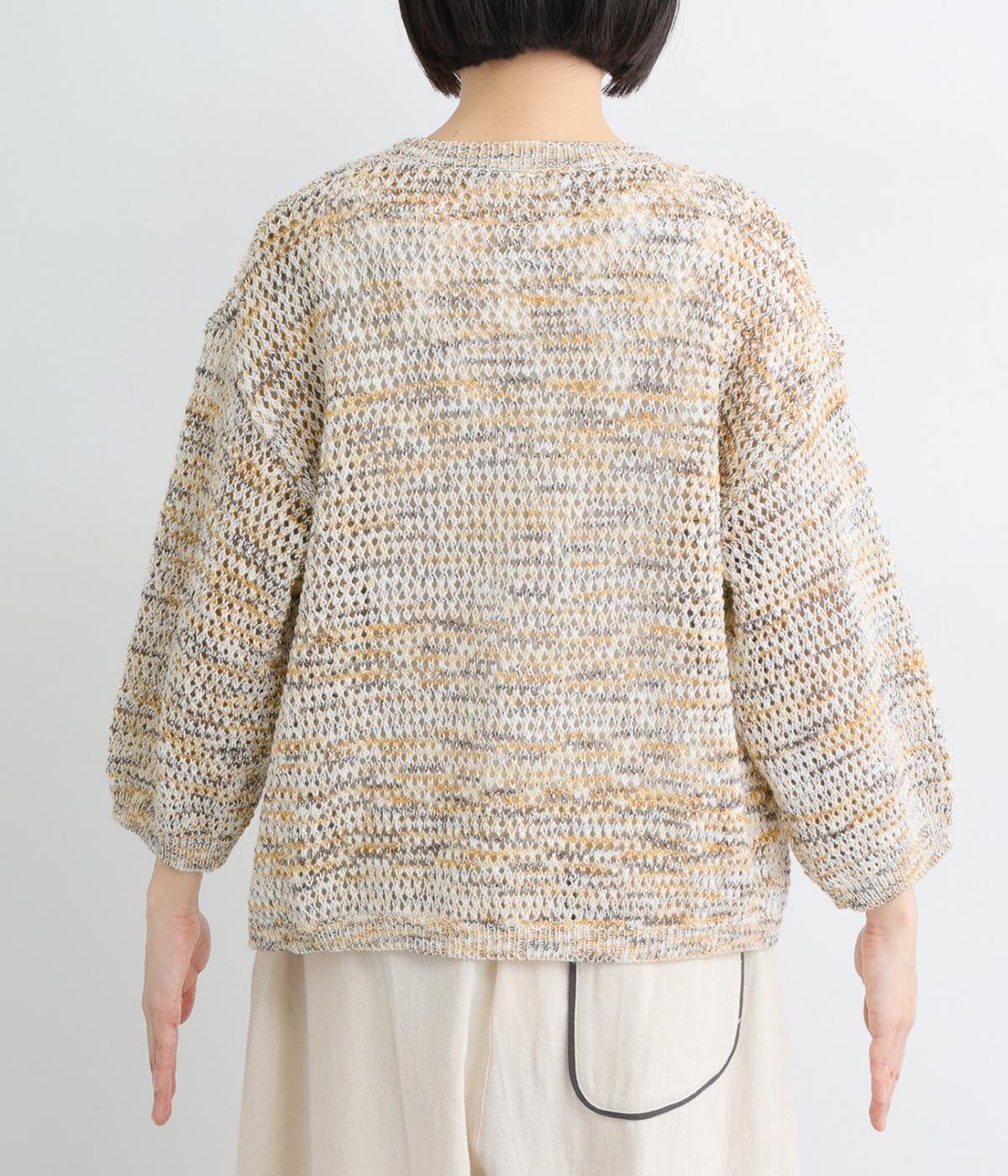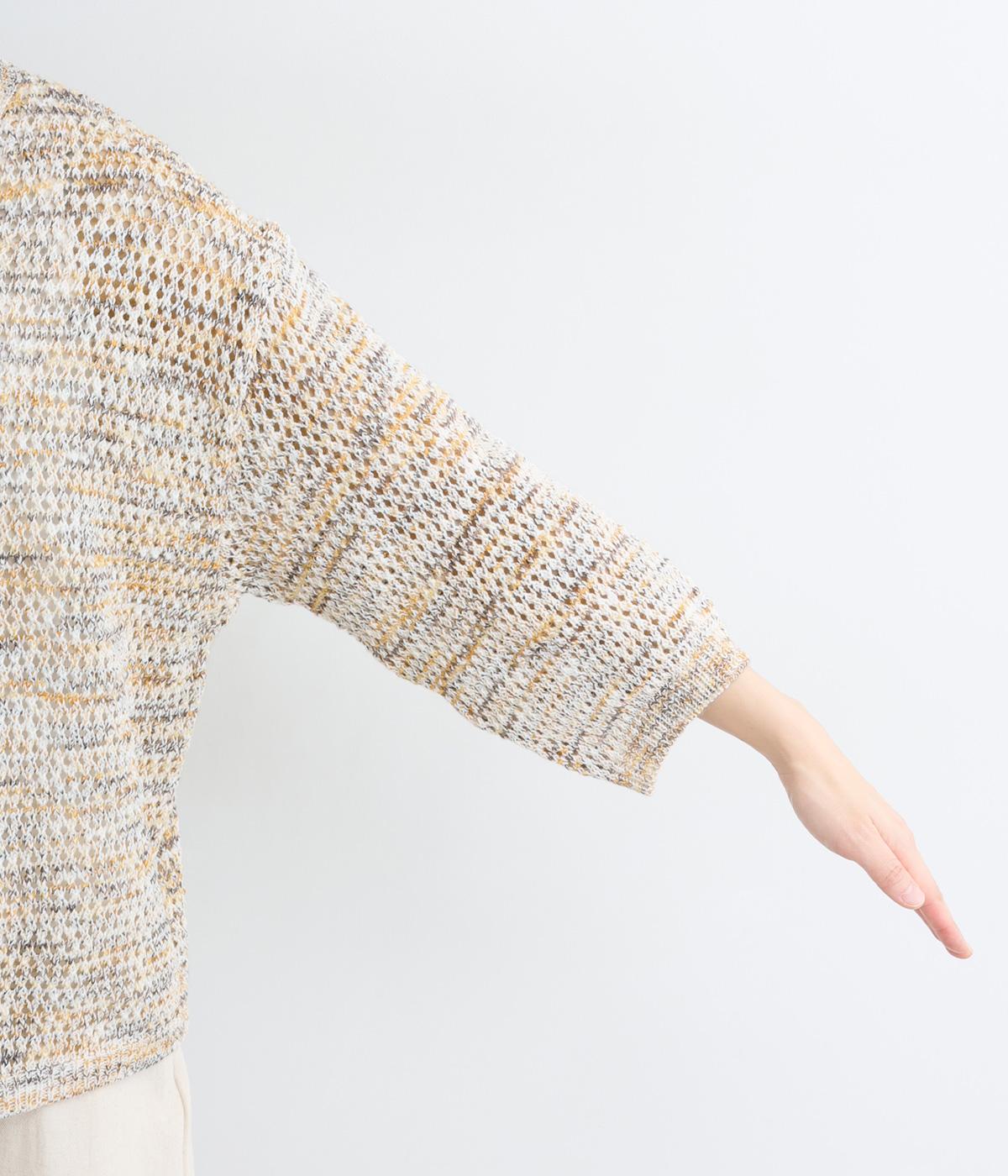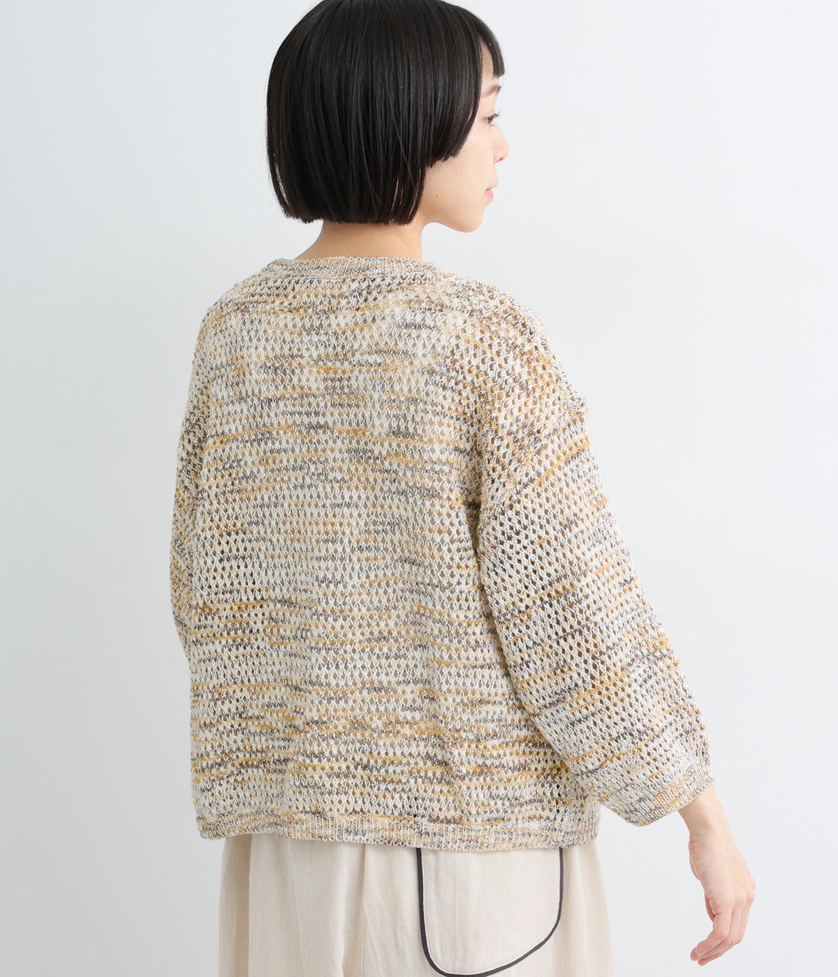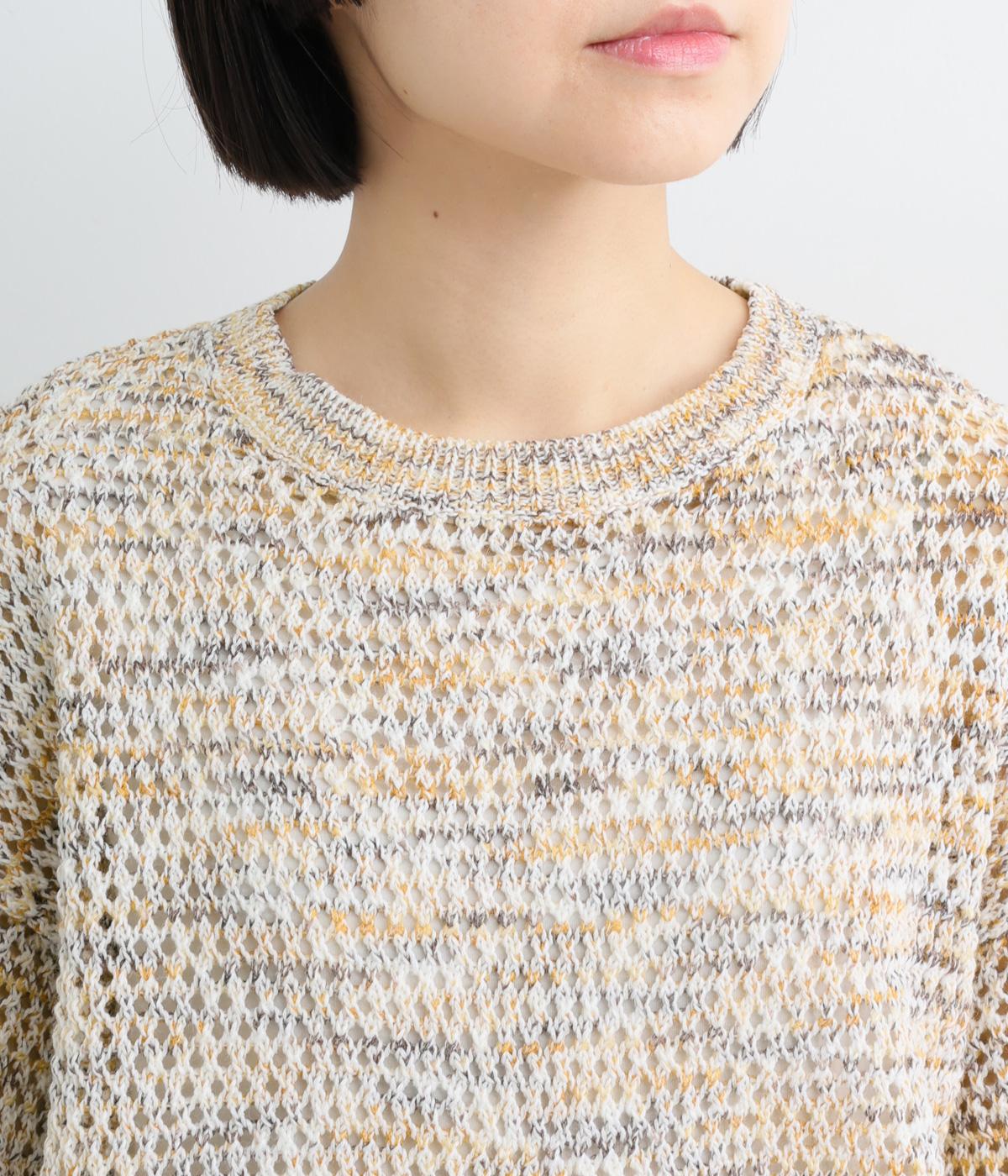 一本の糸を多色に染めたかすり糸が美しい陰影を生み、奥行きのある上品さを演出。メッシュ調の編み地で、ヘルシーな抜け感もプラスしています。