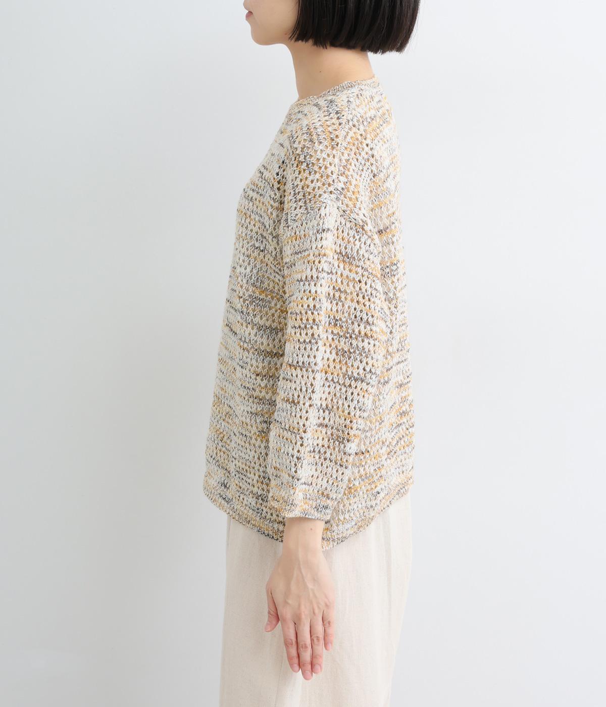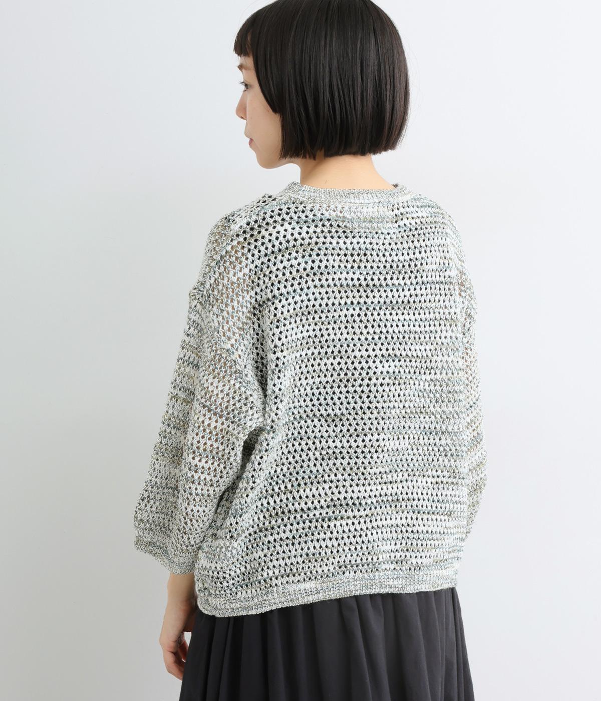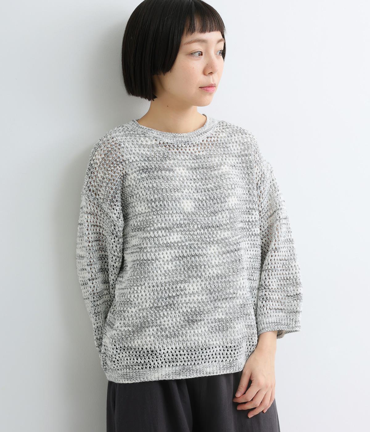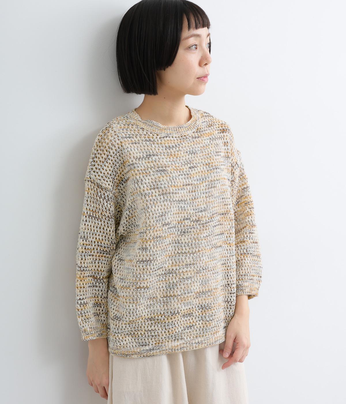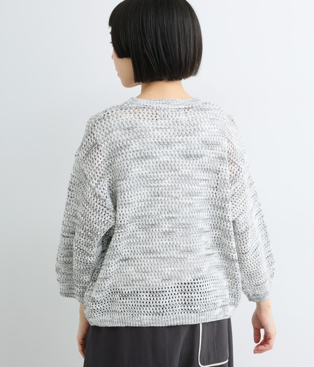 一本の糸を多色に染めたかすり糸が美しい陰影を生み、奥行きのある上品さを演出。メッシュ調の編み地で、ヘルシーな抜け感もプラスしています。