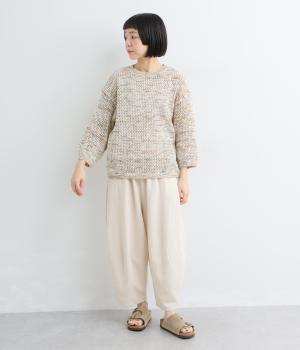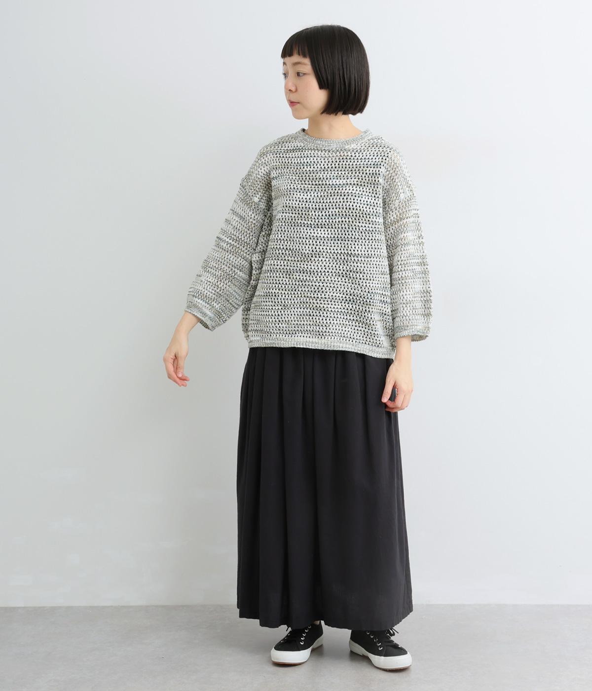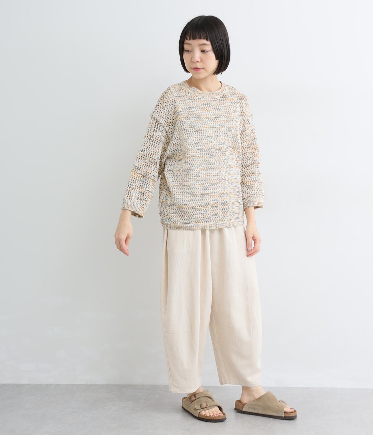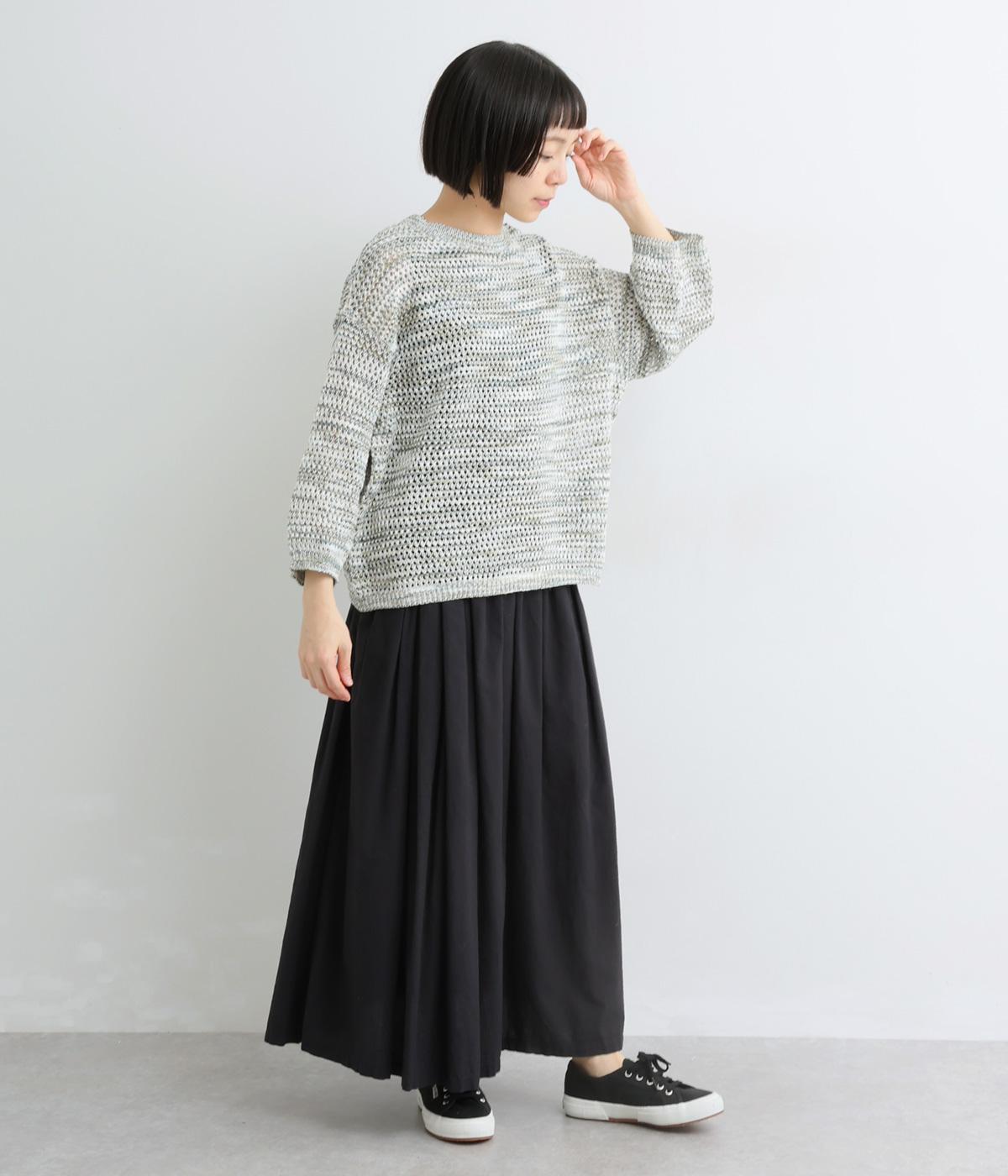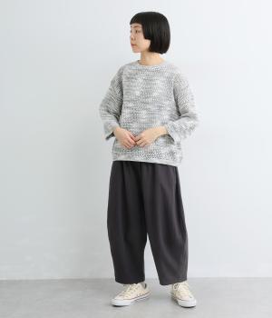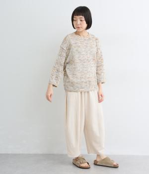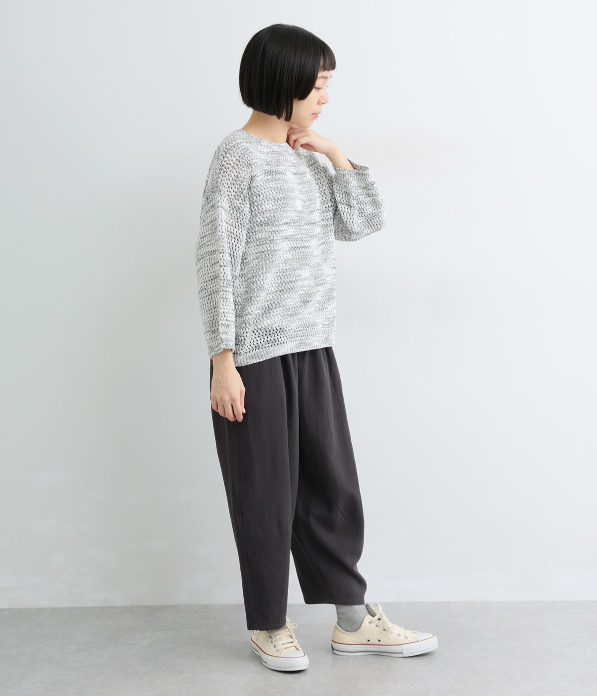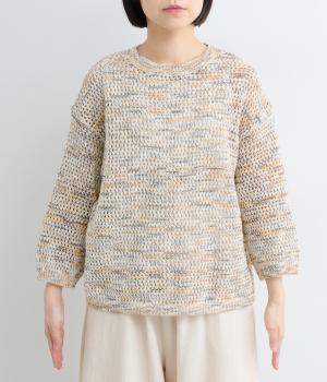 一本の糸を多色に染めたかすり糸が美しい陰影を生み、奥行きのある上品さを演出。メッシュ調の編み地で、ヘルシーな抜け感もプラスしています。