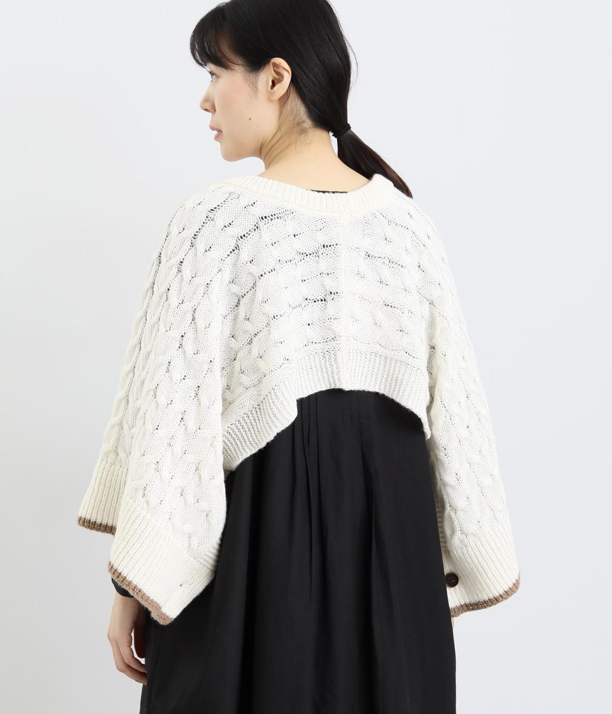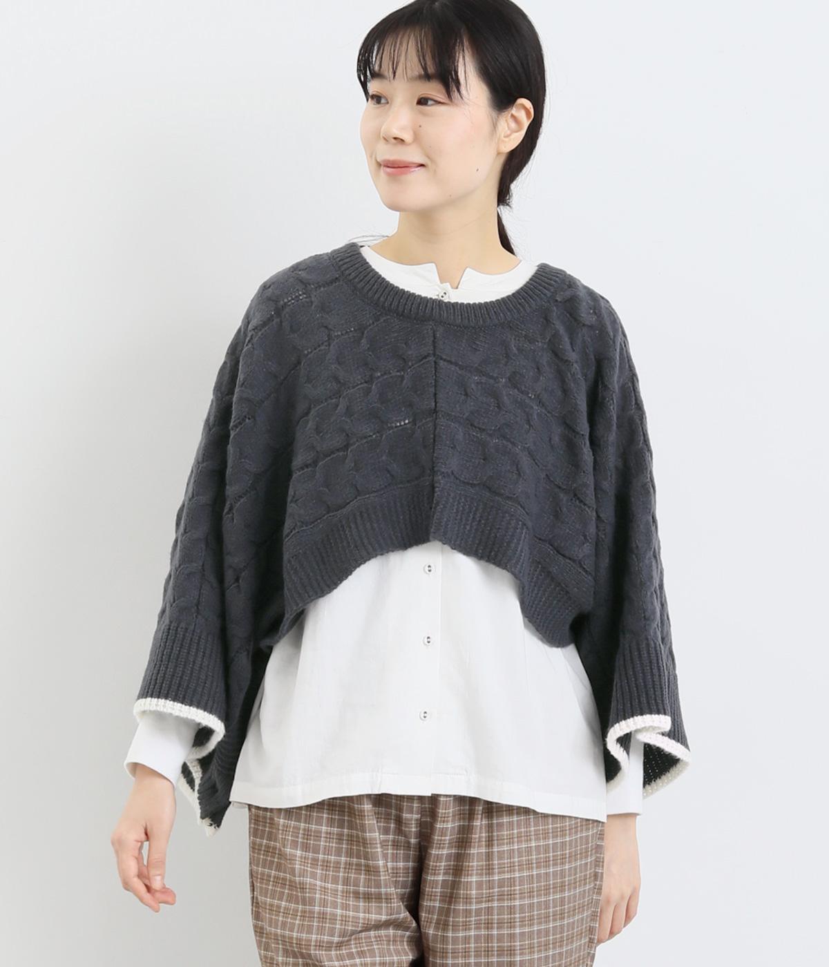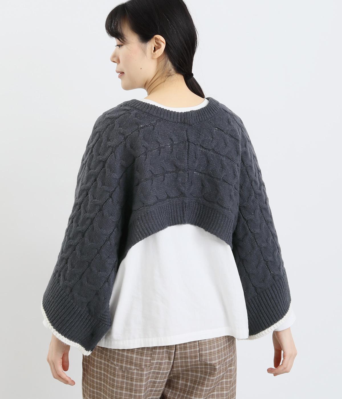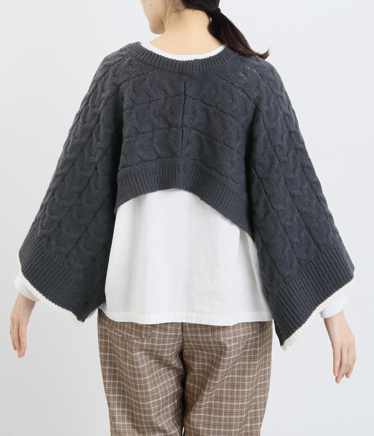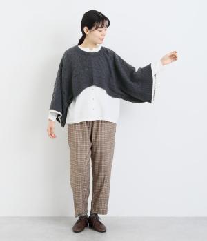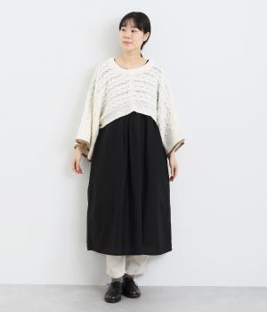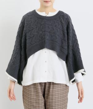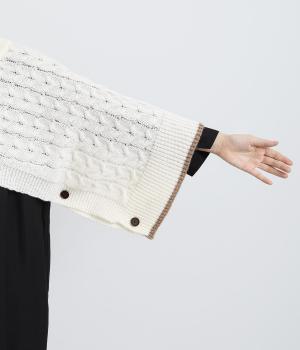 なめらかさが特徴のポリエステル素材。軽量で持ち運びもしやすく、外出時に気軽に羽織ることができます。大きめに編まれたニットはスイートな印象。色違いの裾もコーディネートのアクセントになります。