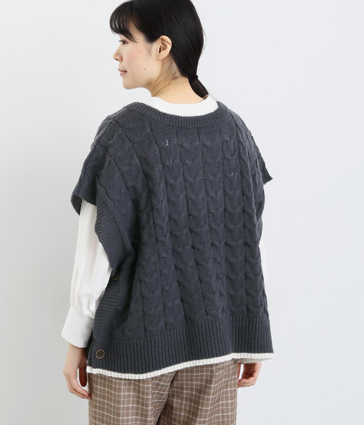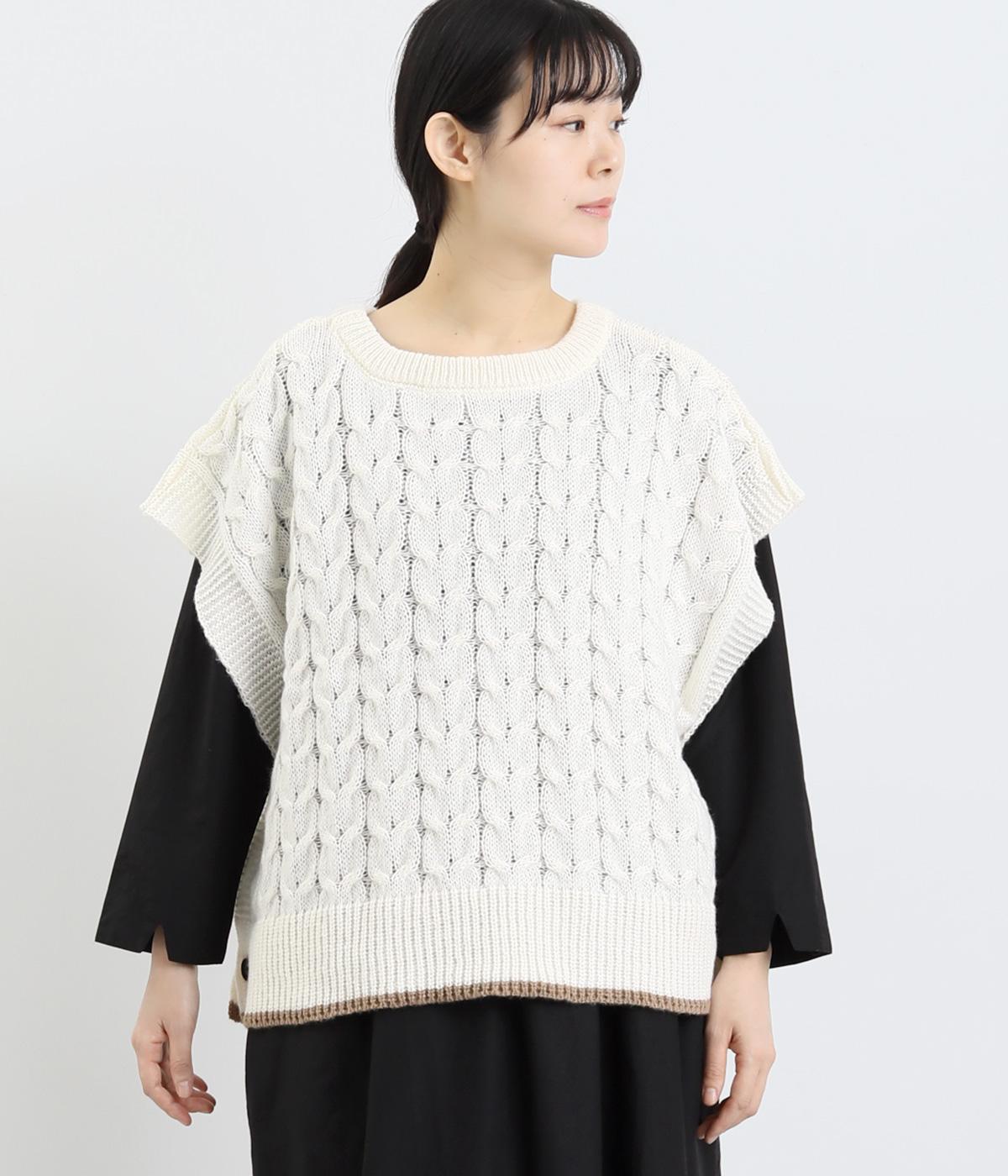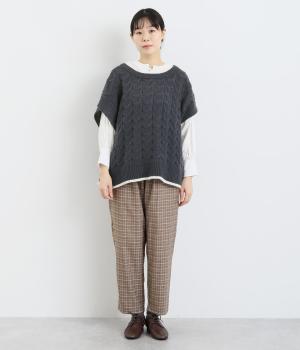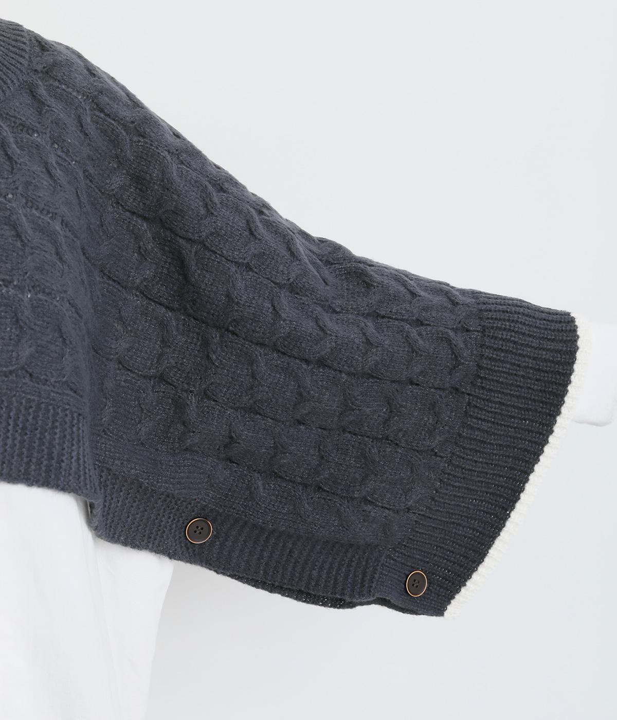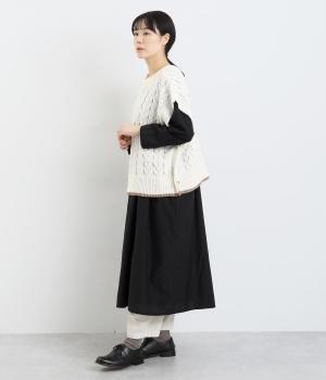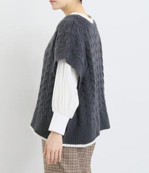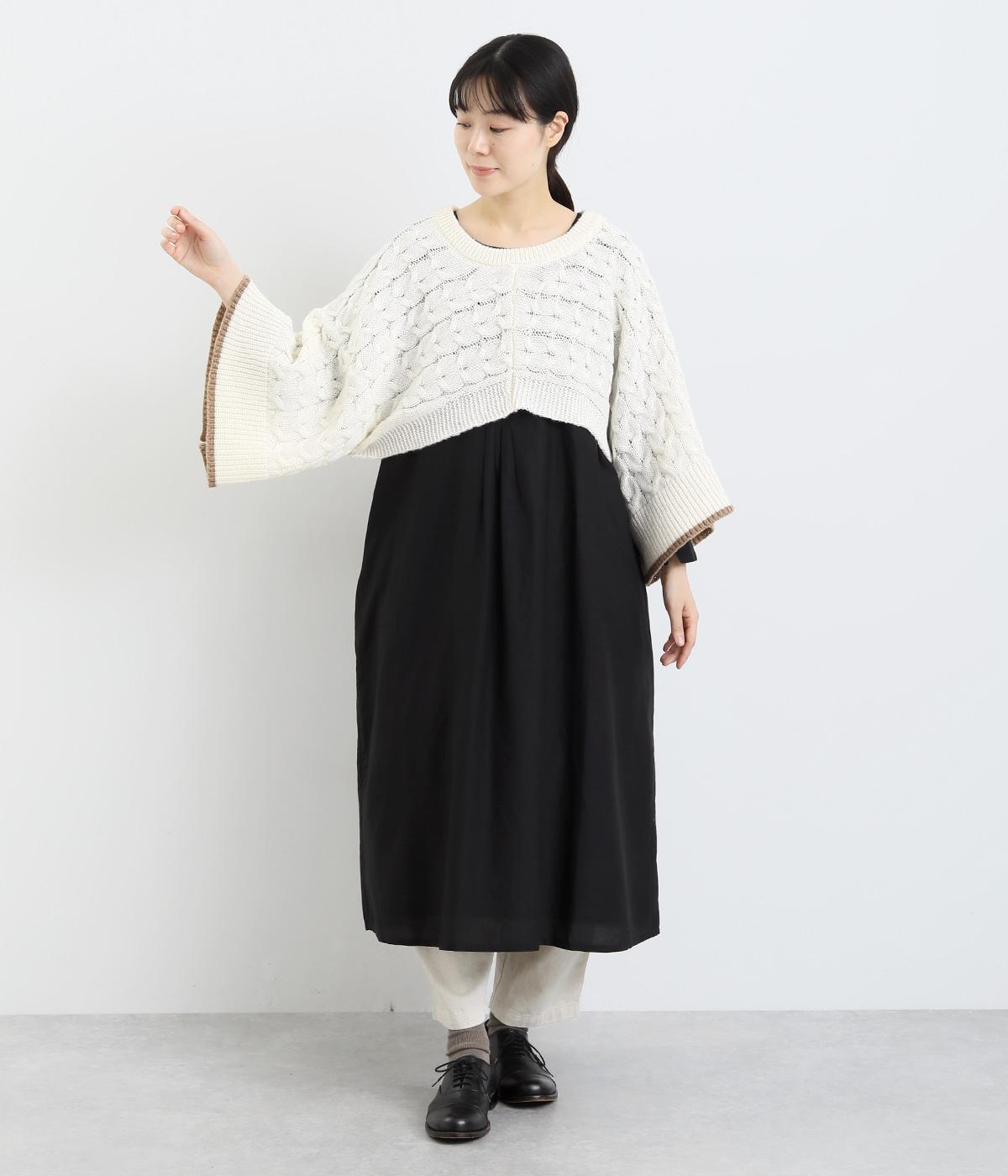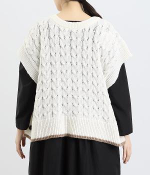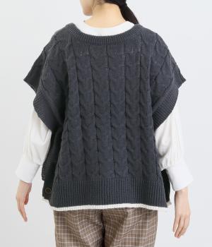 なめらかさが特徴のポリエステル素材。軽量で持ち運びもしやすく、外出時に気軽に羽織ることができます。大きめに編まれたニットはスイートな印象。色違いの裾もコーディネートのアクセントになります。