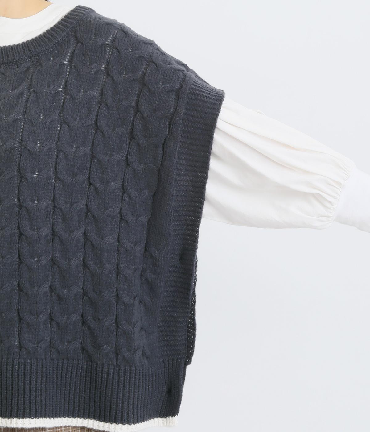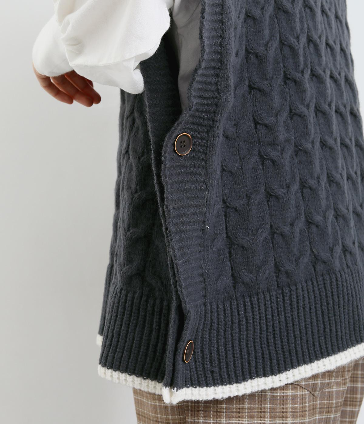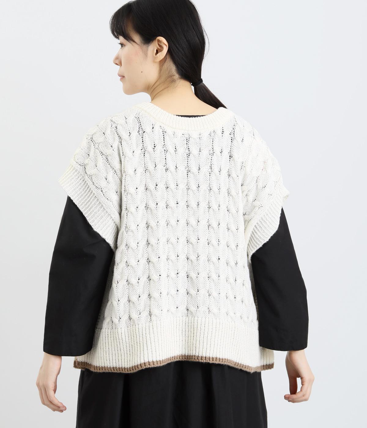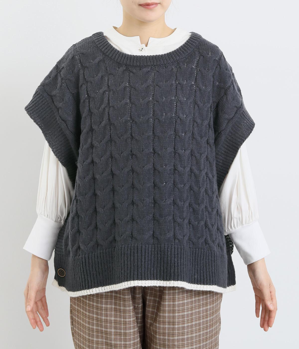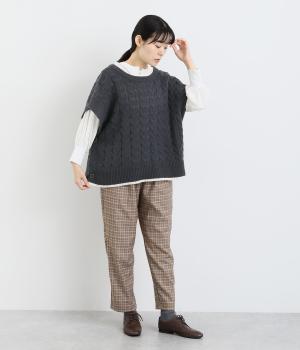 なめらかさが特徴のポリエステル素材。軽量で持ち運びもしやすく、外出時に気軽に羽織ることができます。大きめに編まれたニットはスイートな印象。色違いの裾もコーディネートのアクセントになります。