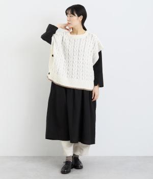 気分に合わせて2wayで楽しめるベストです。サイドのボタンを留めたまま抜け感が引き立つベストとして、サイドを前にずらし腕の下でボタンを留めてショートボレロ風に。着方と重ね着次第でさまざまな表情をみせてくれる一着です。