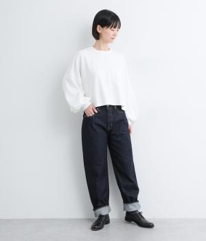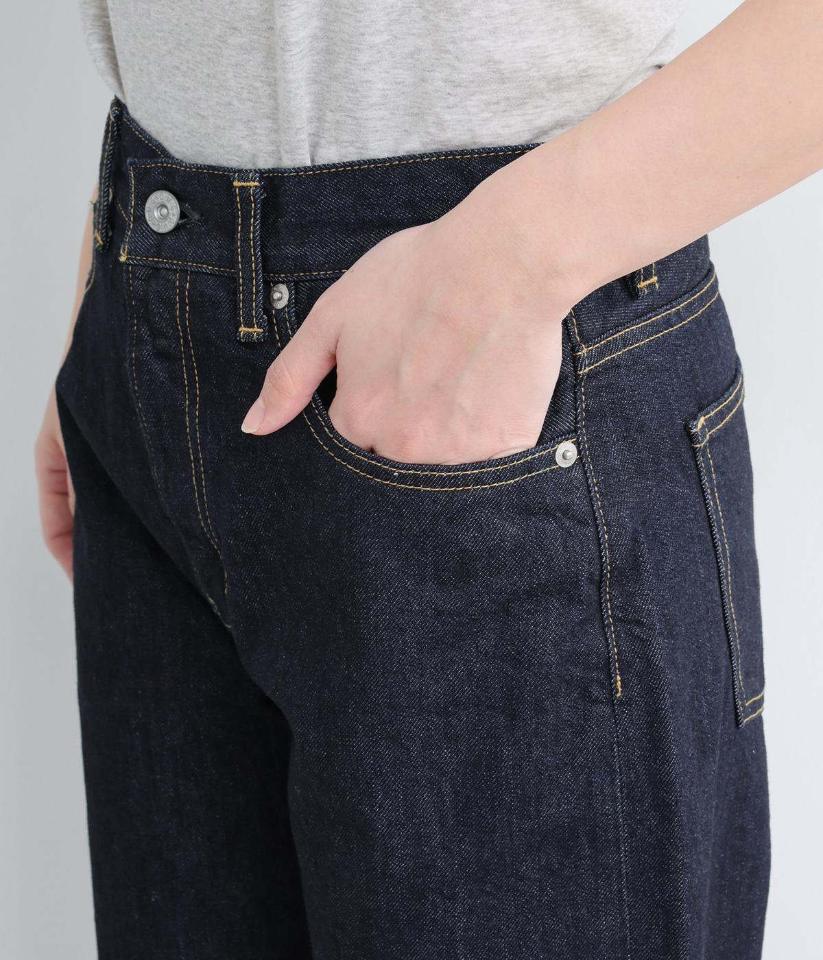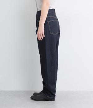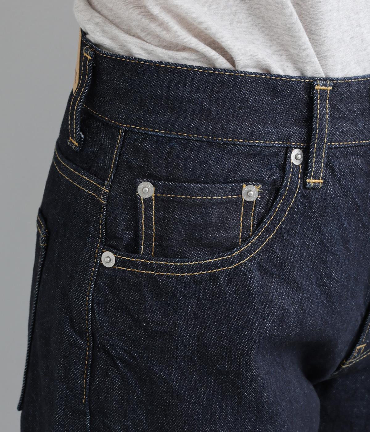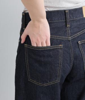 パリッとした質感が心地よいコットンデニムを採用。厚地すぎないのでオールシーズンはきやすく、はくほどになじんでいく経年変化もたのしみです。