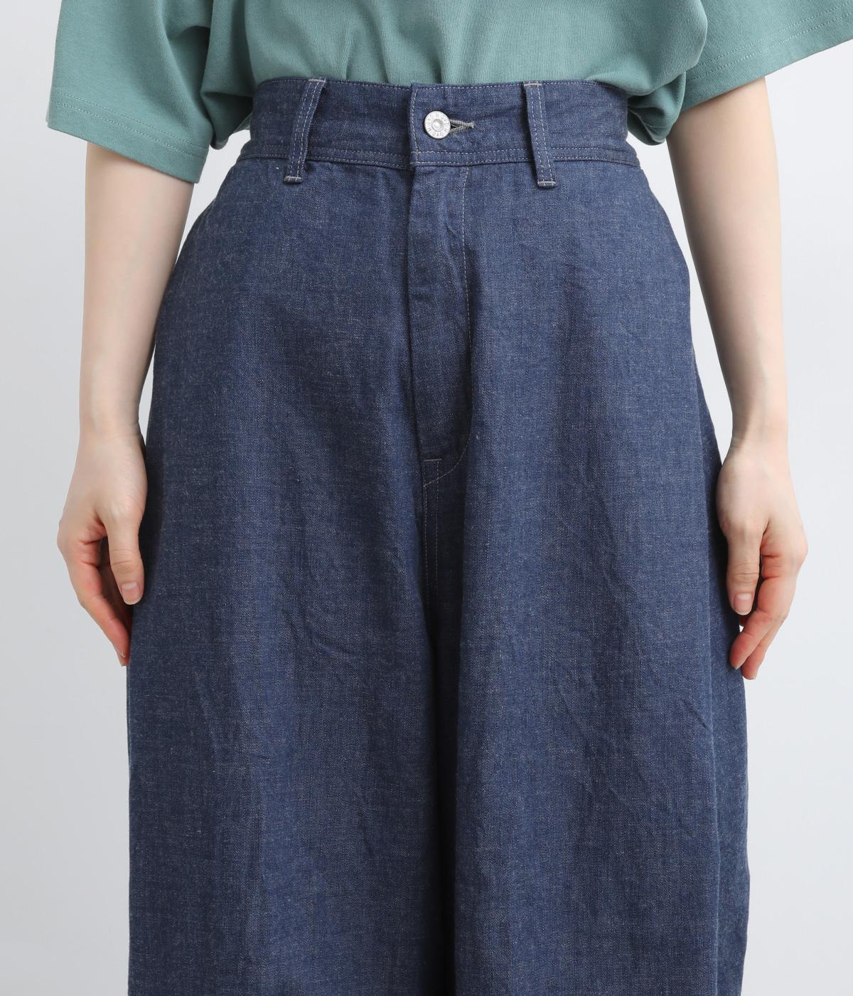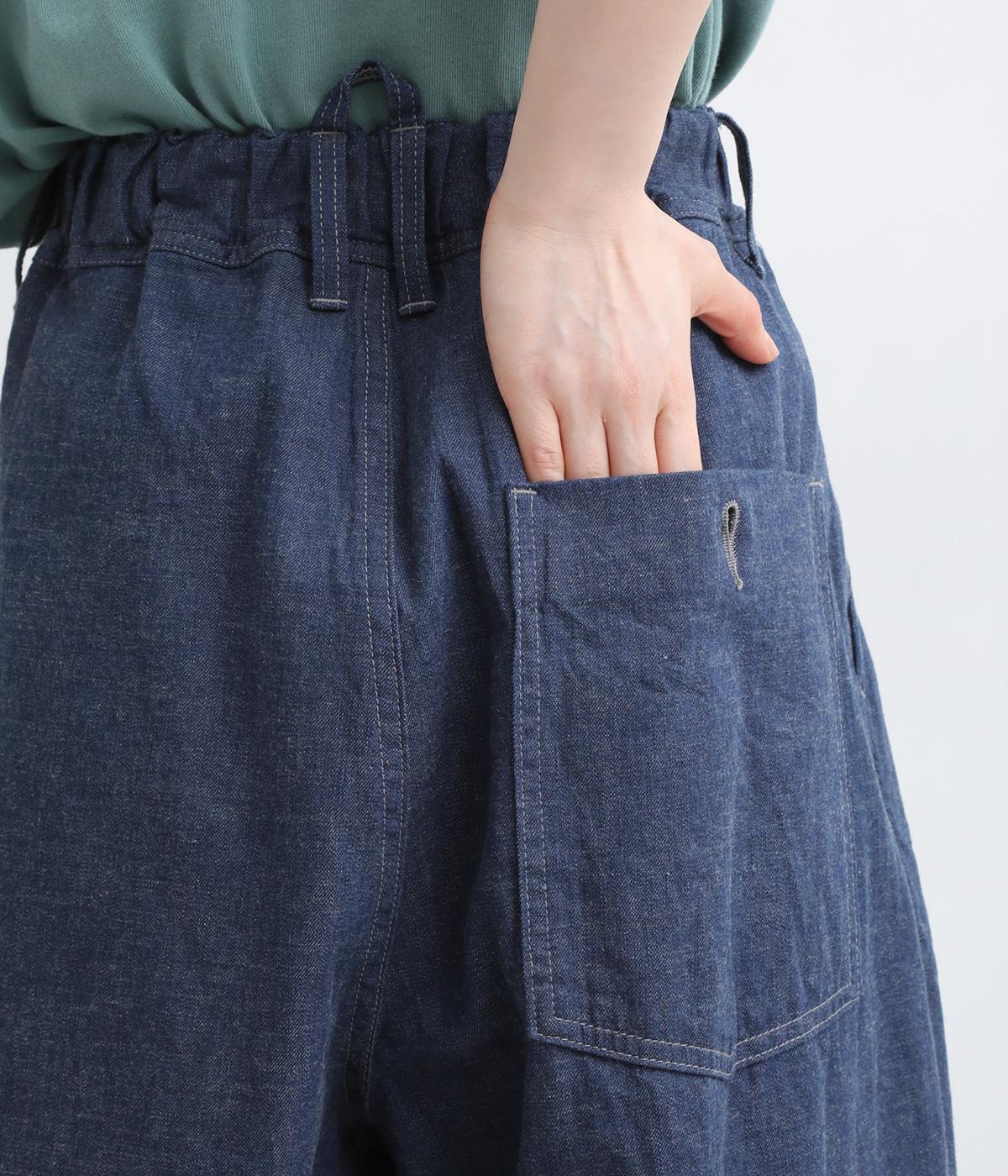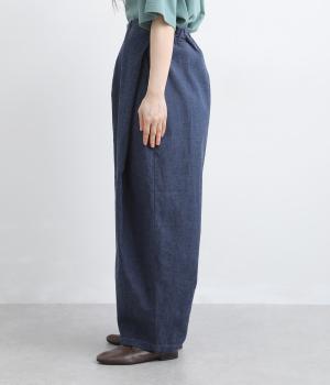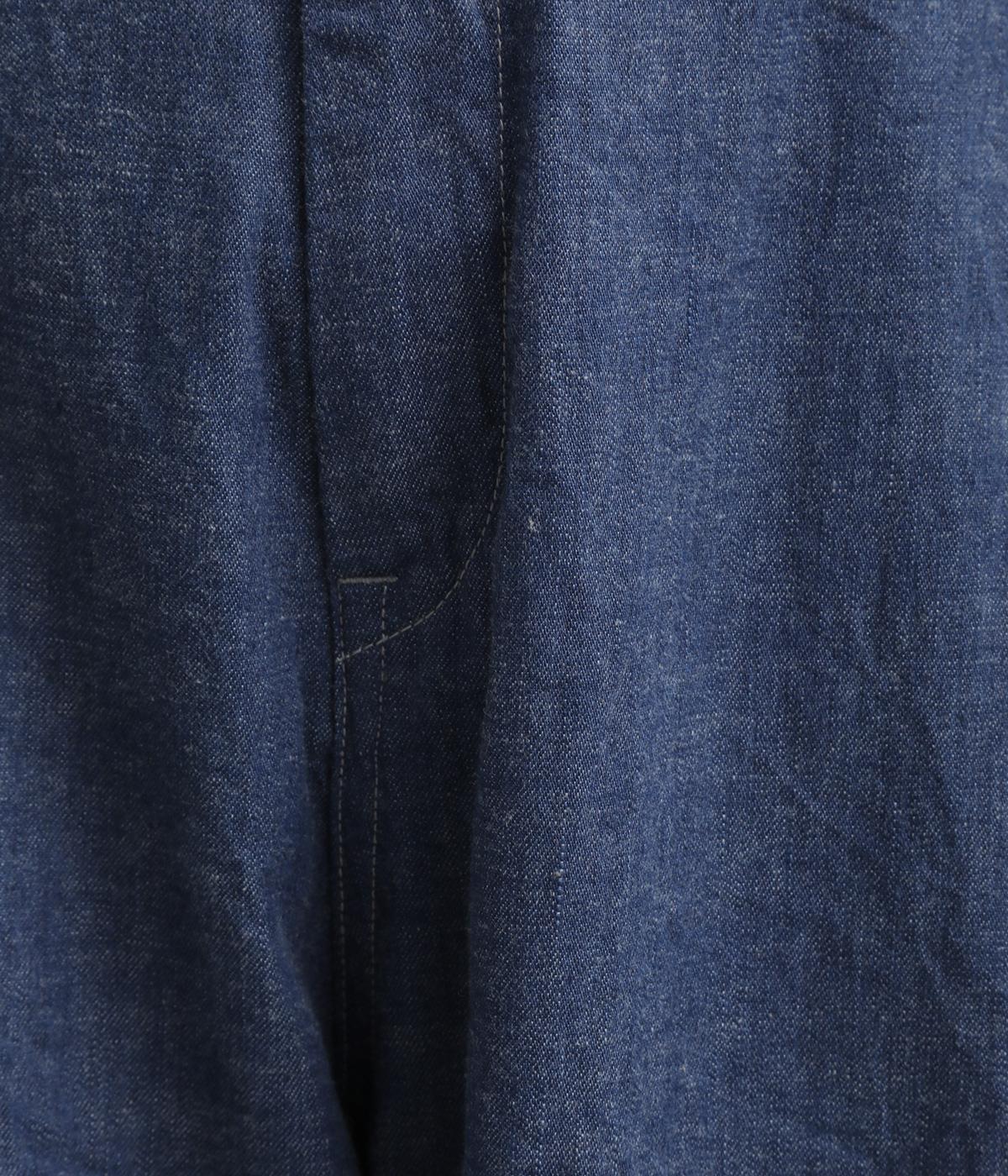 ワンウォッシュ加工でこなれ感を引き出したコットンデニムを使用。軽めの生地感で通年はきやすく、インディゴ染めによるエイジングもたのしみです。