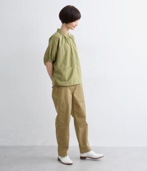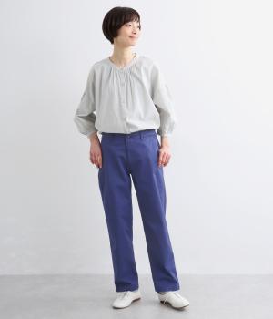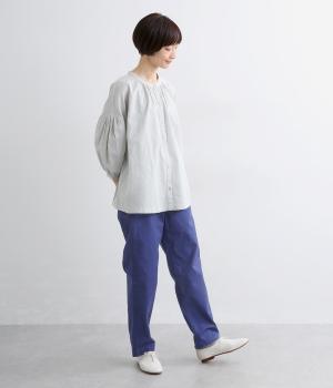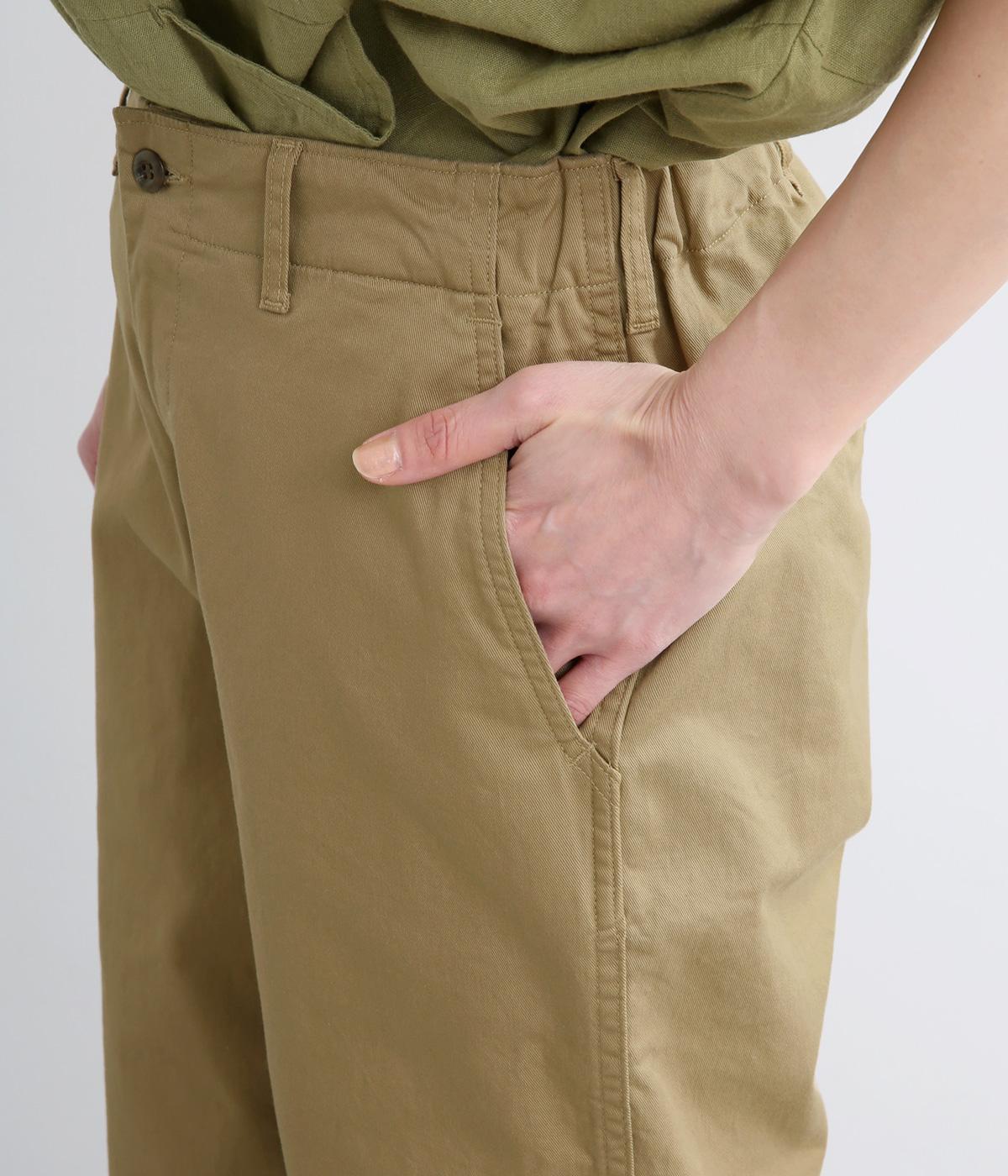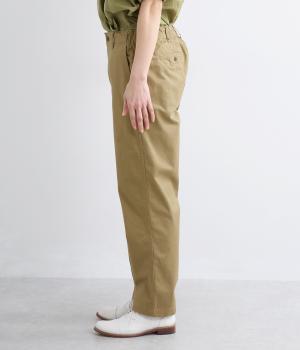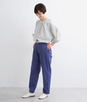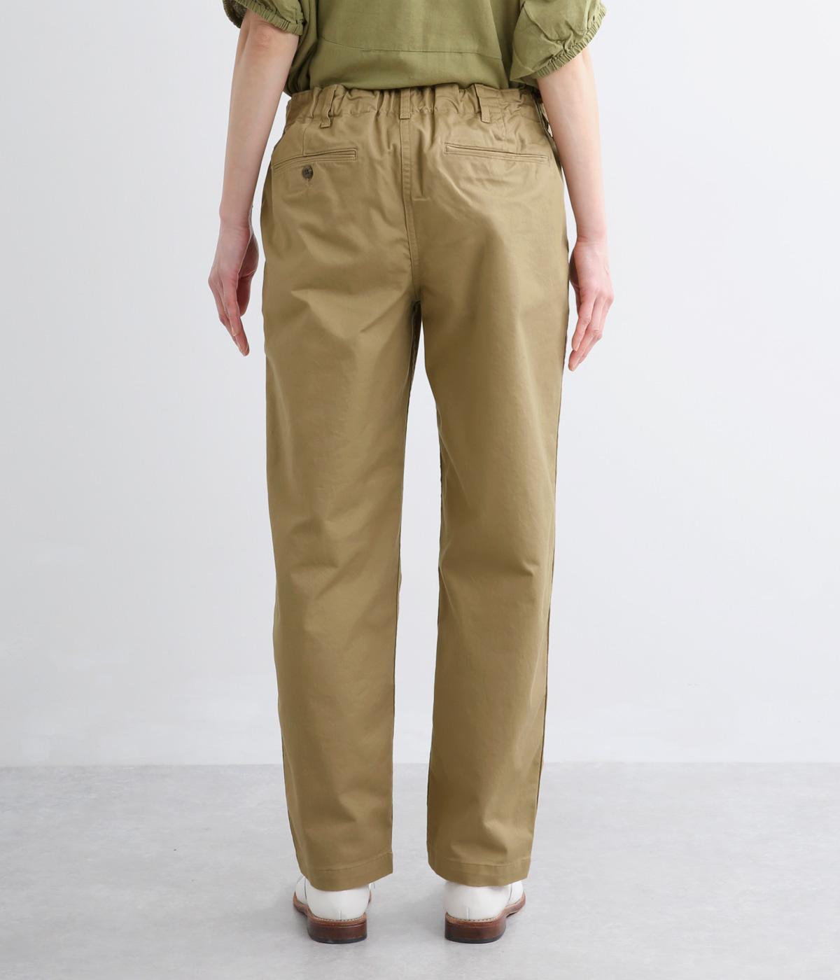 クリーンな生地感にすっきりとしたシルエットが大人のきれいめスタイルをアシスト。フィットしすぎず、ルーズすぎず、絶妙なラインでメインからレイヤードまで幅広く活躍。後ろウエストゴム仕様ではき心地の良さを高め、前はフラットに。