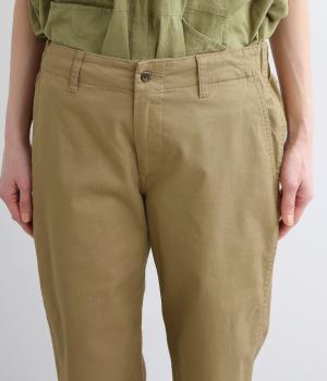 ブランドオリジナルのコットンをベースにしたストレッチ素材を使用。やわらかさと適度なハリが特徴で、しっかり伸びて日常の動作を妨げずフィットしてくれます。