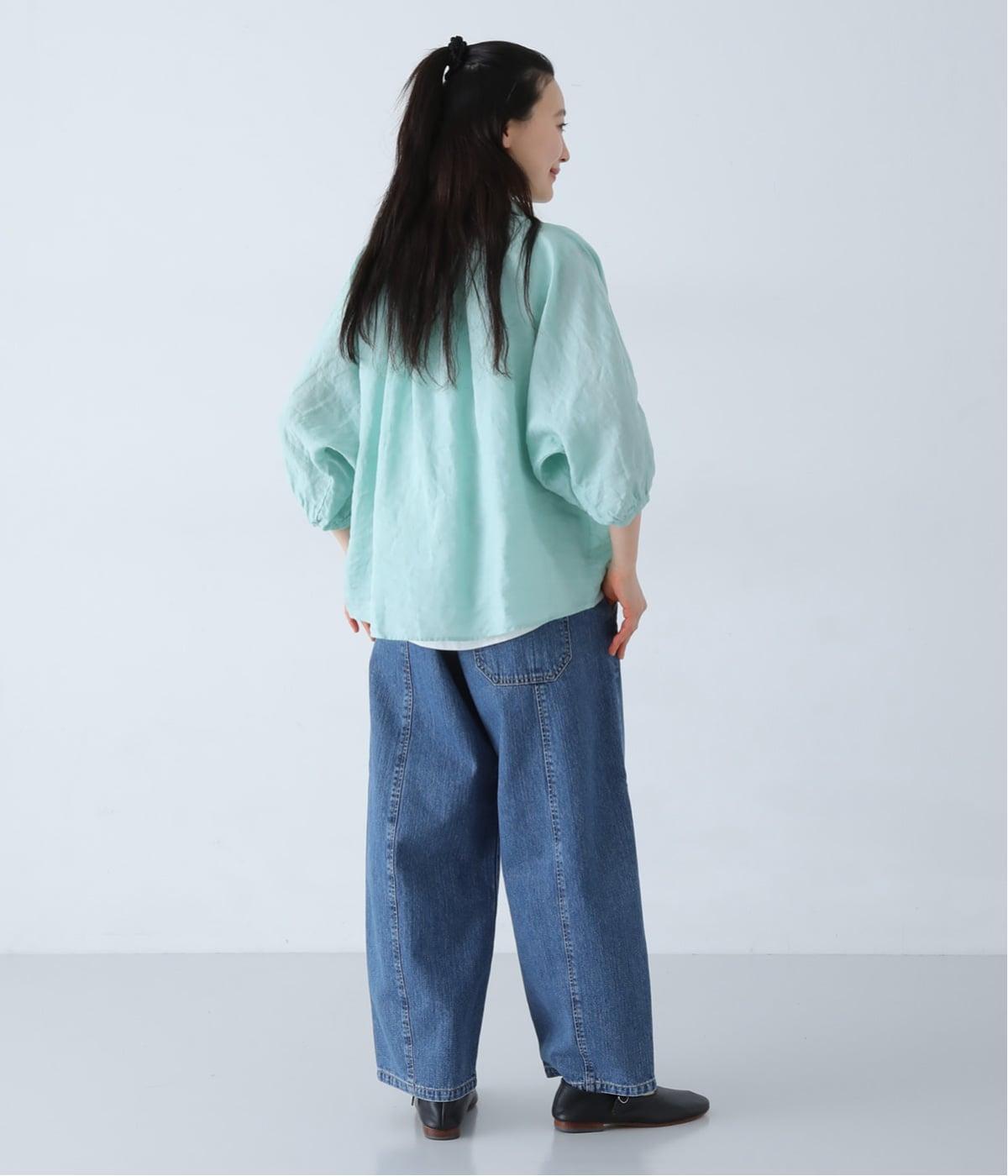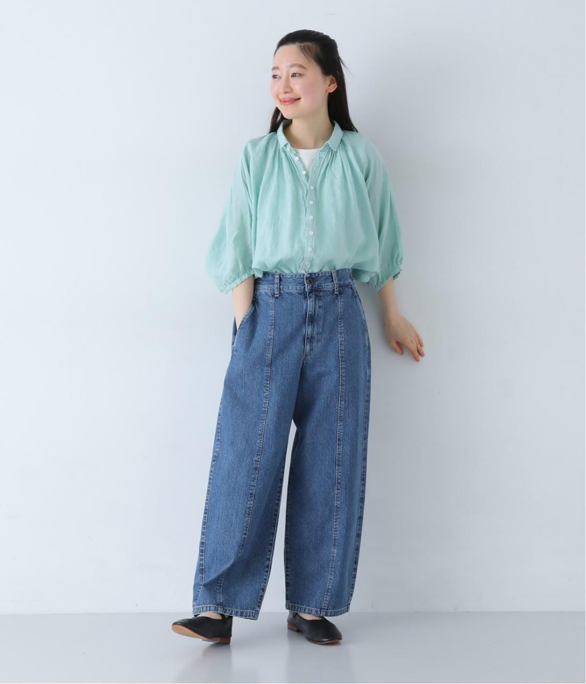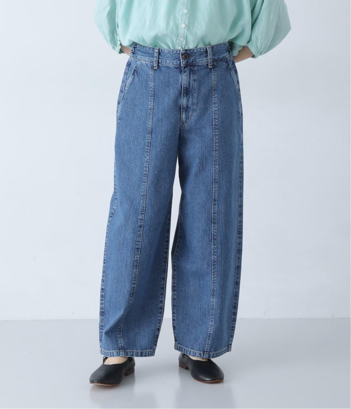ほどよい厚みが魅力の、10ozデニム生地。ムラ糸ならではのナチュラルな表情が、カジュアルさのなかにも奥行きを演出します。ソフト加工を施すことで、しっかりとしたハリを残しつつも、やわらかな質感に。デイリーに取り入れやすい、軽やかな生地感です。