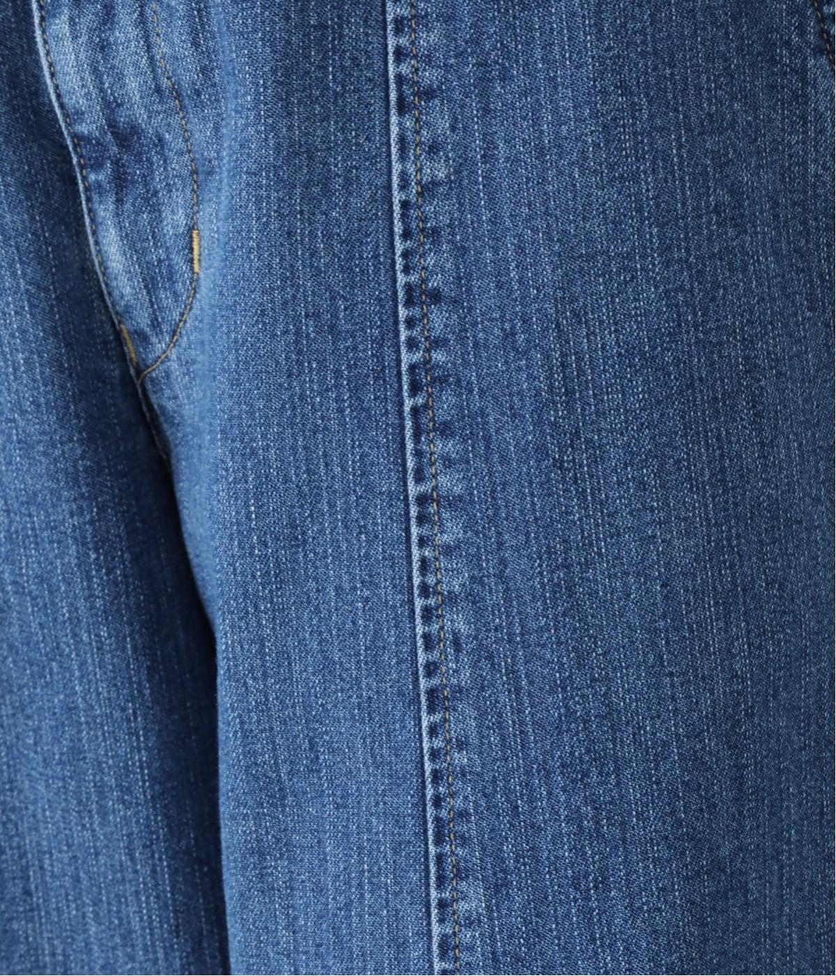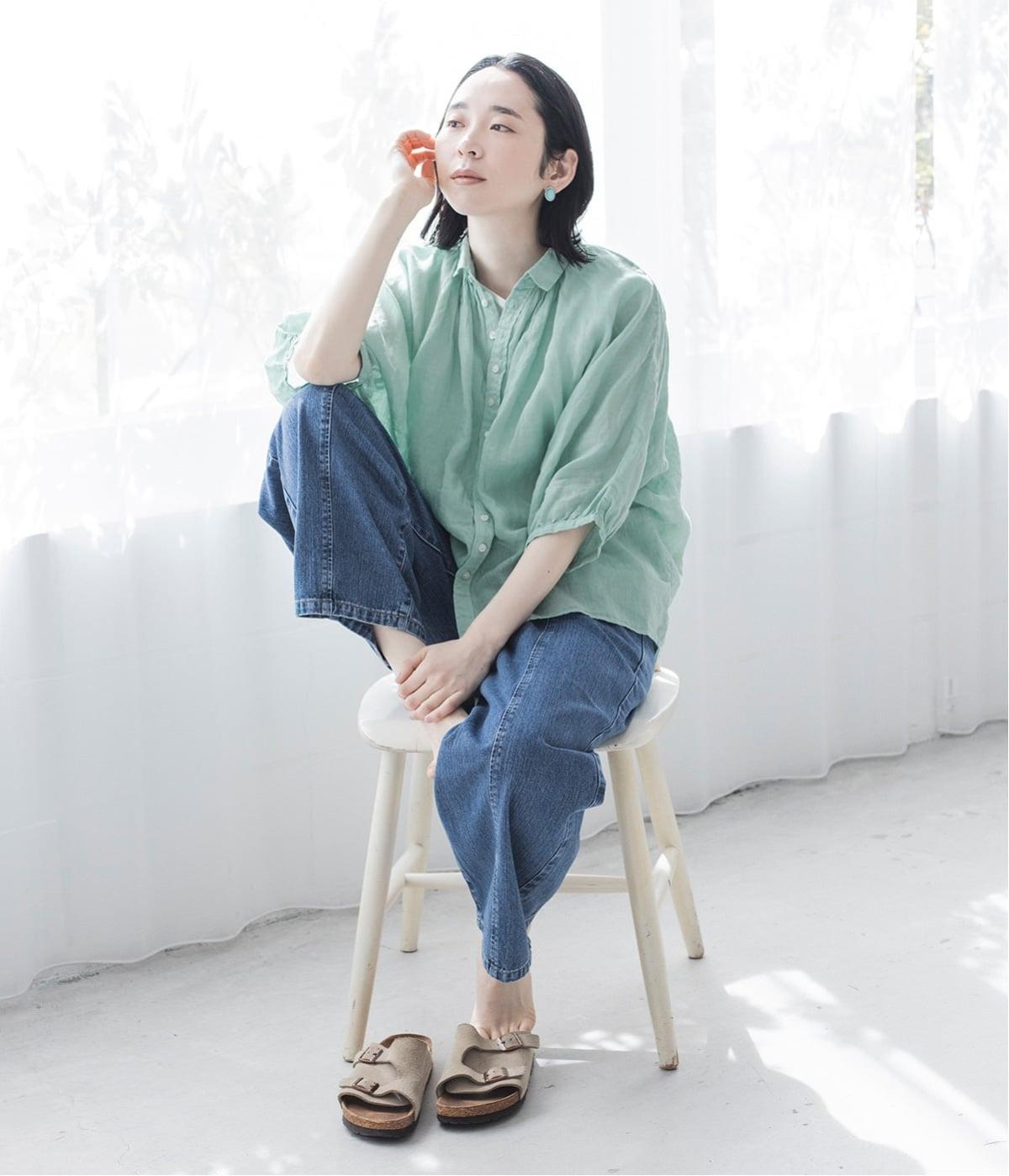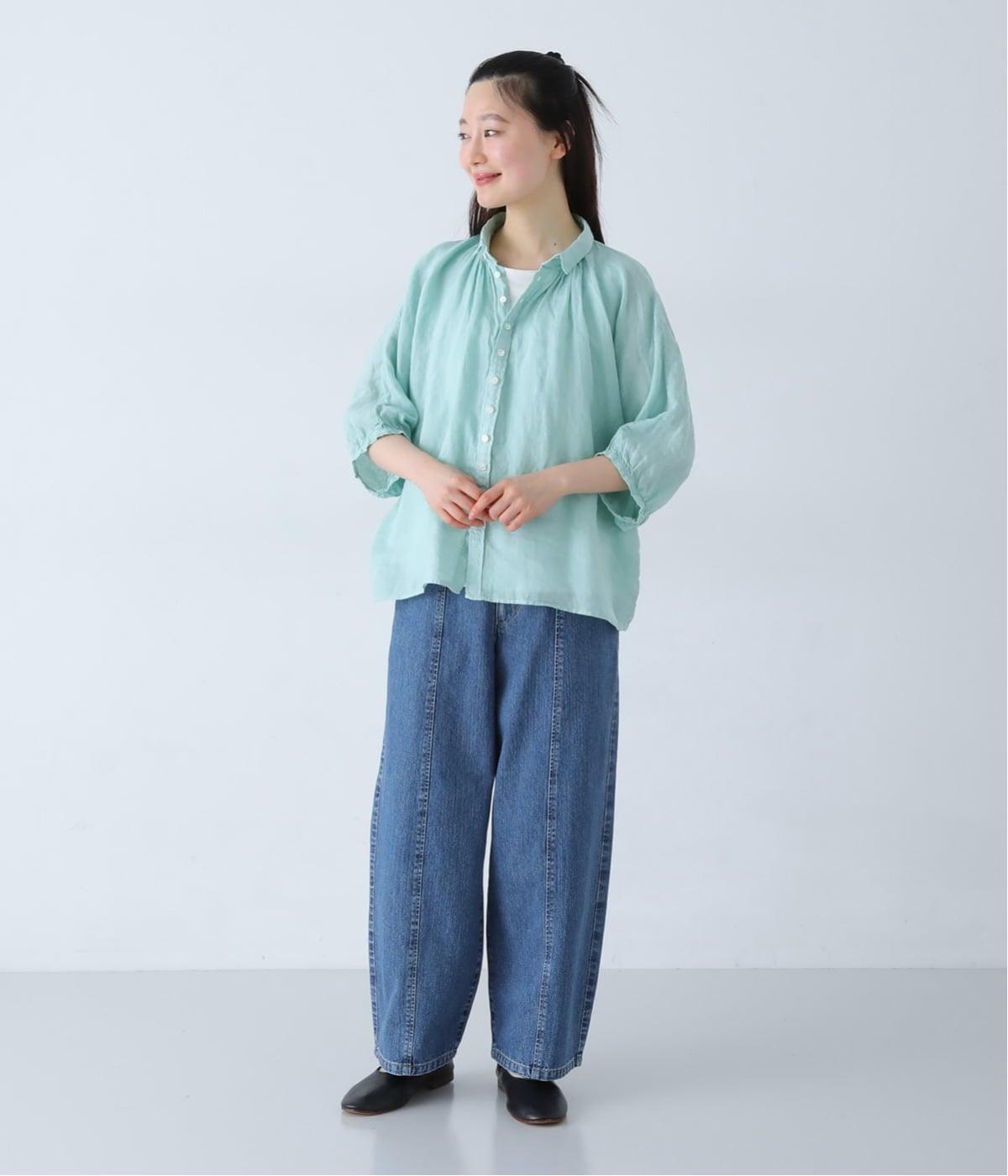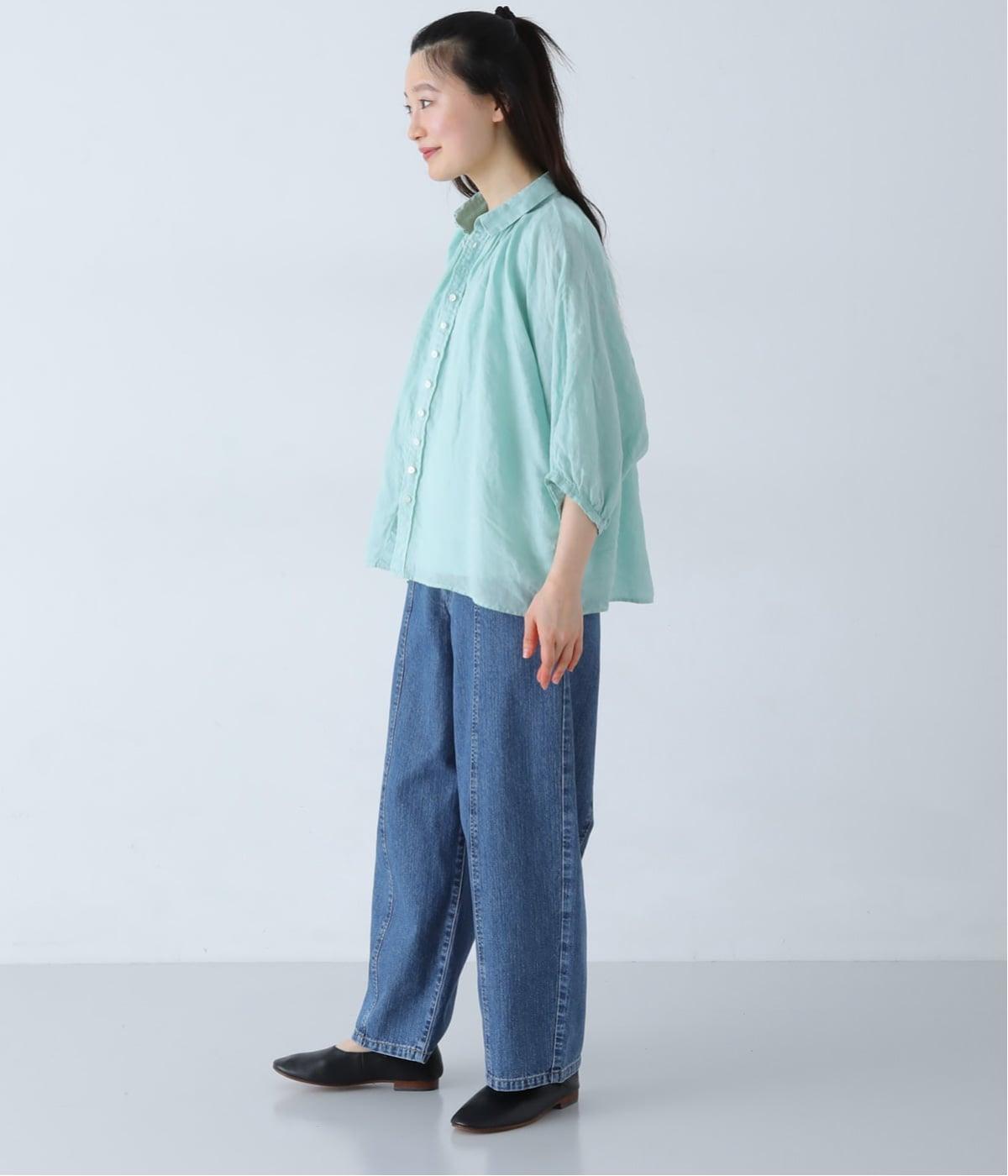 ほどよい厚みが魅力の、10ozデニム生地。ムラ糸ならではのナチュラルな表情が、カジュアルさのなかにも奥行きを演出します。ソフト加工を施すことで、しっかりとしたハリを残しつつも、やわらかな質感に。デイリーに取り入れやすい、軽やかな生地感です。
