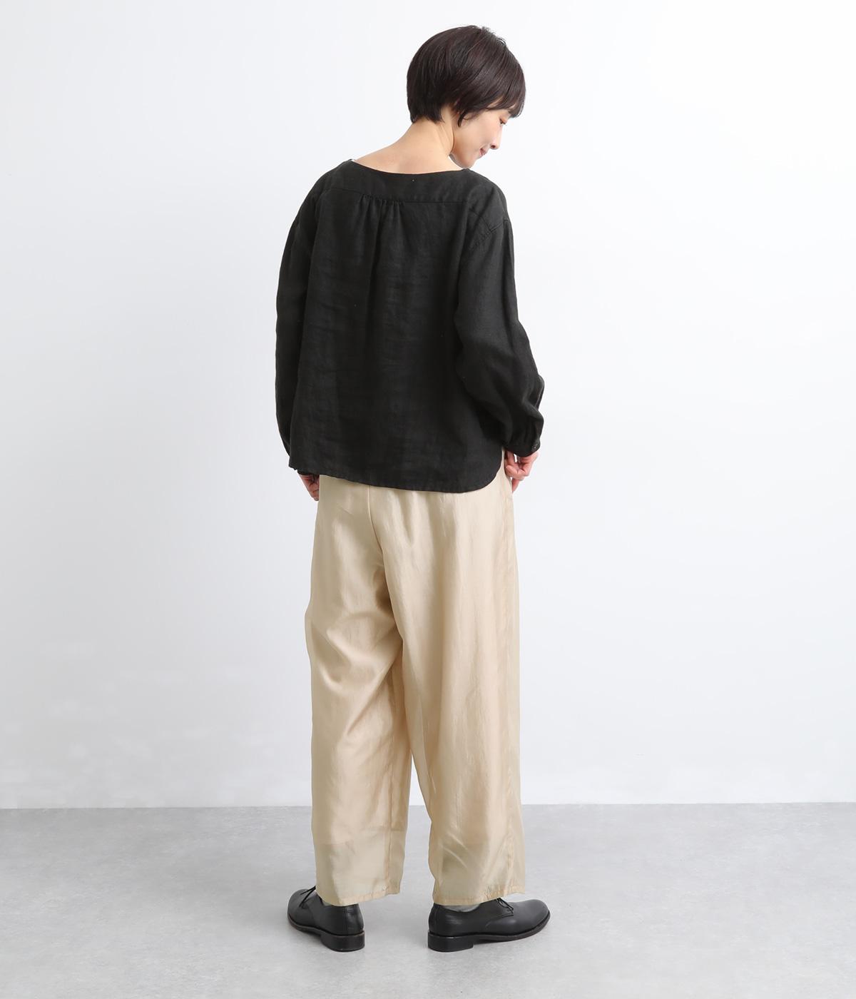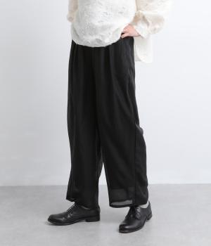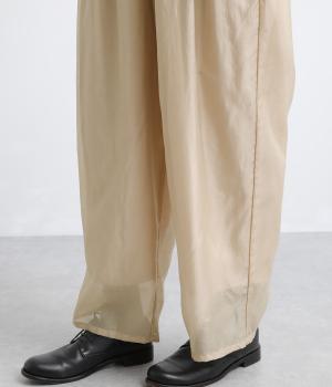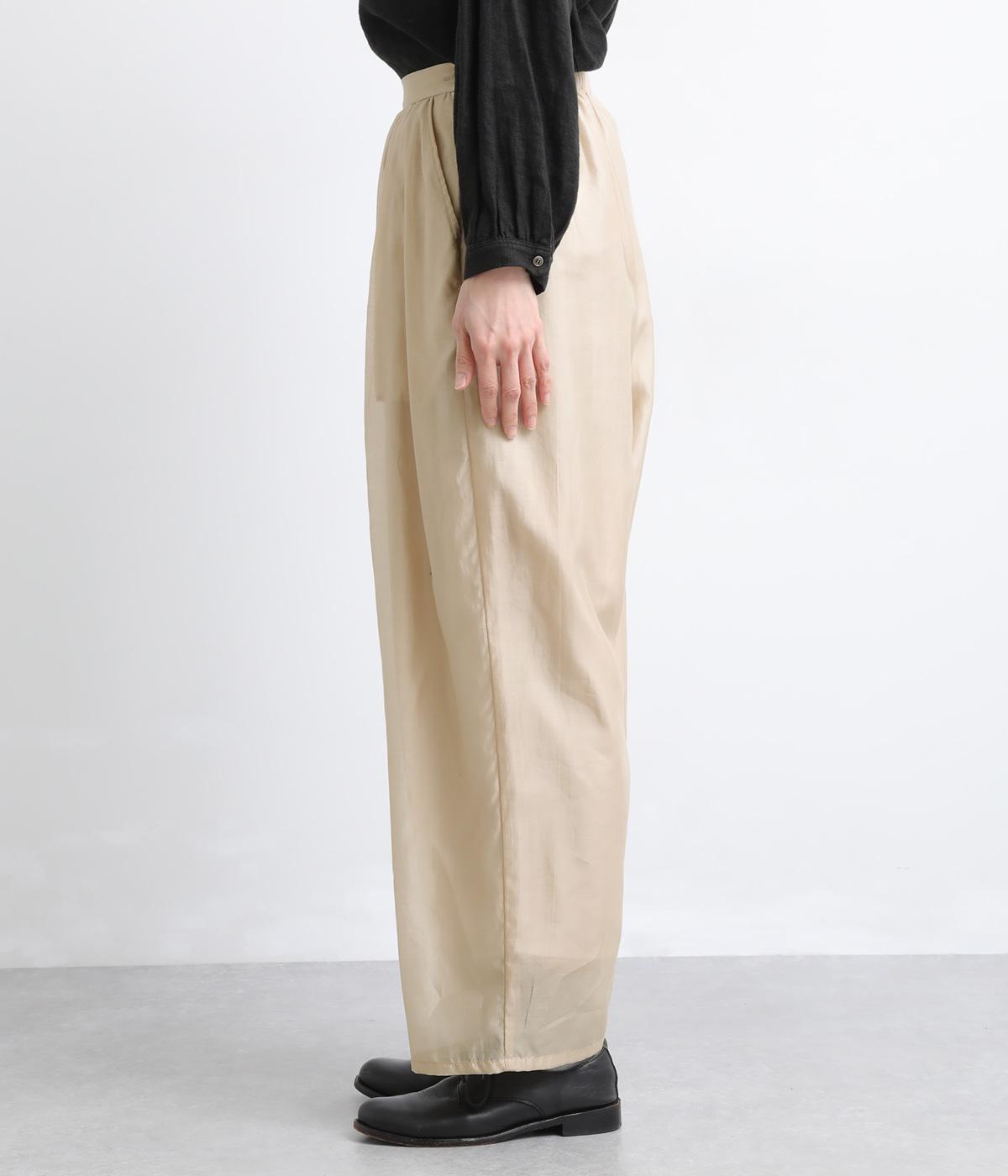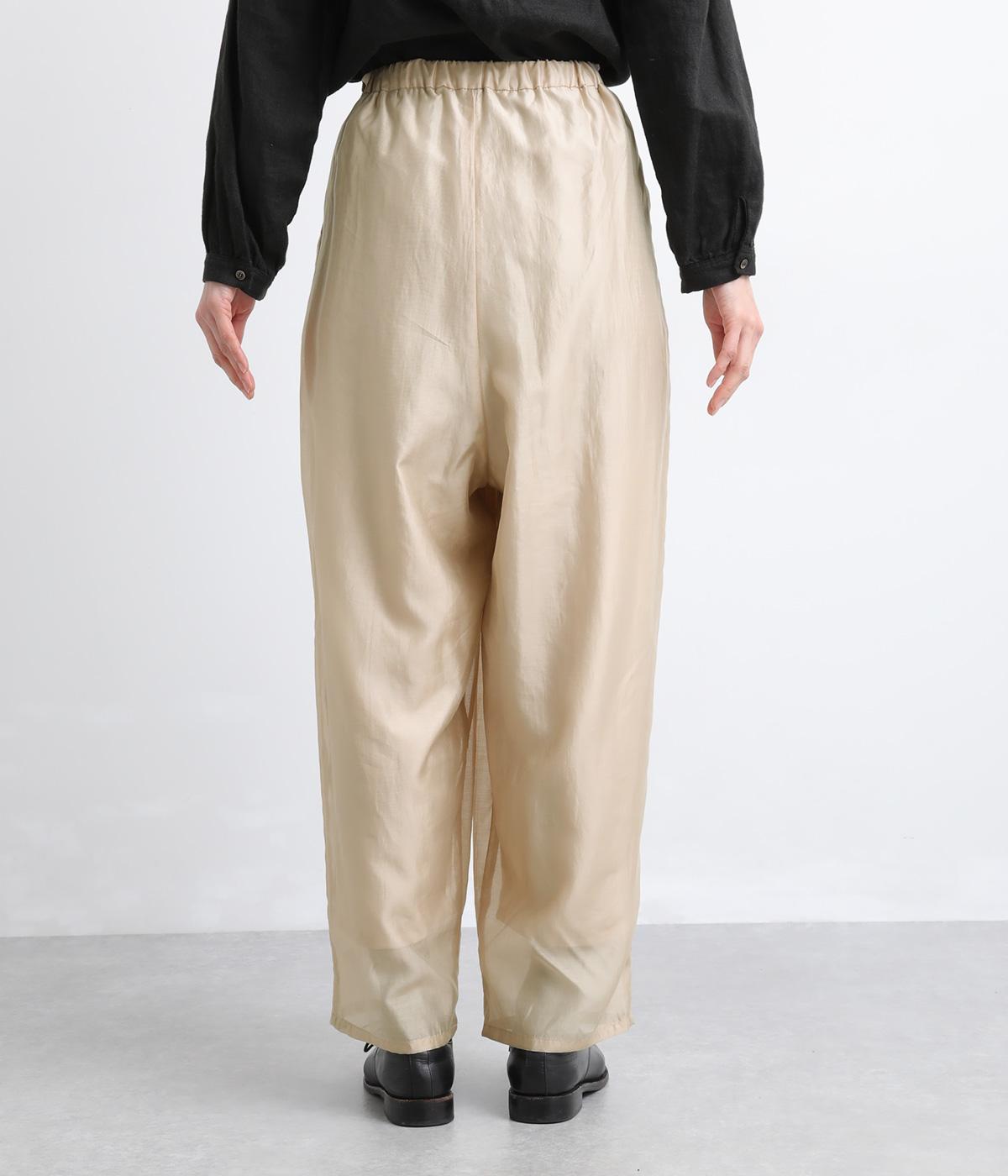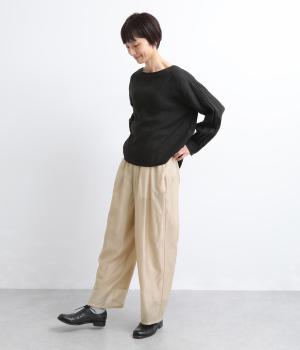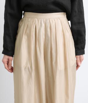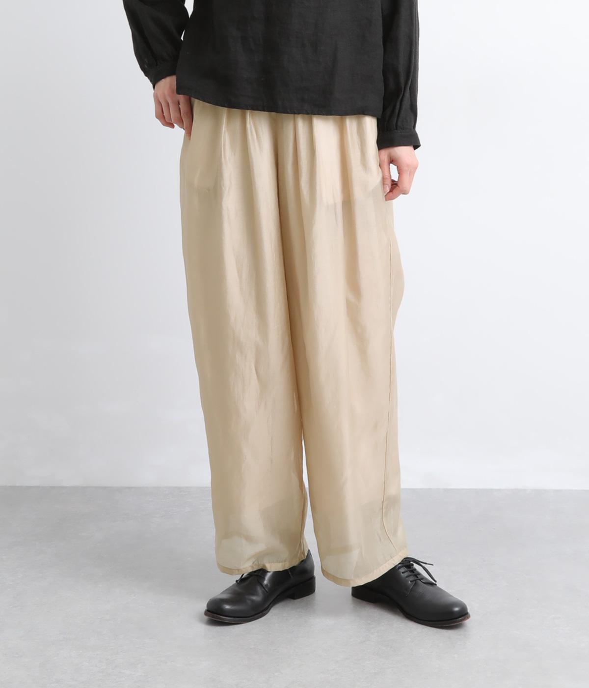 やわらかくしなやかなリヨセル混の生地を使用し、軽やかなはき心地に仕上げました。空気をまとったようなやわらかさと、さらりとした肌ざわりが魅力です。ほんのり透けるシアー感と上品な光沢が、涼やかな印象を添えています。