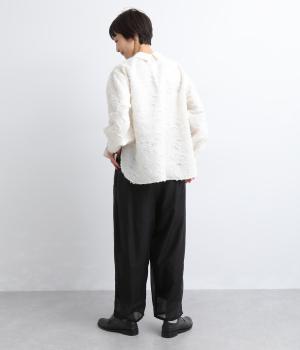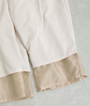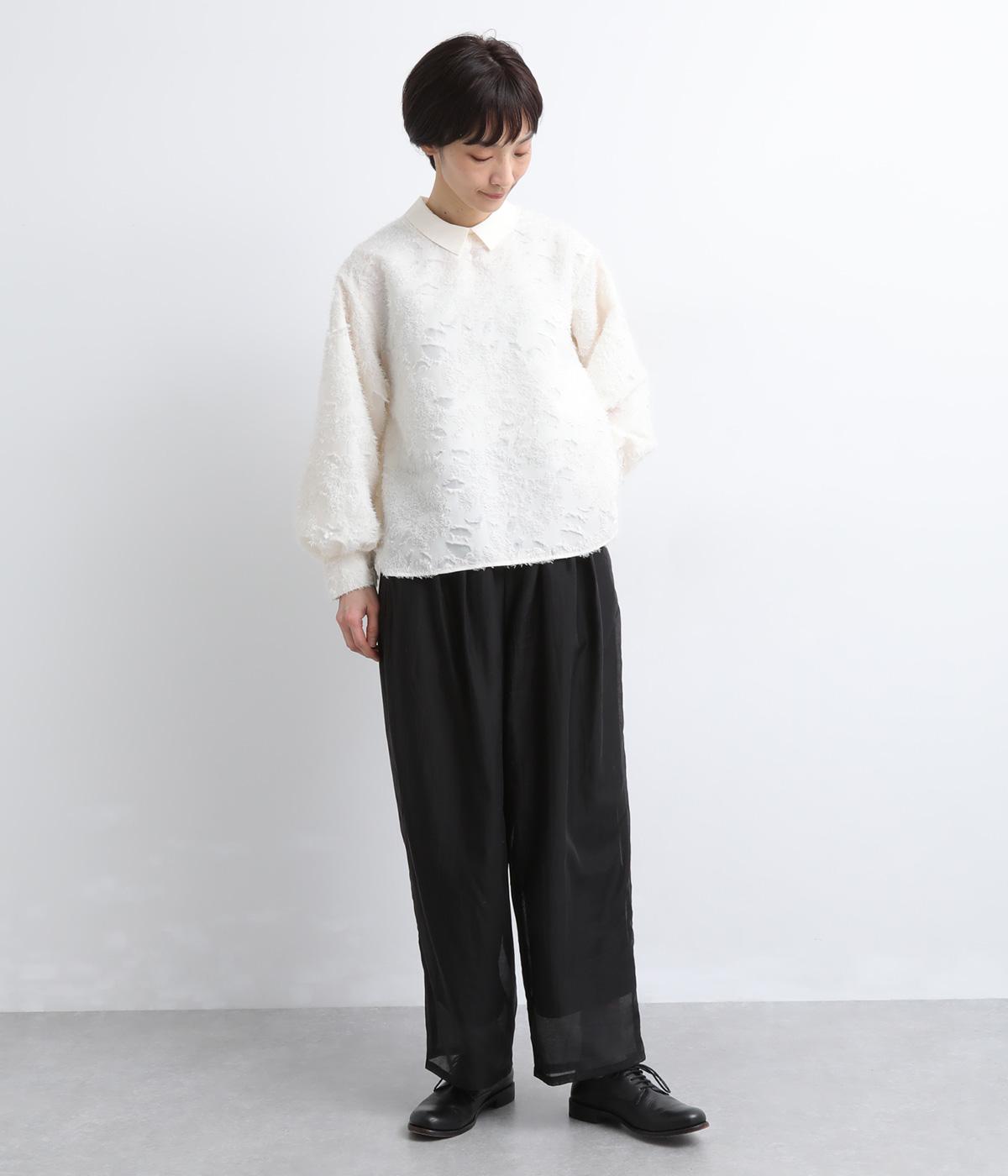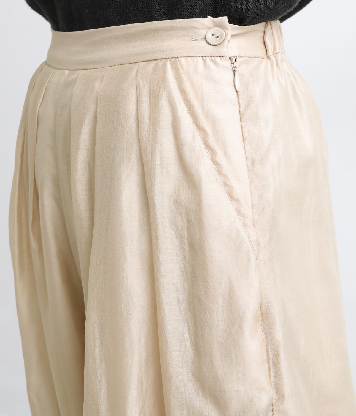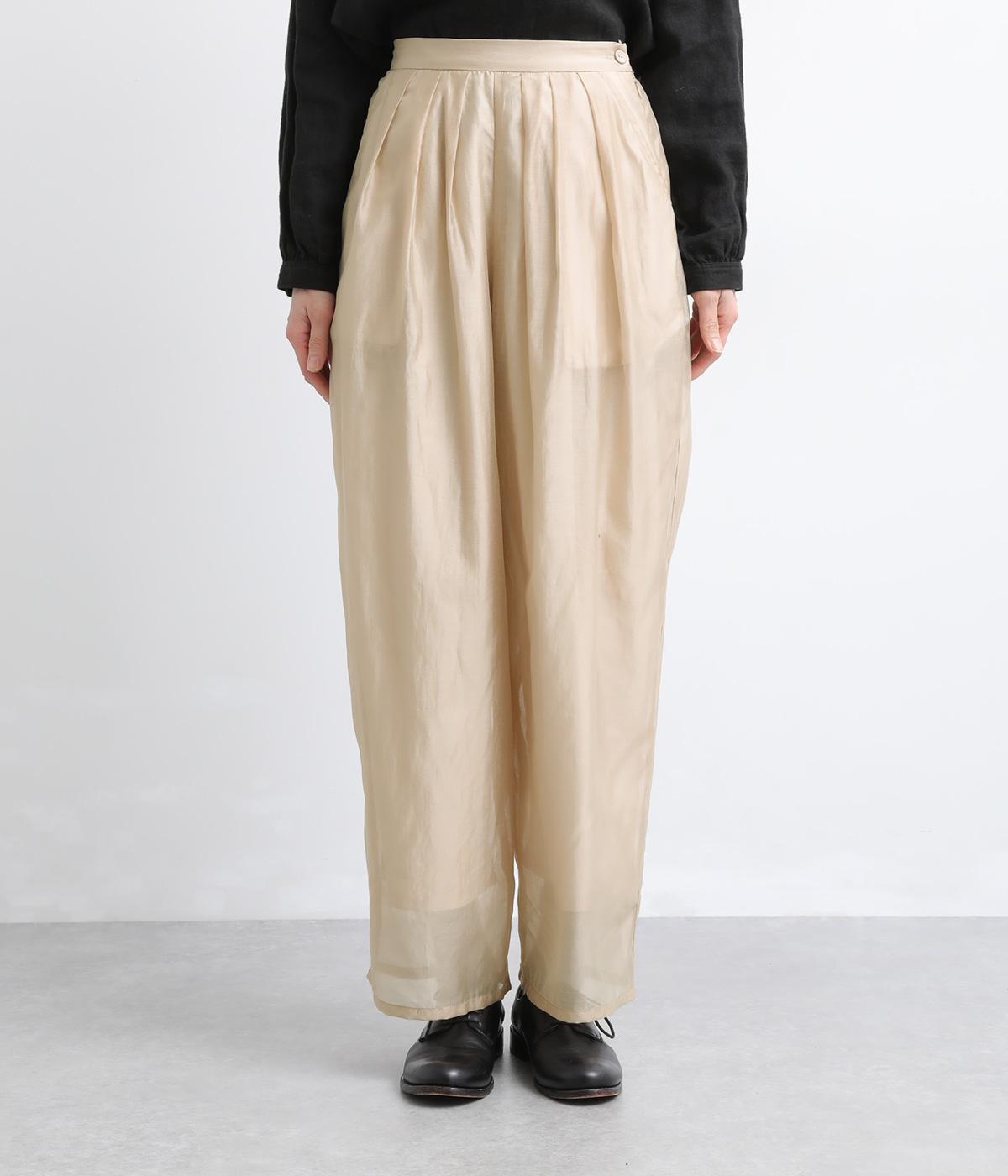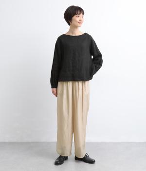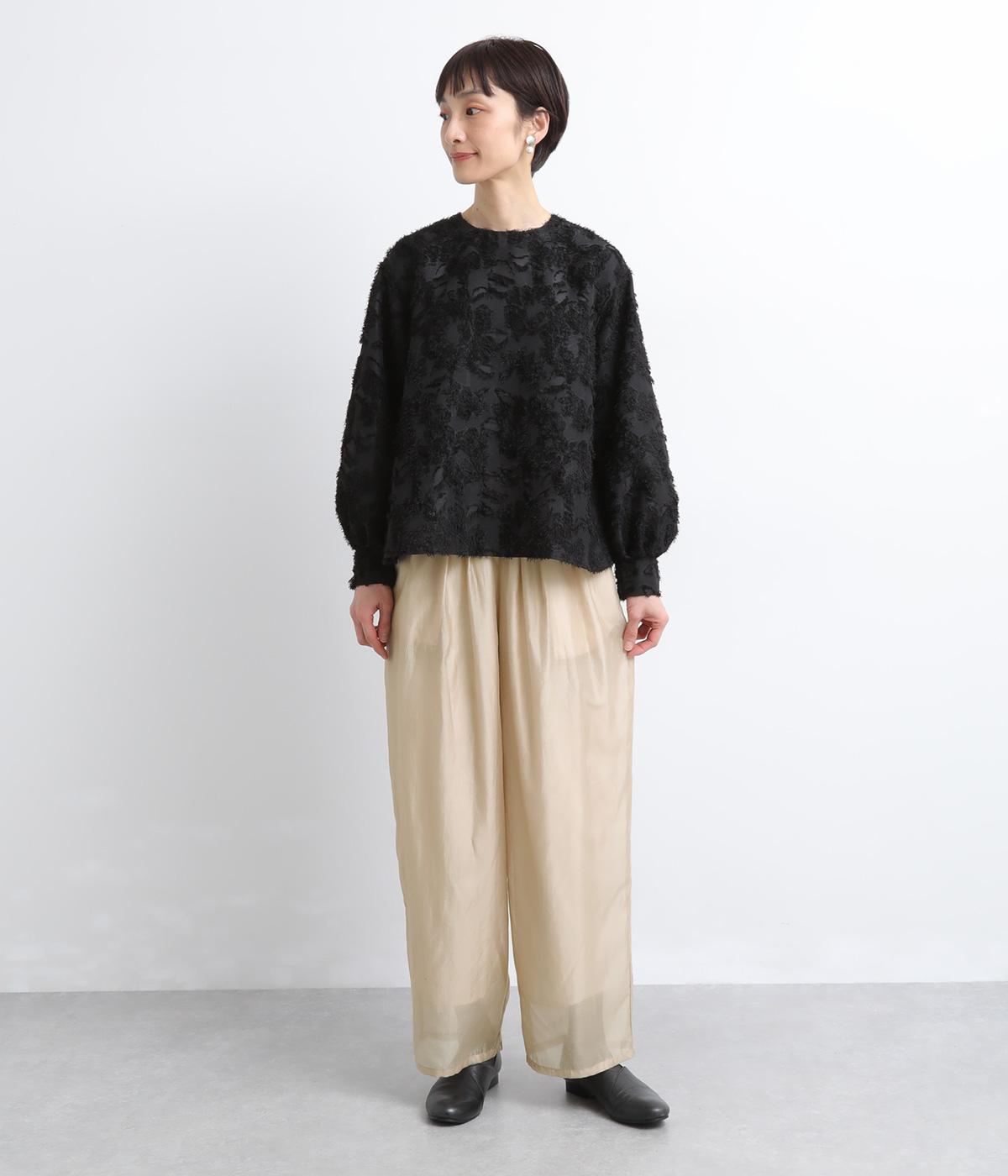 やわらかくしなやかなリヨセル混の生地を使用し、軽やかなはき心地に仕上げました。空気をまとったようなやわらかさと、さらりとした肌ざわりが魅力です。ほんのり透けるシアー感と上品な光沢が、涼やかな印象を添えています。