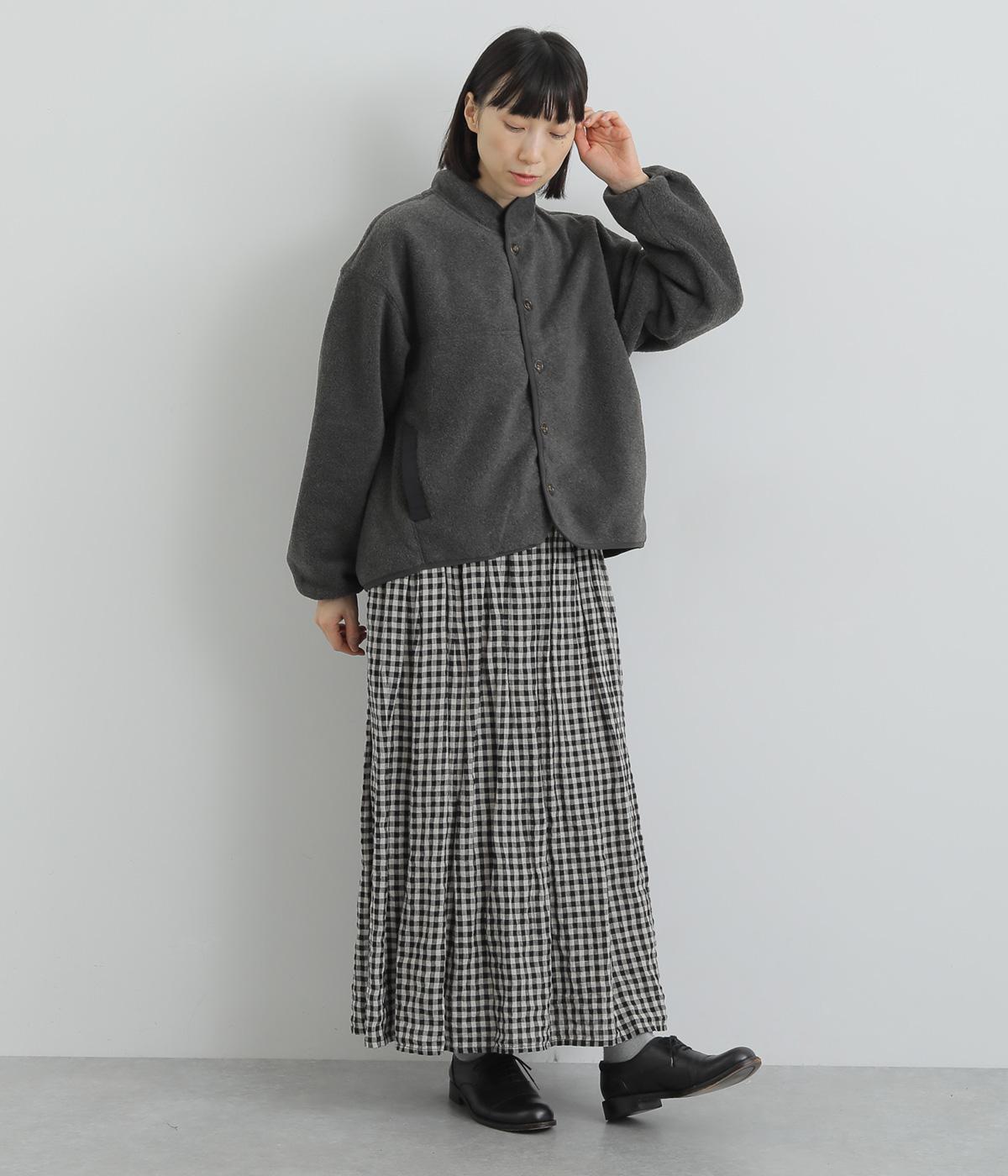 アウトドア感にナチュラルなムードをプラスした、日常に取り入れやすいフリースジャケット。後ろ裾にタックを入れ、丸みのあるコクーンシルエットに仕上げています。前着丈は短めに設定して好バランスに。縁にあしらったパイピングで全体を引き締めました。