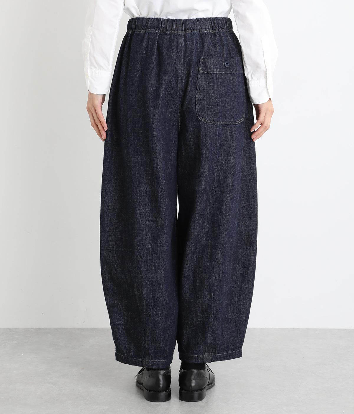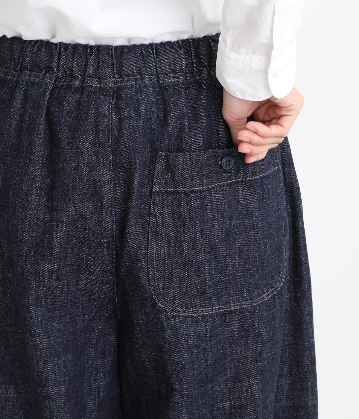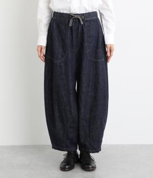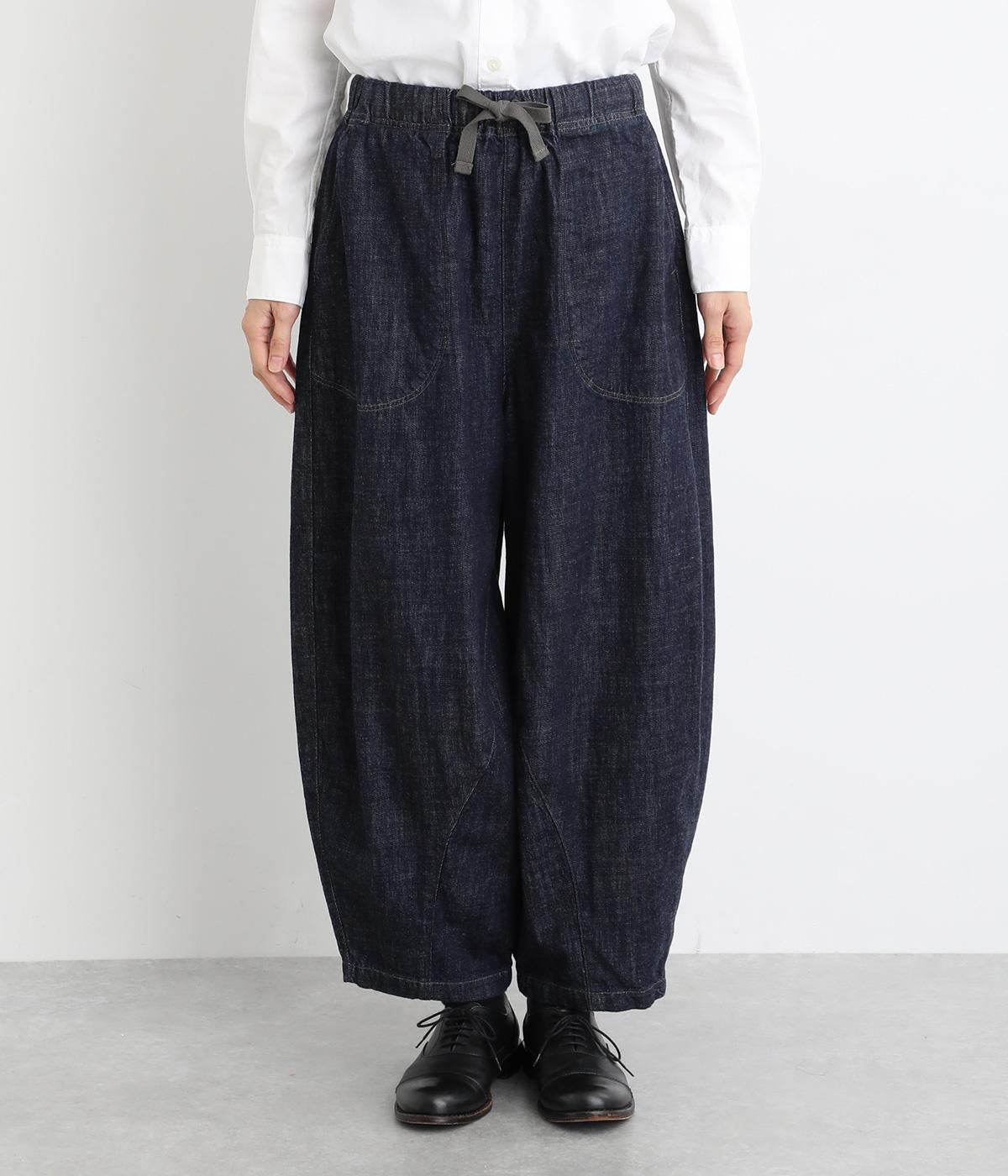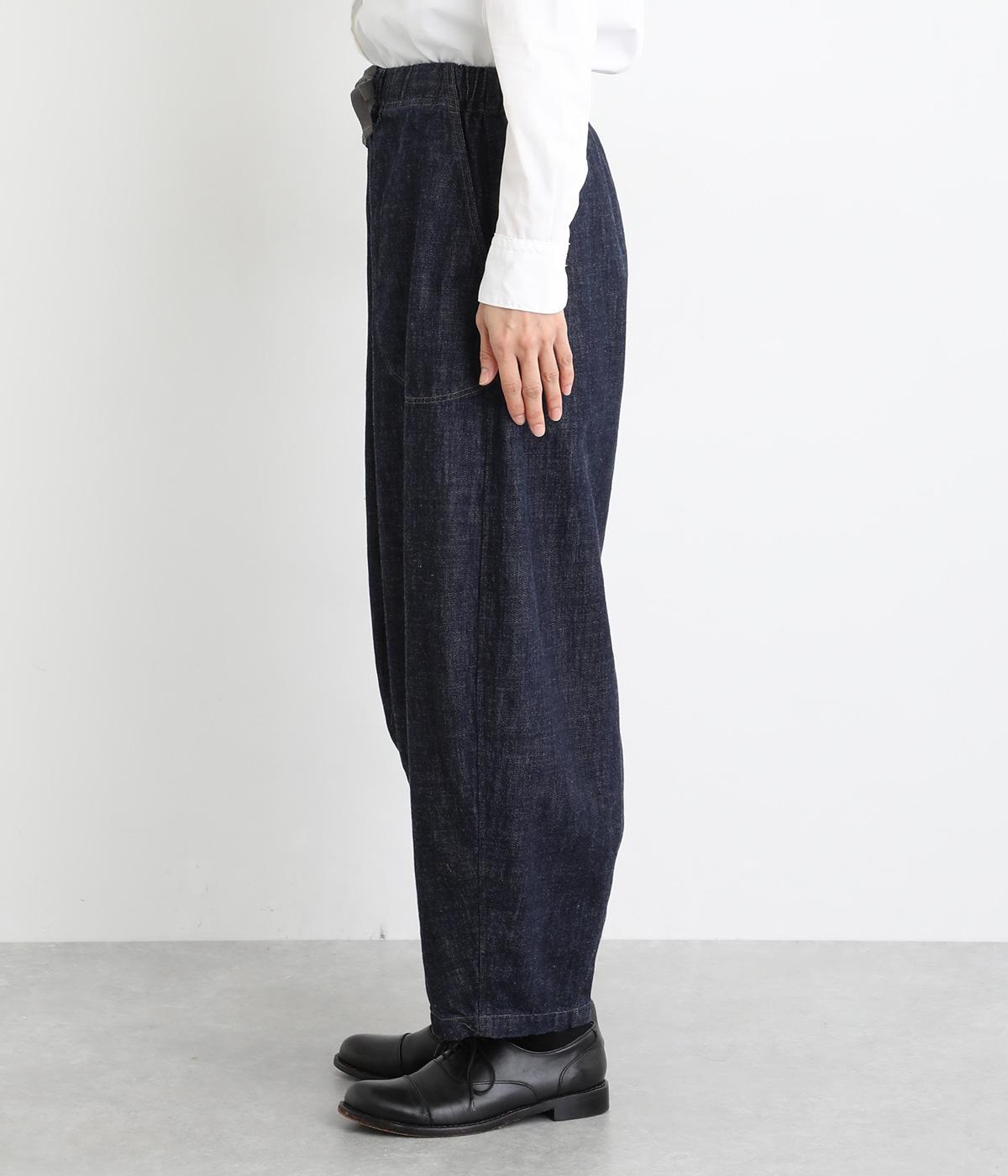 コットンを使用したインディゴ染めのパンツ。自然な風合いが特徴で、洗濯するごとに独特の色落ちの変化を楽しむことができます。ポケット部分のステッチも生地のアクセントになっていて高ポイント。