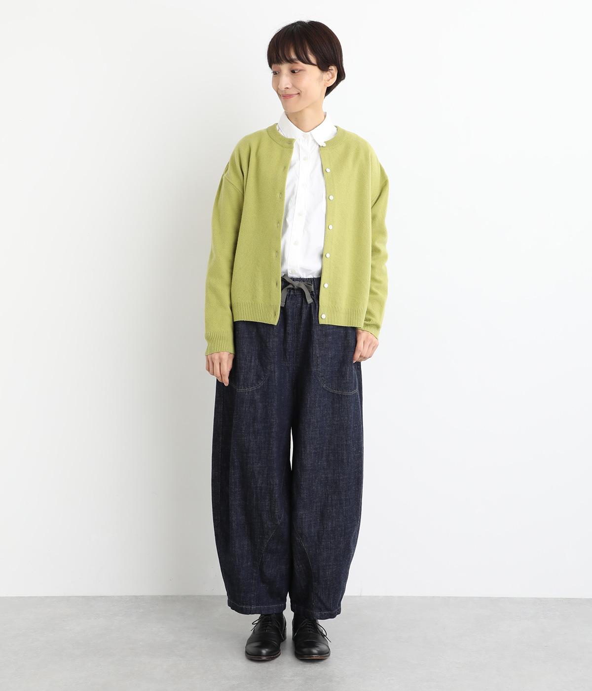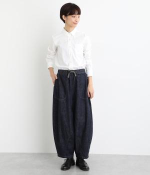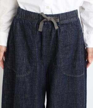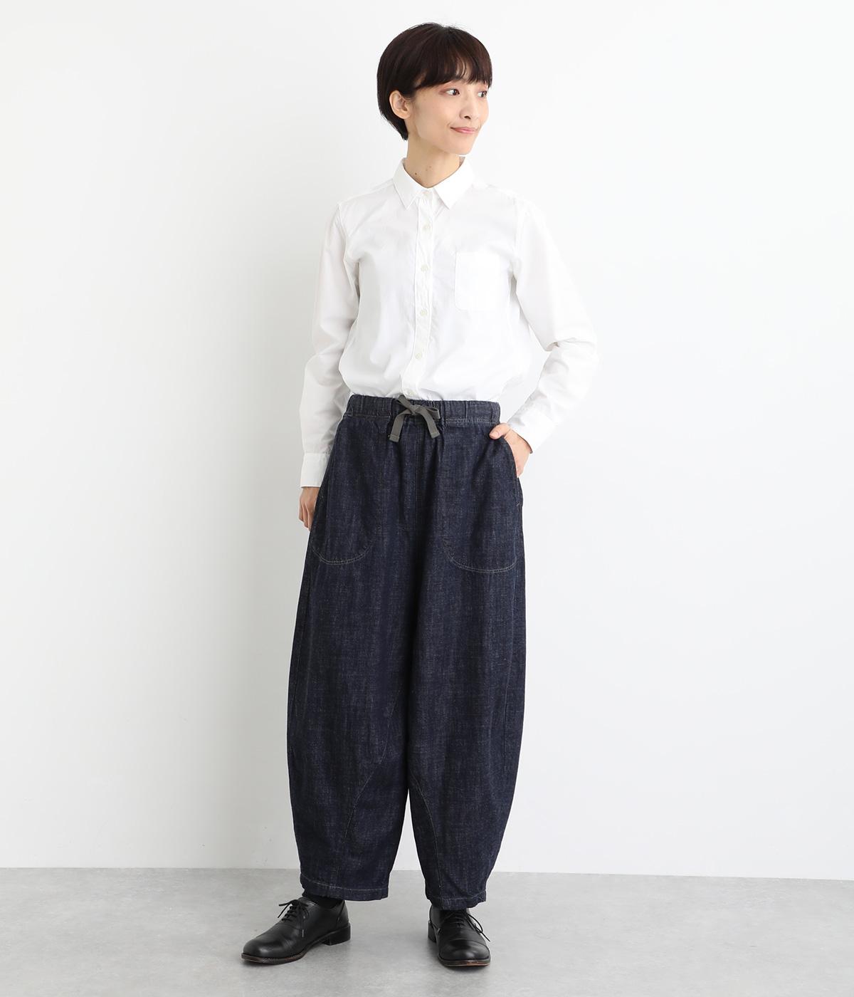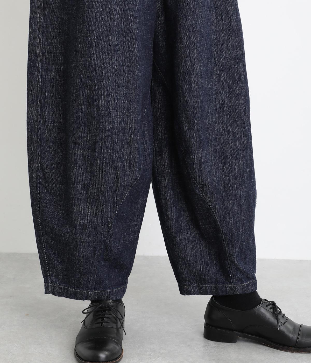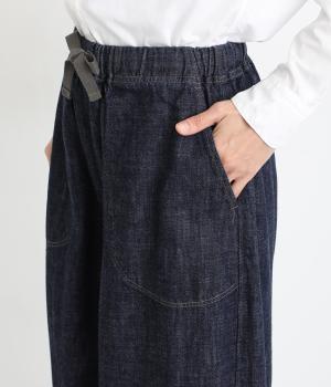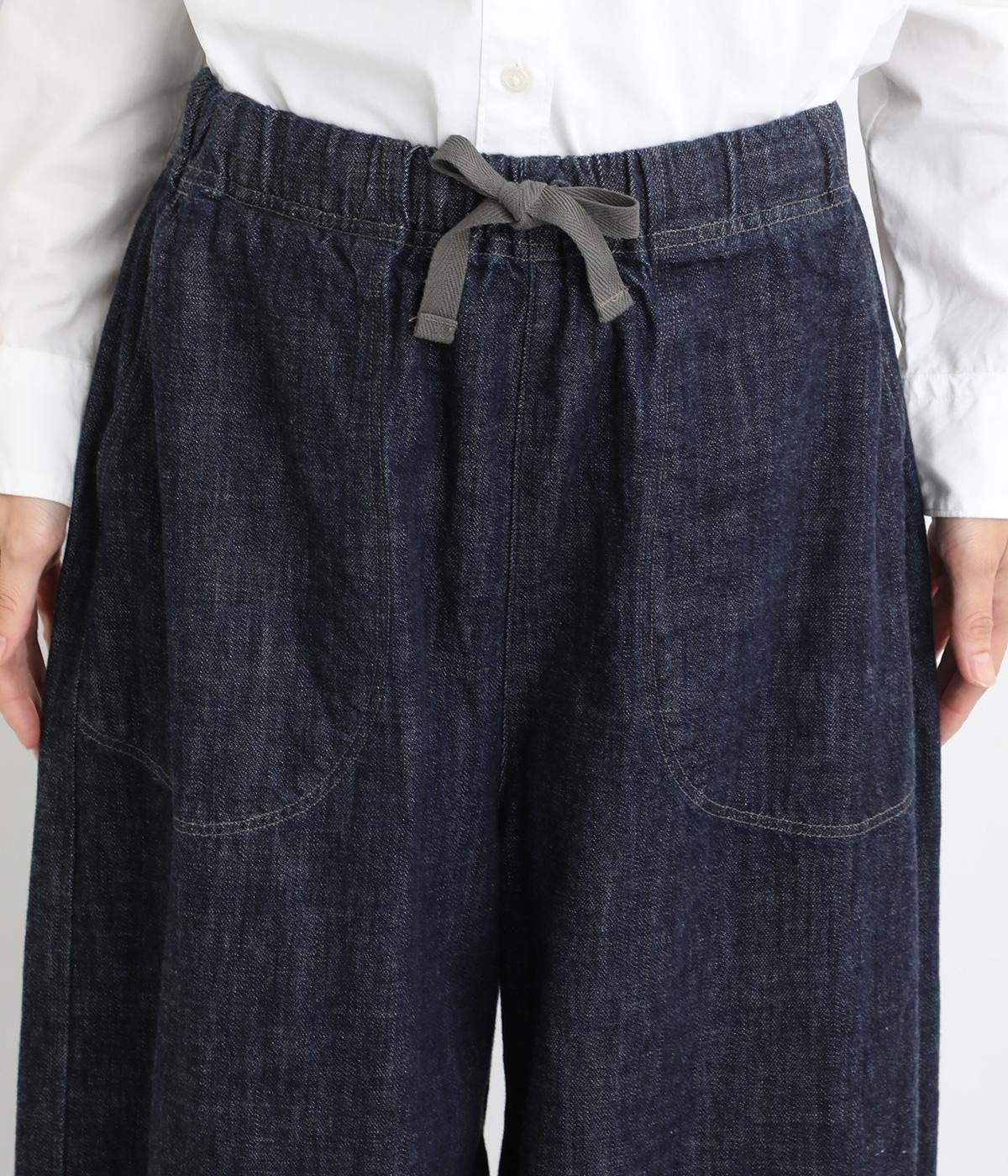コットンを使用したインディゴ染めのパンツ。自然な風合いが特徴で、洗濯するごとに独特の色落ちの変化を楽しむことができます。ポケット部分のステッチも生地のアクセントになっていて高ポイント。