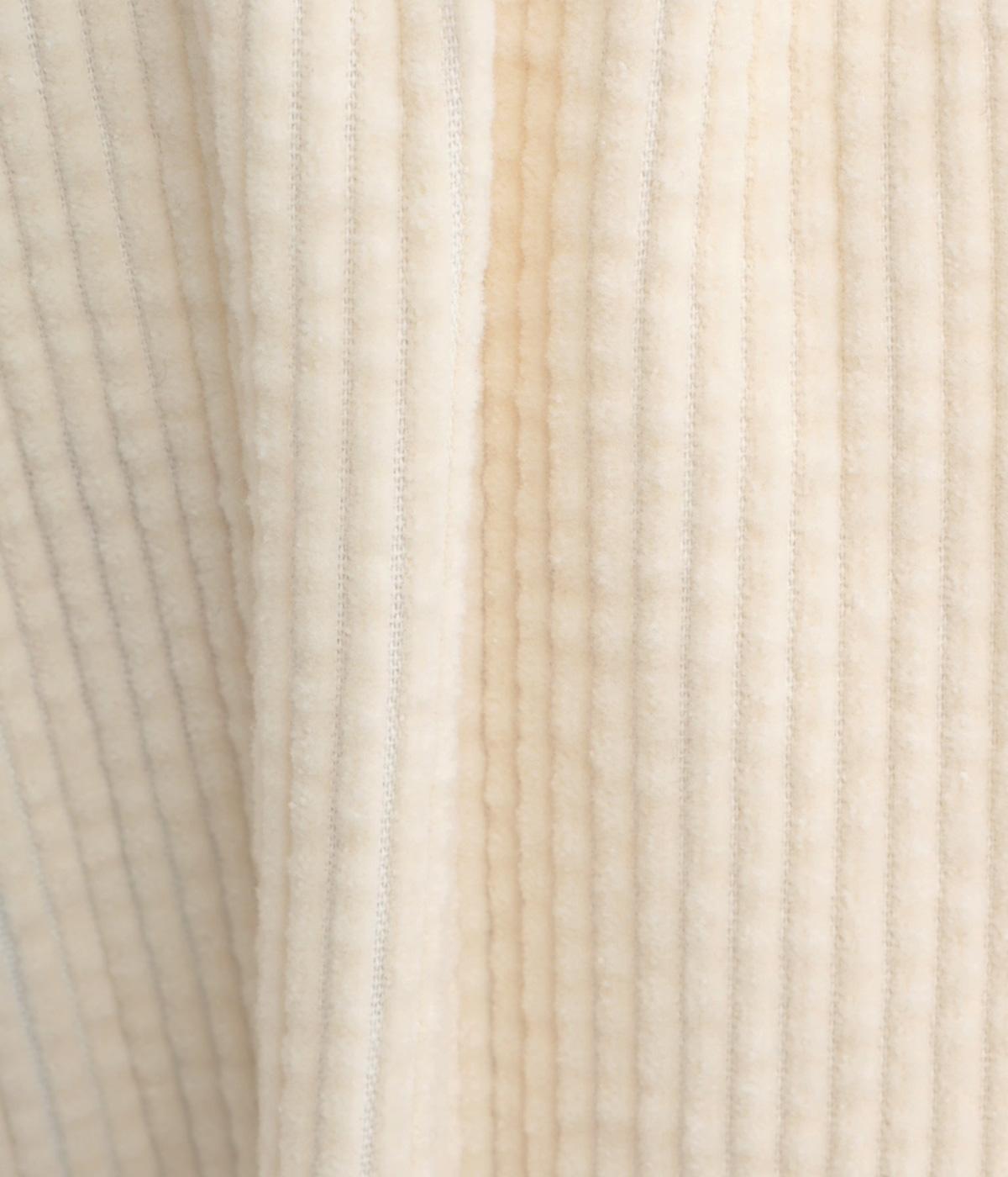 ぽこぽことした太畝のコットンサッカーのコーデュロイ生地で仕立てました。わずかに光沢のある表面感と凹凸が特徴的で、季節感を高める素材です。