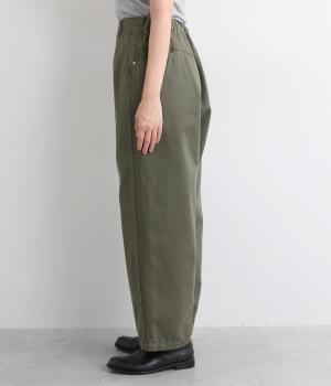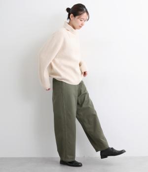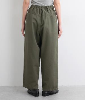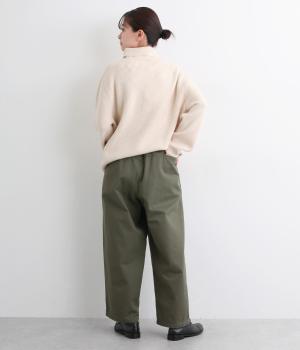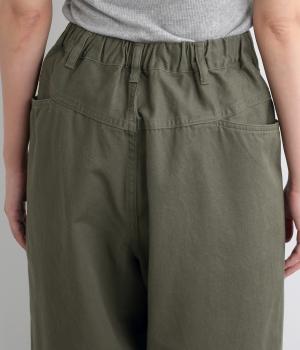 ボリューミーながらすっきりとはける、計算されたシルエットのイージーパンツ。両サイドやヒップにポケットつきで機能性も◎。ウエストは後ろのみゴムで、前ファスナー仕様なので着脱しやすくすっきりとしたデザインになっています。