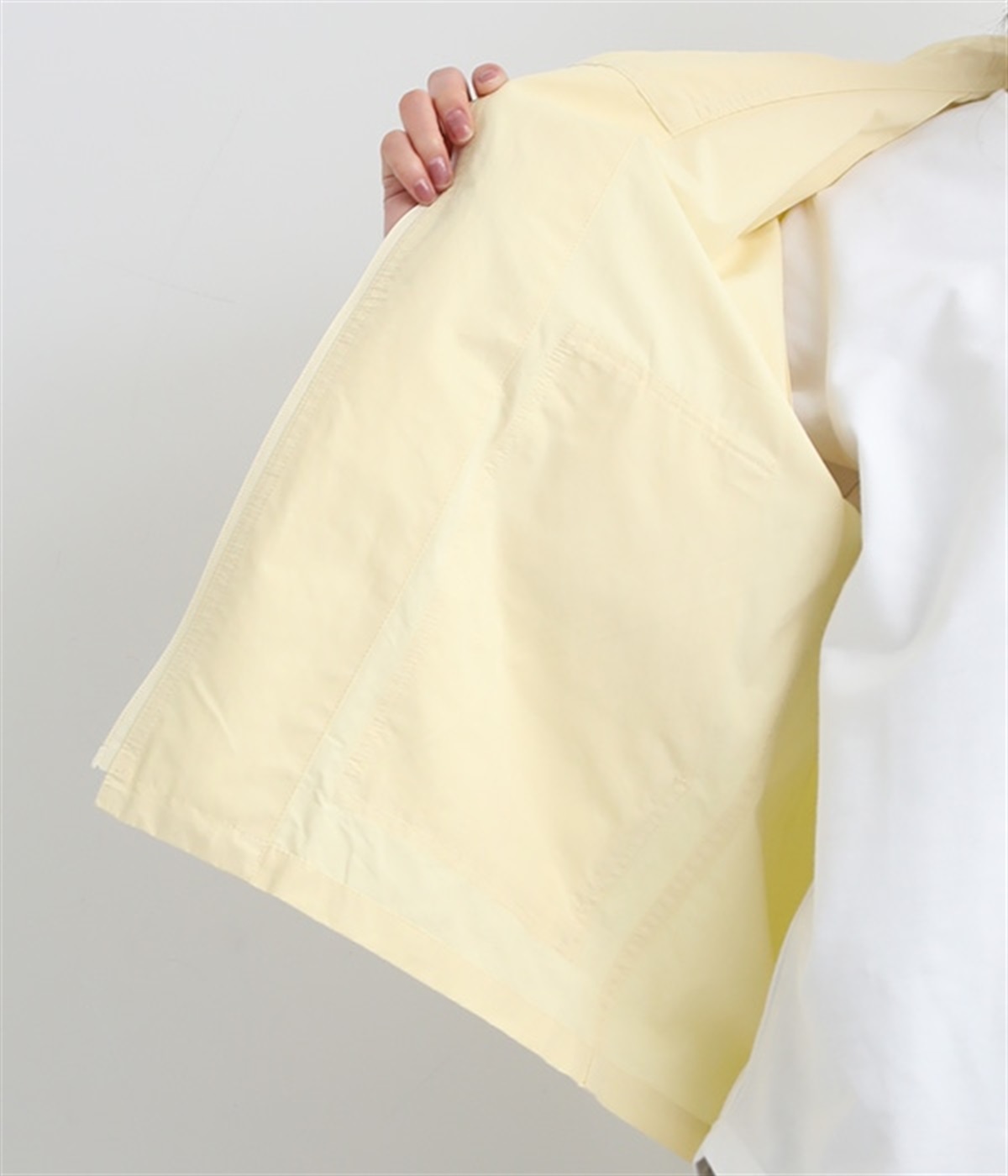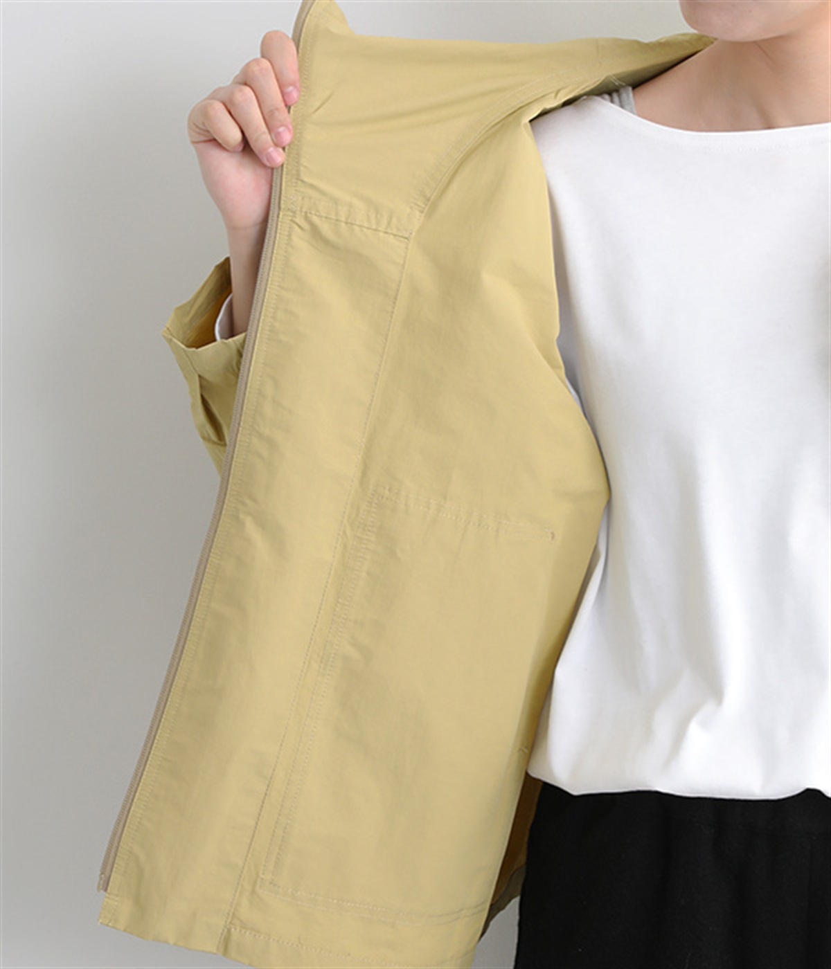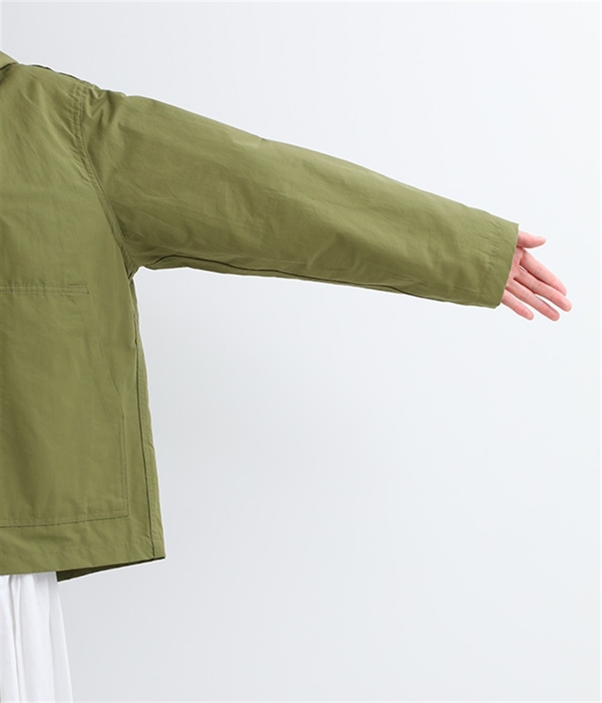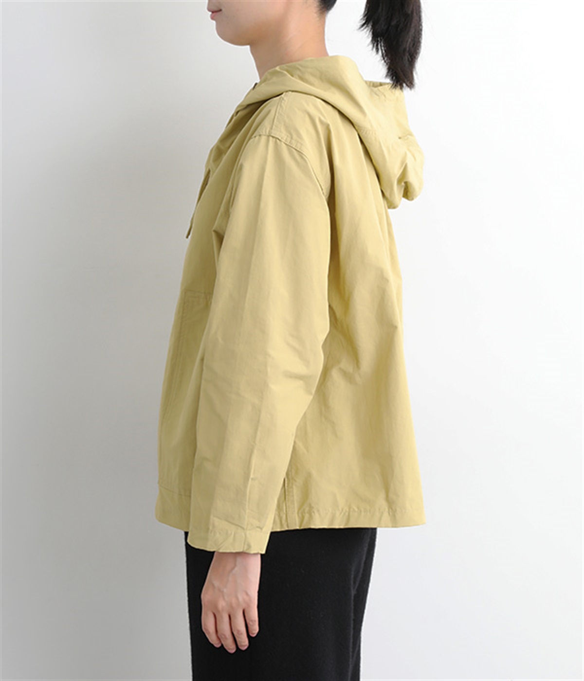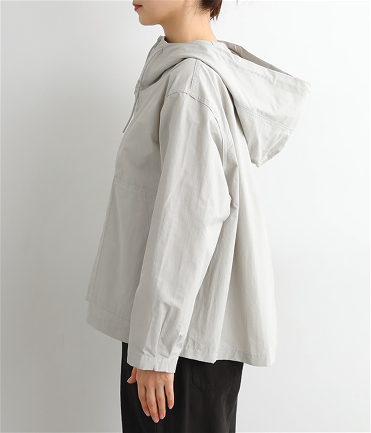 シャカシャカとした生地感が特徴的なコットンとナイロンの混紡生地をセレクト。薄手ながらもしっかりと丈夫で、軽量なのでアウトドアシーンでも活躍します。