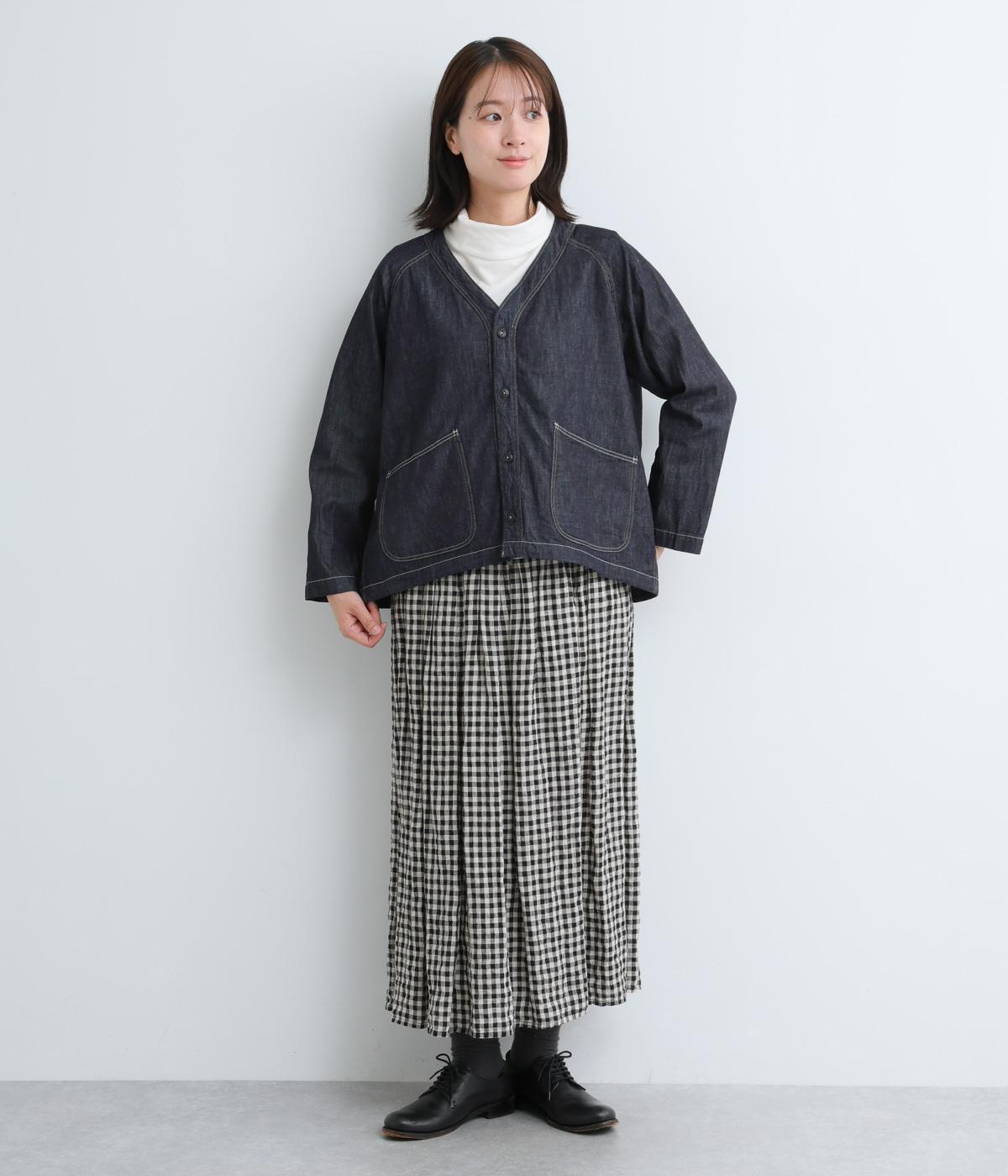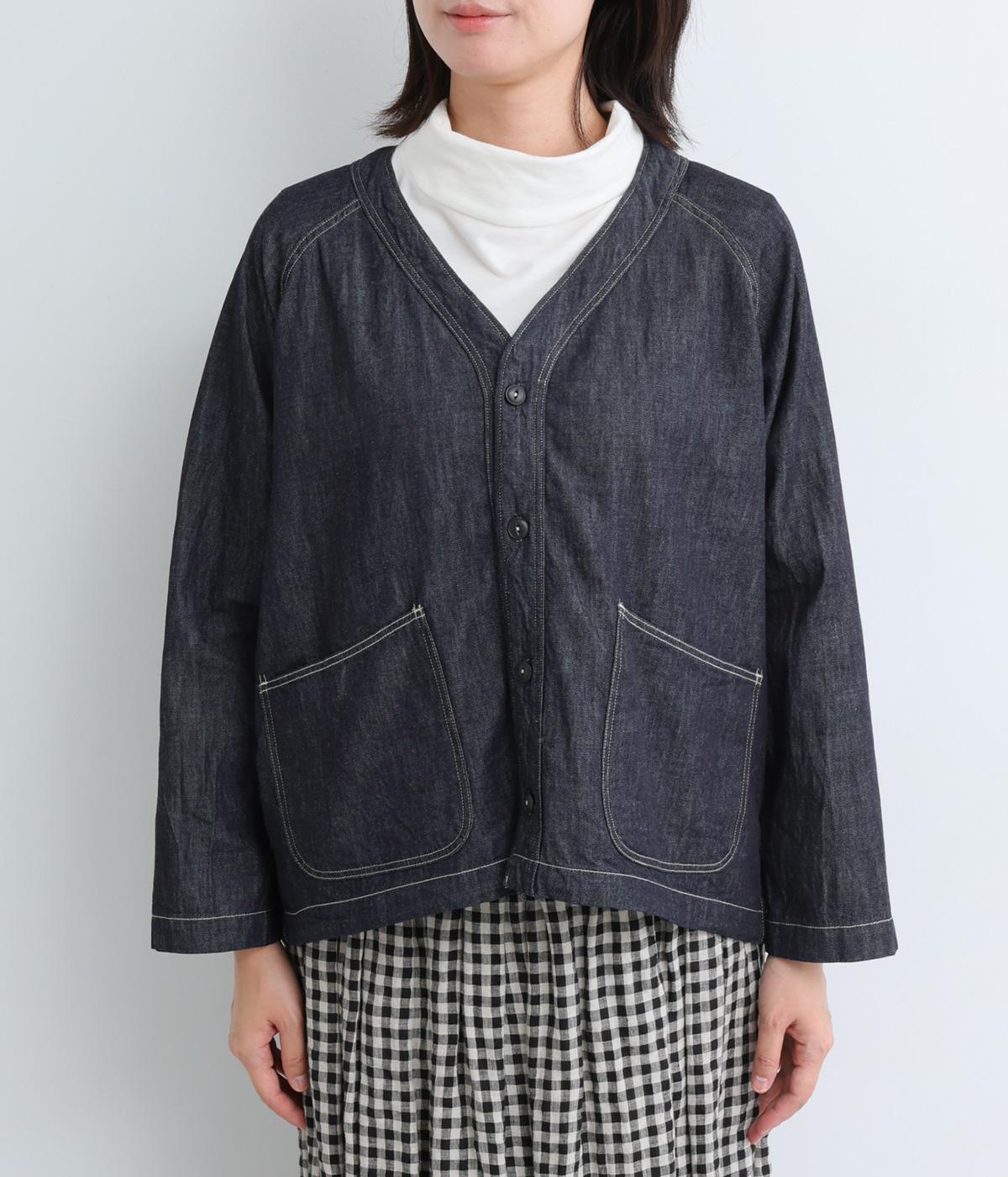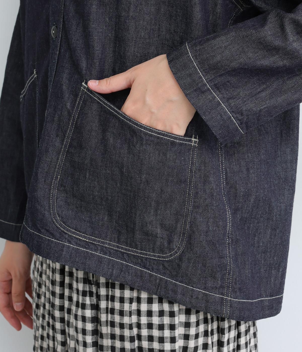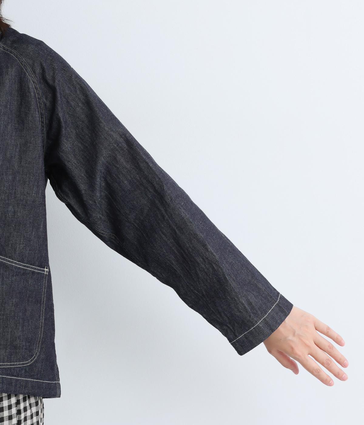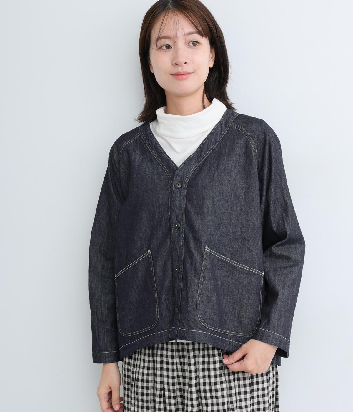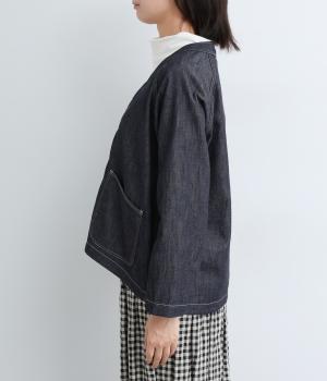 ソフトで羽織りやすい、ライトオンスのコットンデニムを使用しています。着るほどになじんでいく、インディゴ染めの経年変化も魅力のひとつ。