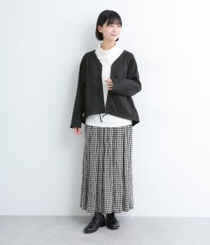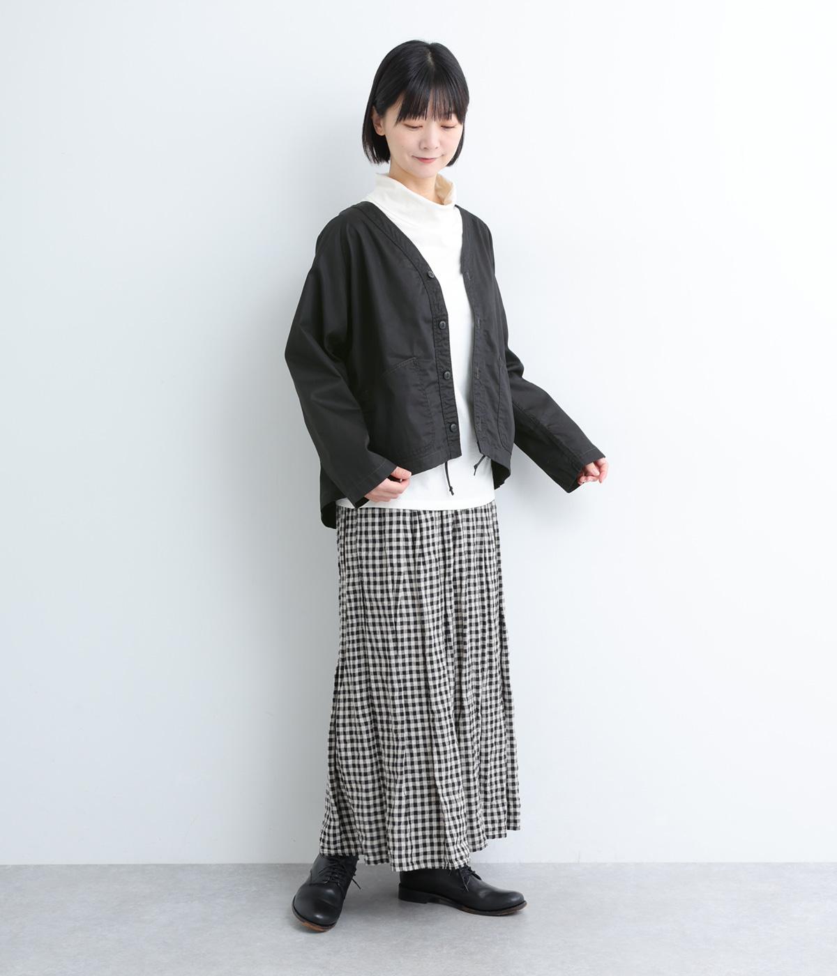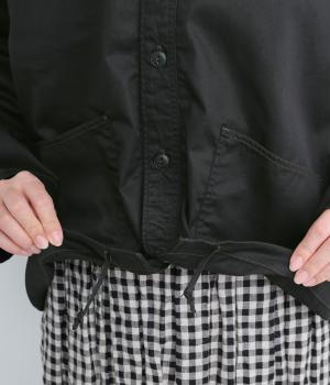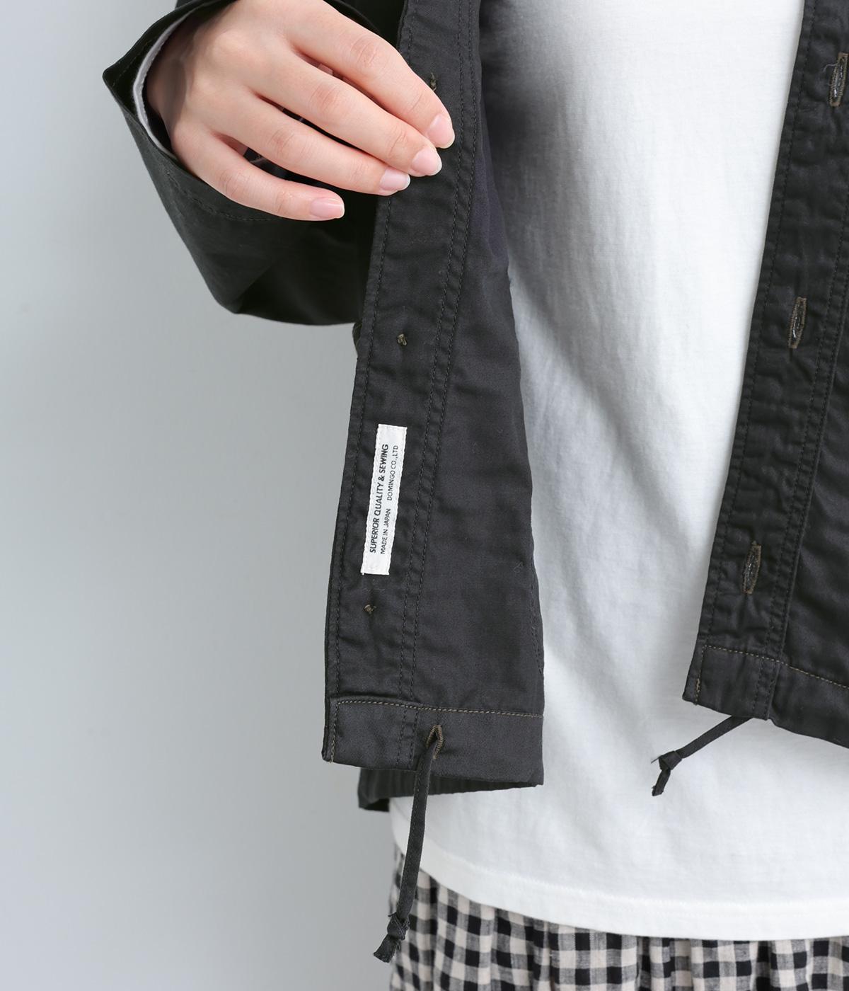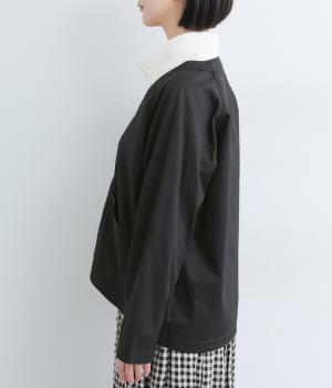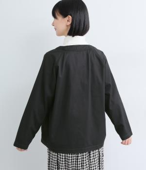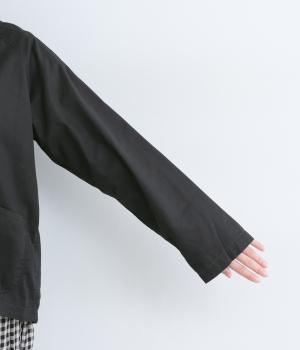 天然繊維ならではの上品な微光沢加工に麻のようなシャリ感を出した、軽めのコットンツイルを使用。薄めの中厚手生地でロングシーズン着まわせます。