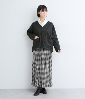 全体的にゆとりを持たせたラグランスリーブタイプのカーディガン。裾には共地のドローコードを入れてシルエットをアレンジできるデザインに。裾は前後差をつけて着こなしになじむように仕立てました。Vネックの適度な抜け感が◎。