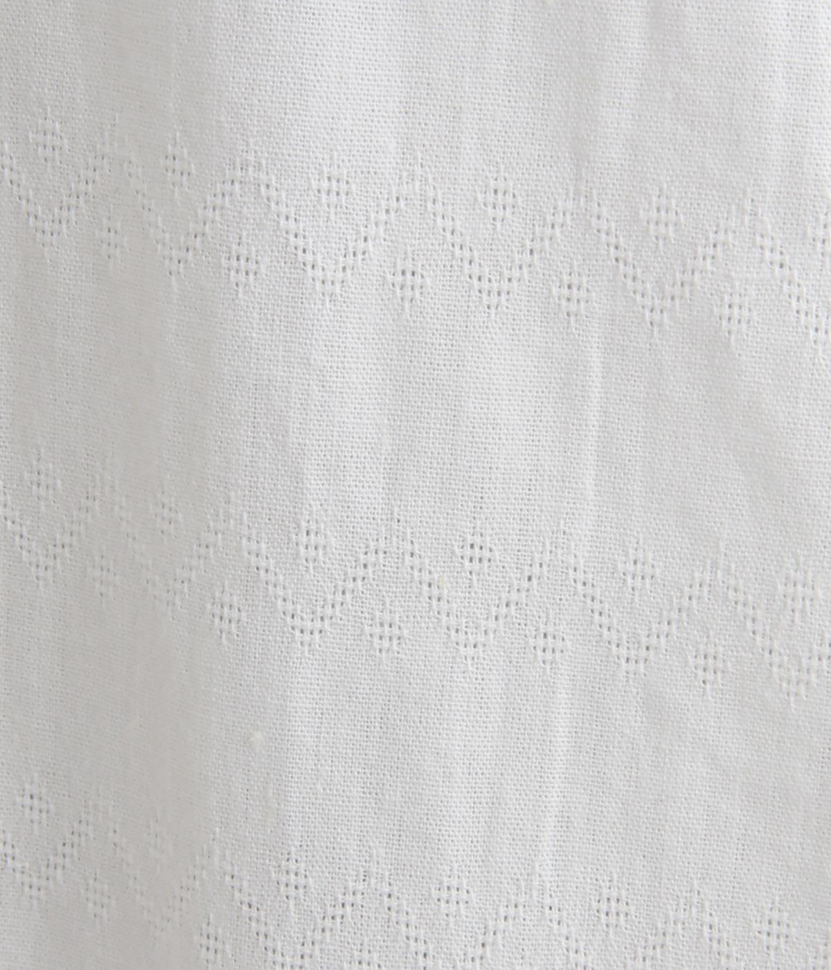 しなやかな肌ざわりを持つ、軽やかな薄手のコットン素材です。生地はジャカード織りでボーダー状に柄を表現しているのが特徴に。