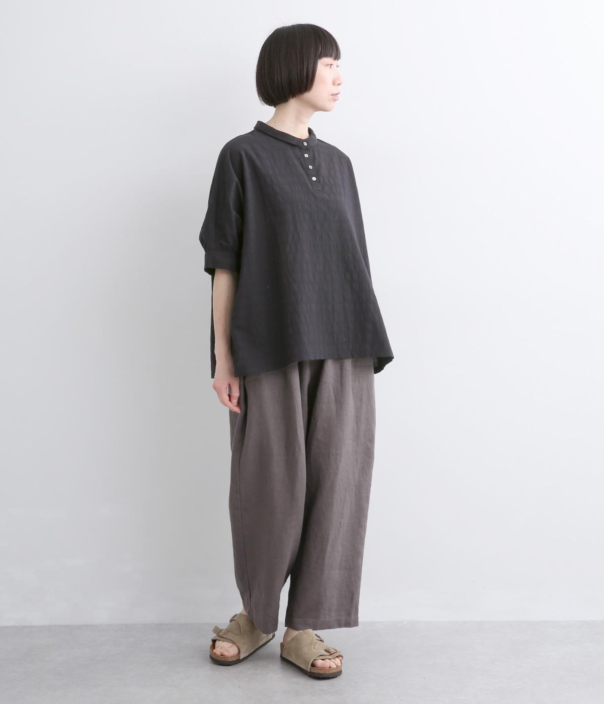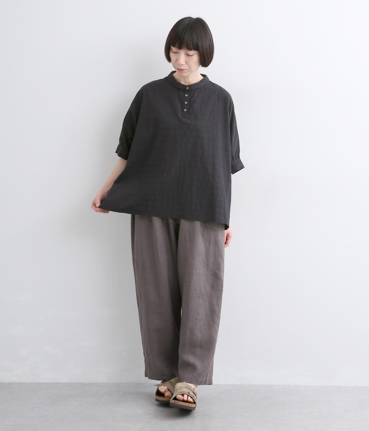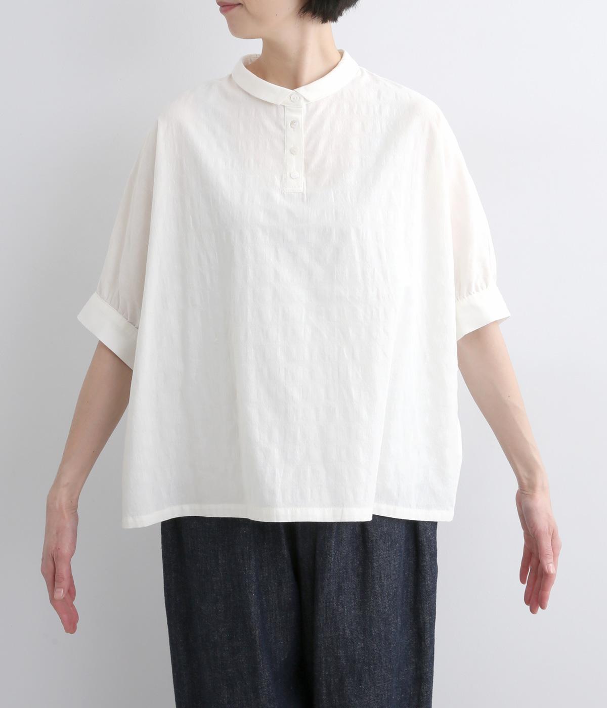 身頃続きのドルマンスリーブがリラックス感のあるシルエットを表現するブラウスです。きちんと感とかわいらしさを併せ持つチビ襟が顔まわりのアクセントに。スリット入りの袖口で動きを妨げません。