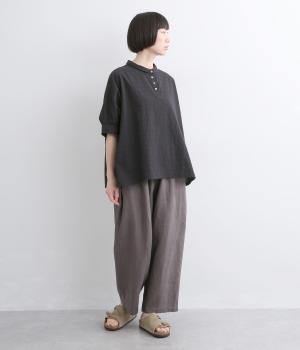 しなやかな肌ざわりを持つ、軽やかな薄手のコットン素材です。生地はジャカード織りでボーダー状に柄を表現しているのが特徴に。