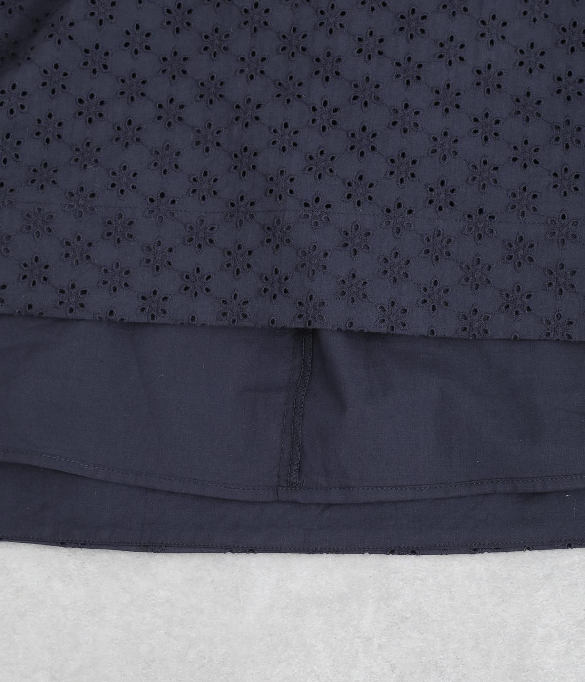 清楚でシックな印象の小花レースです。袖は裏地をつけず、腕のラインを拾いにくいほのかな透け具合で、軽やかさもたらします。ウエストの切替からふんわりと上品に広がり、動きに合わせて優雅なシルエットを描きます。