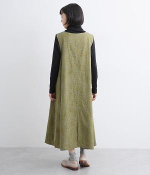 首元のカットが特徴的で、くるみボタンがアクセントのデザインです。シックなボタニカル柄で上品に仕上がりました。インナーにブラウスやニットを合わせたり、カーディガンやジャケットを羽織ったりと、幅広い着こなしが叶います。