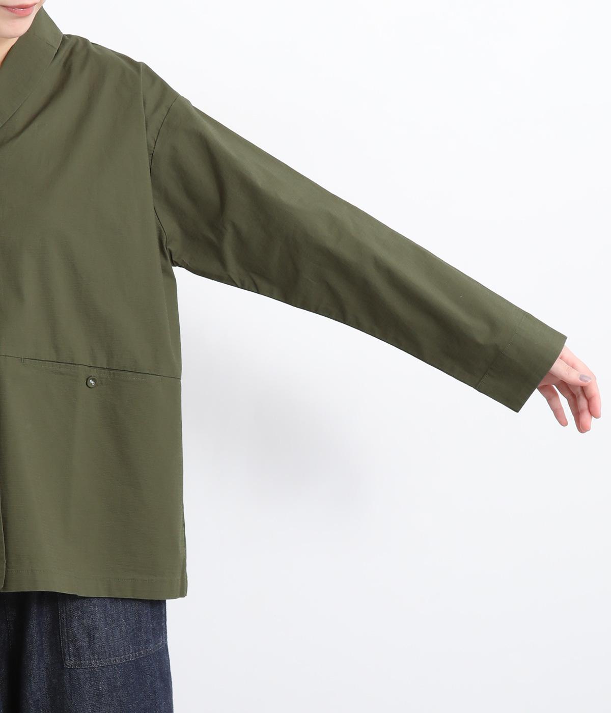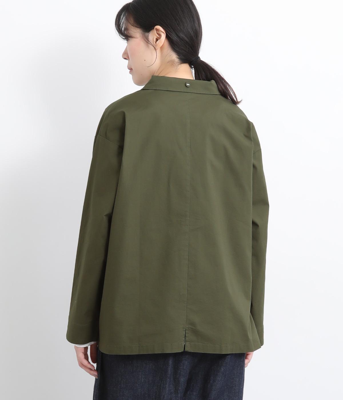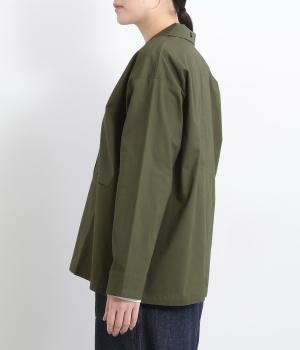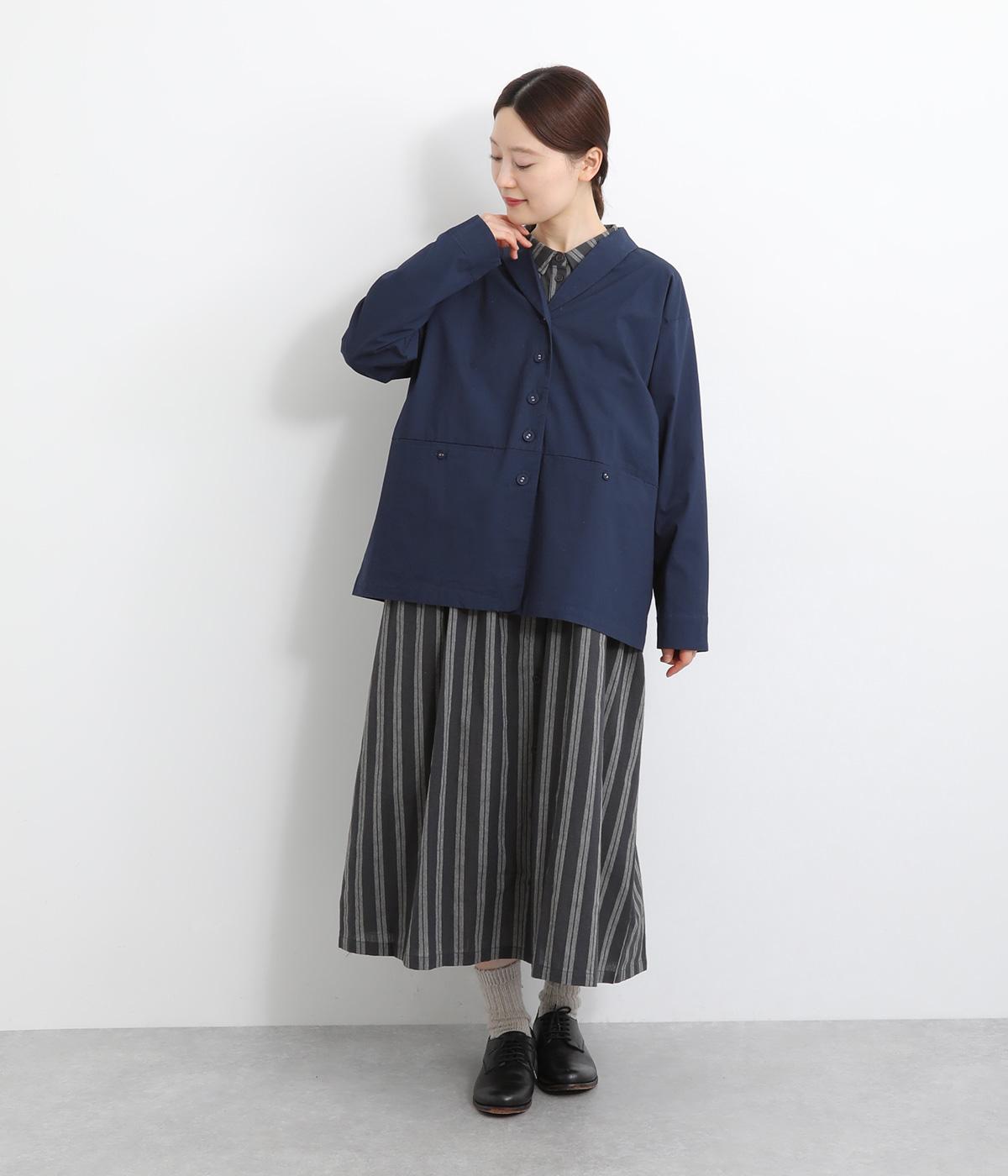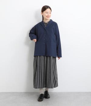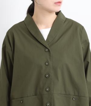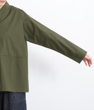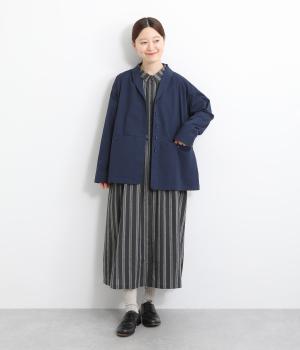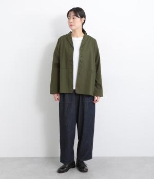 コットンにポリウレタンを混紡したやや伸びのある生地。軽くさらっとしていて、季節の変わり目にも丁度良い素材感です。しっかりとしたハリがあり、着こなしを品よく仕上げてくれます。