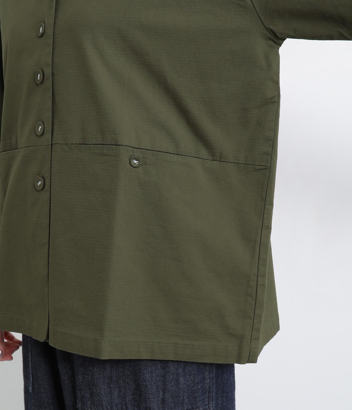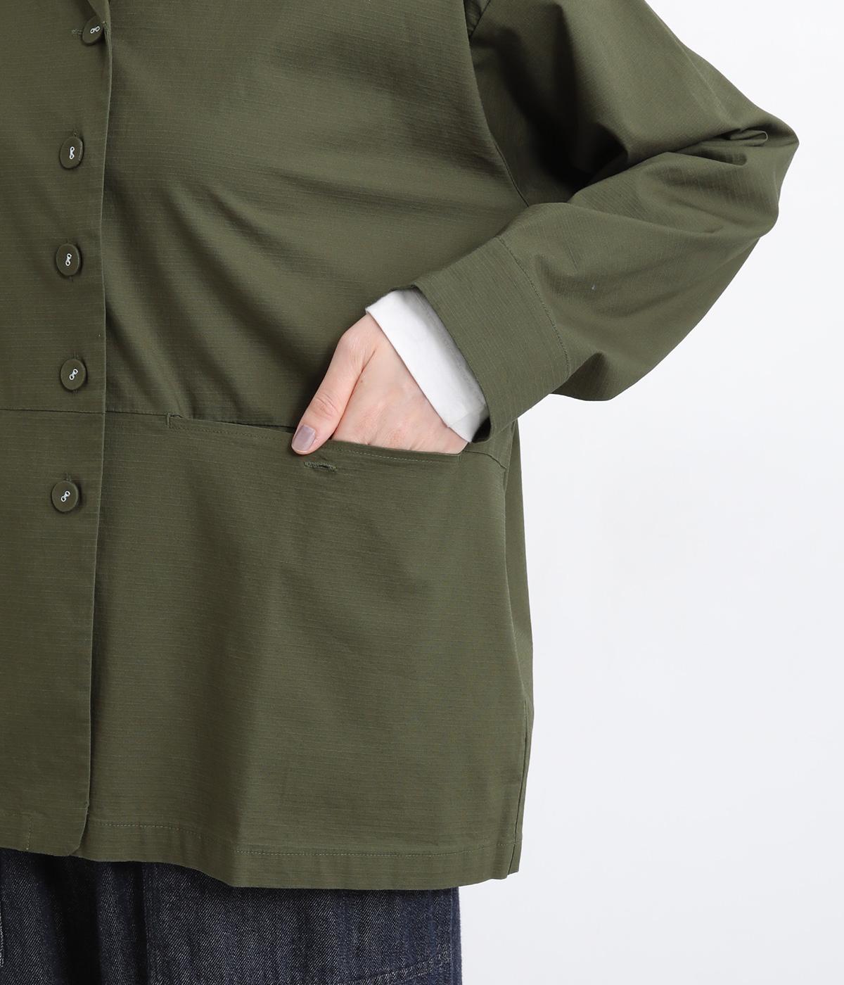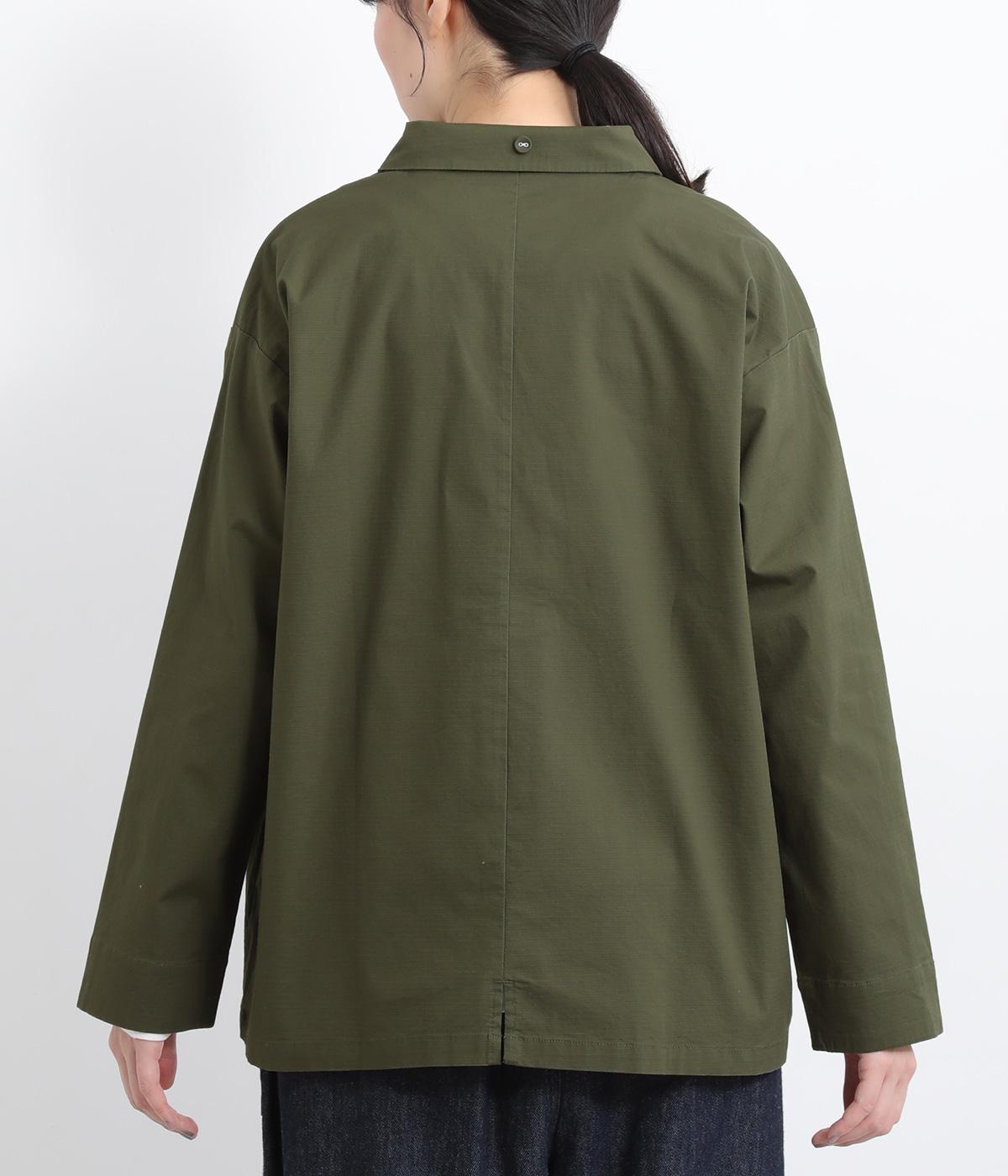 コットンにポリウレタンを混紡したやや伸びのある生地。軽くさらっとしていて、季節の変わり目にも丁度良い素材感です。しっかりとしたハリがあり、着こなしを品よく仕上げてくれます。