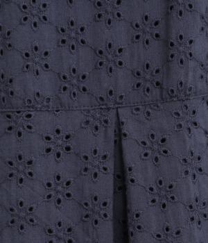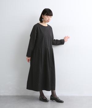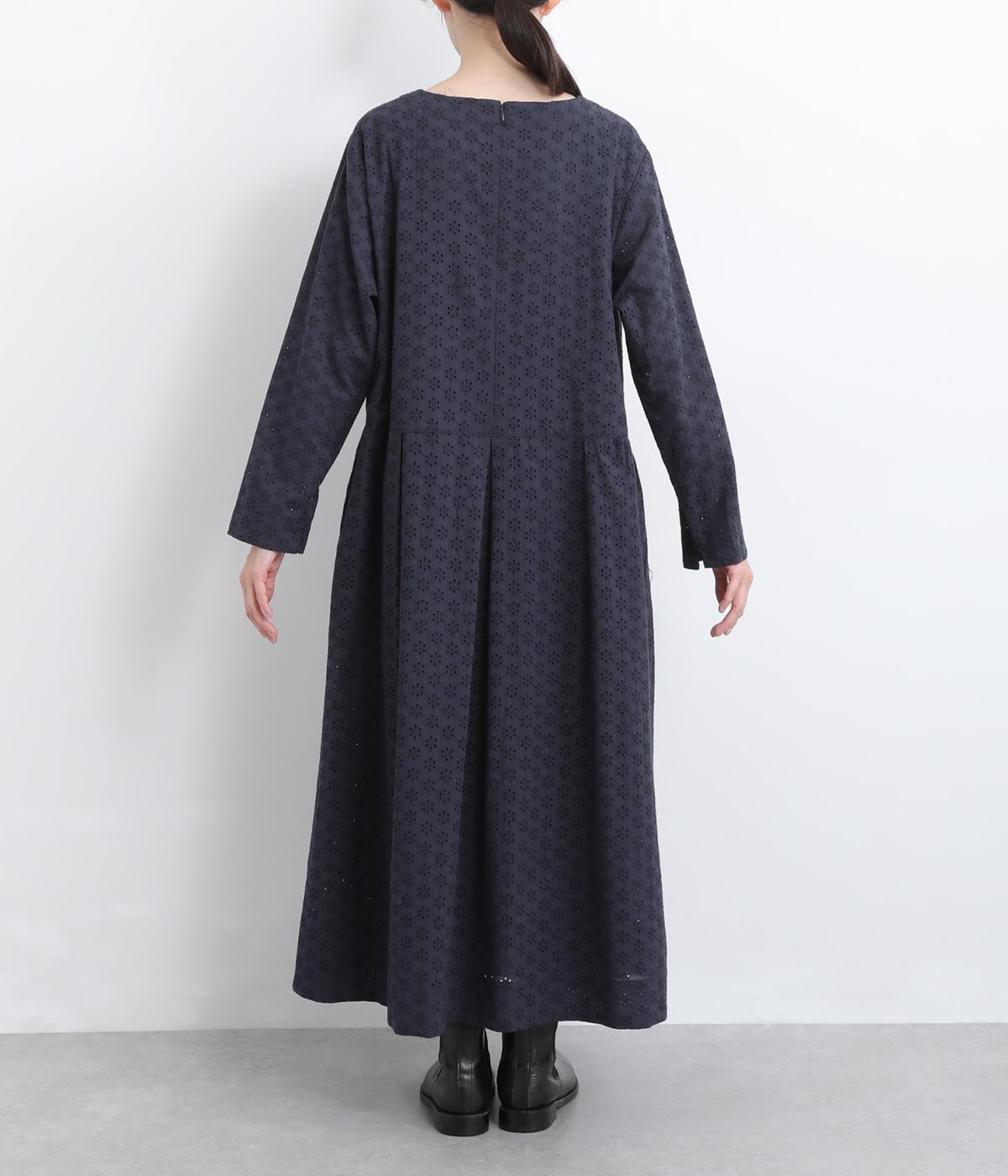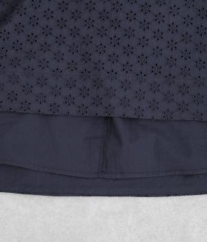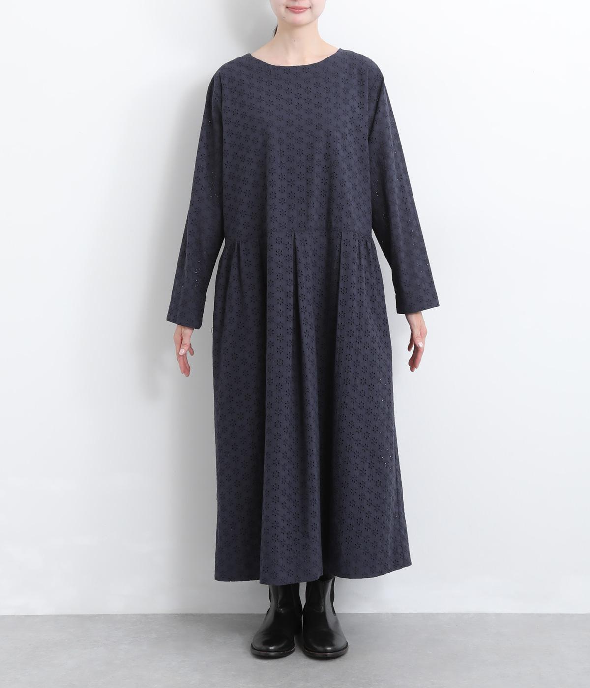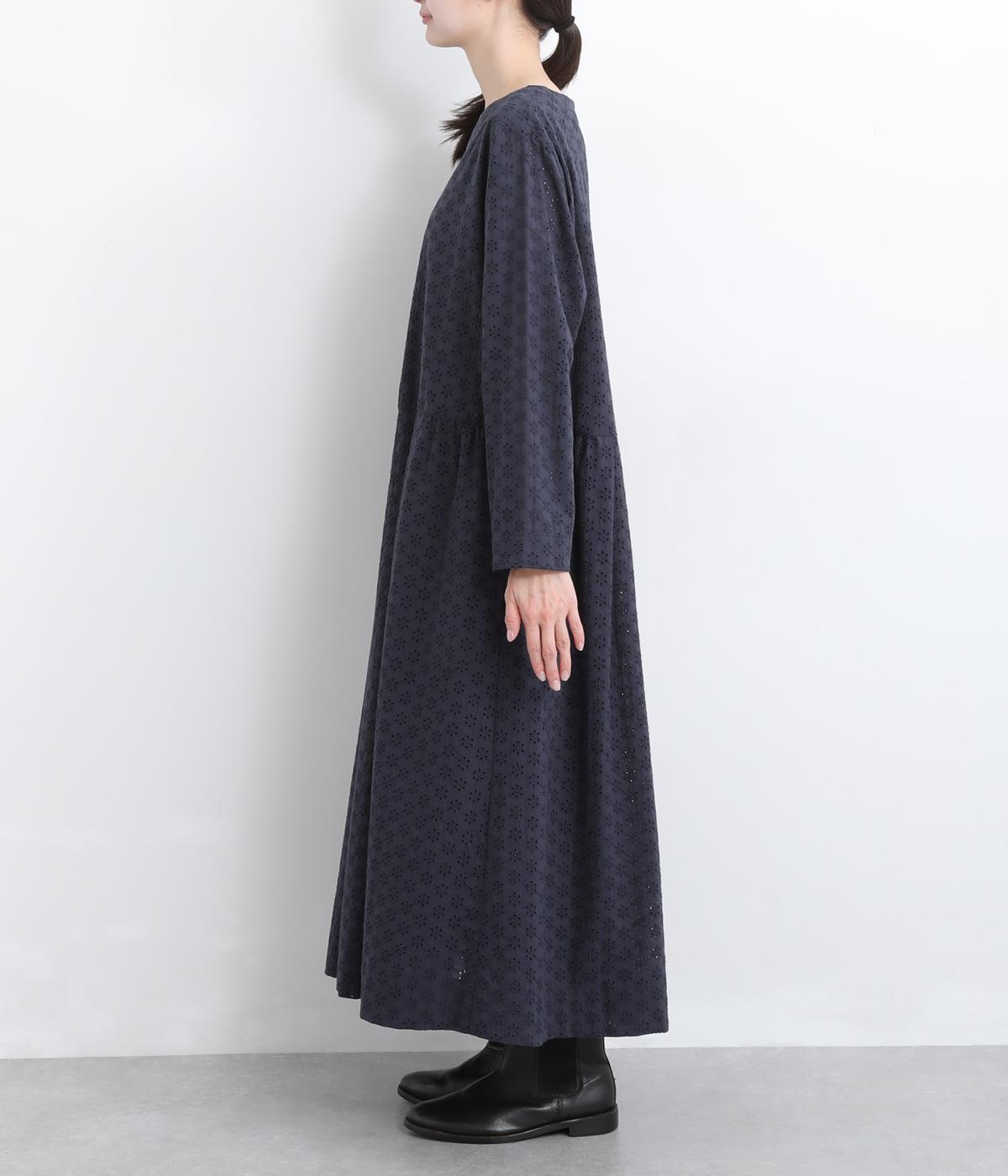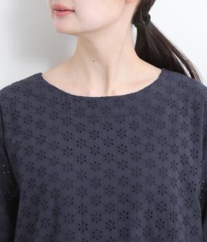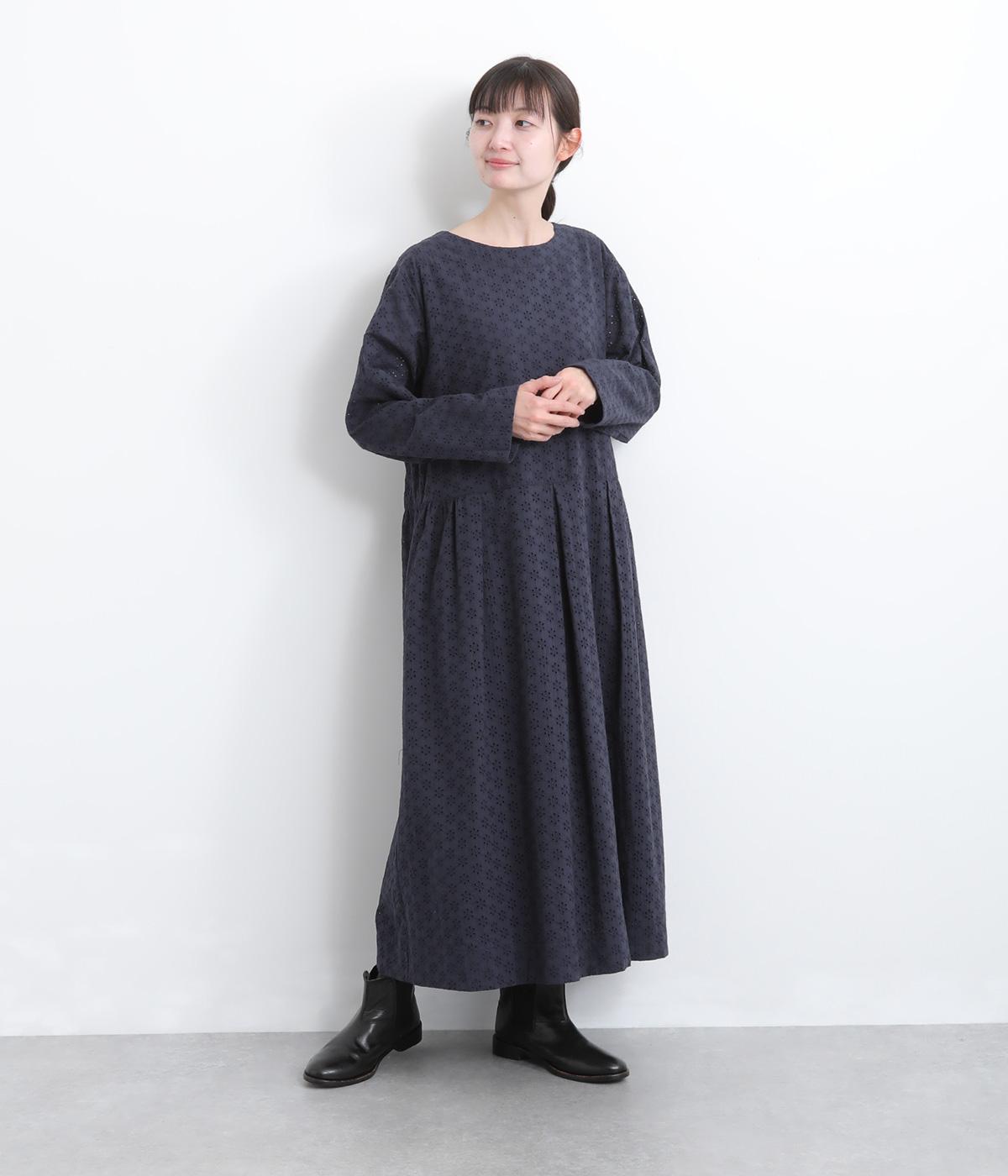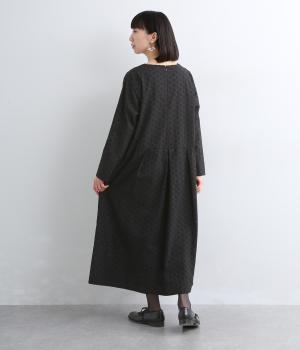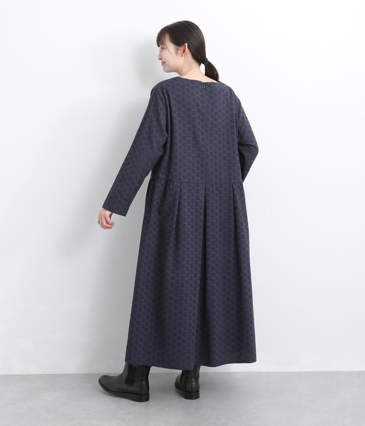清楚でシックな印象の小花レースです。袖は裏地をつけず、腕のラインを拾いにくいほのかな透け具合で、軽やかさもたらします。ウエストの切替からふんわりと上品に広がり、動きに合わせて優雅なシルエットを描きます。