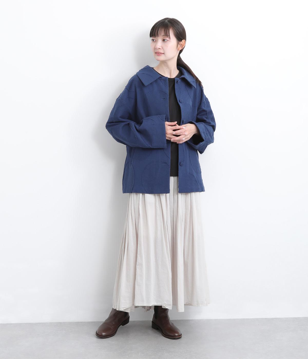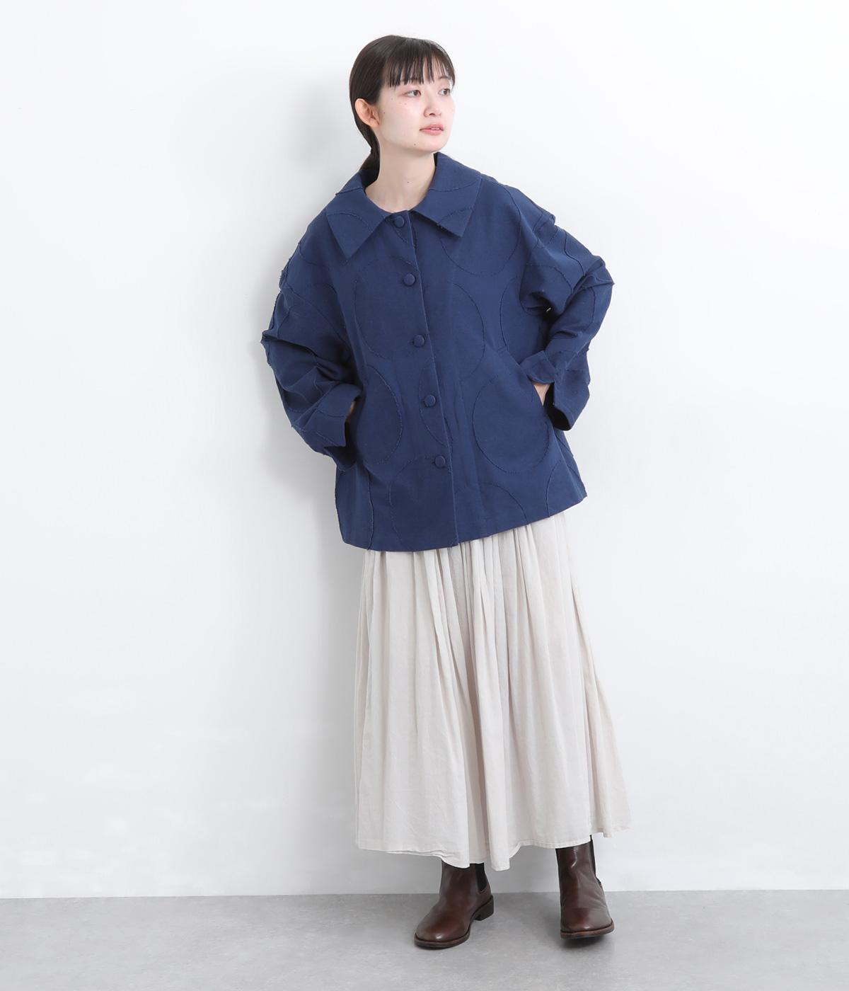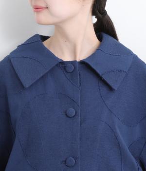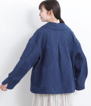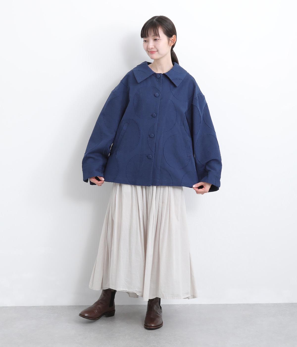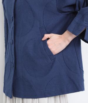さらりとした清涼感のあるコットンリネン生地を使用しました。大きなドットをジャカード織で立体的に仕立てました。天然素材ならではの味わい深い表情が魅力の素材感です。