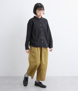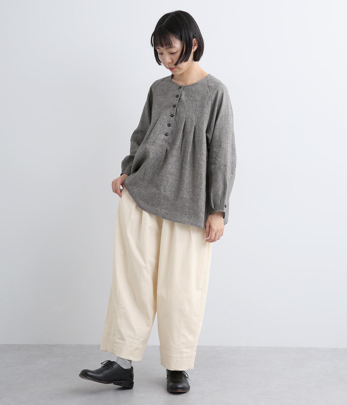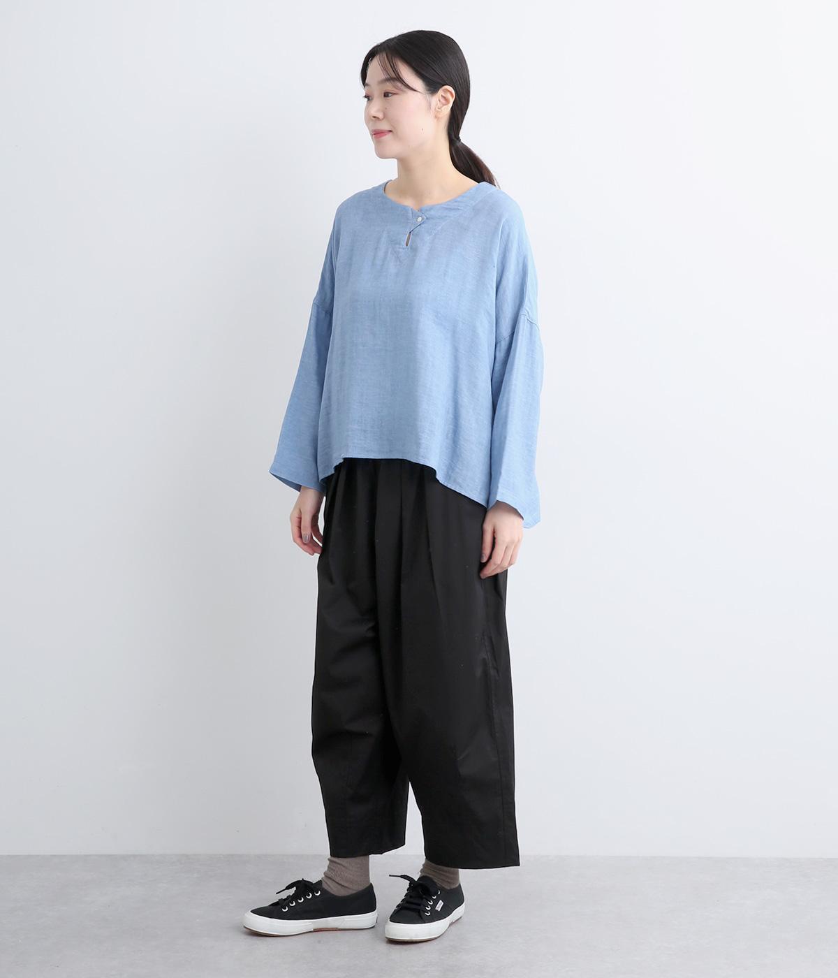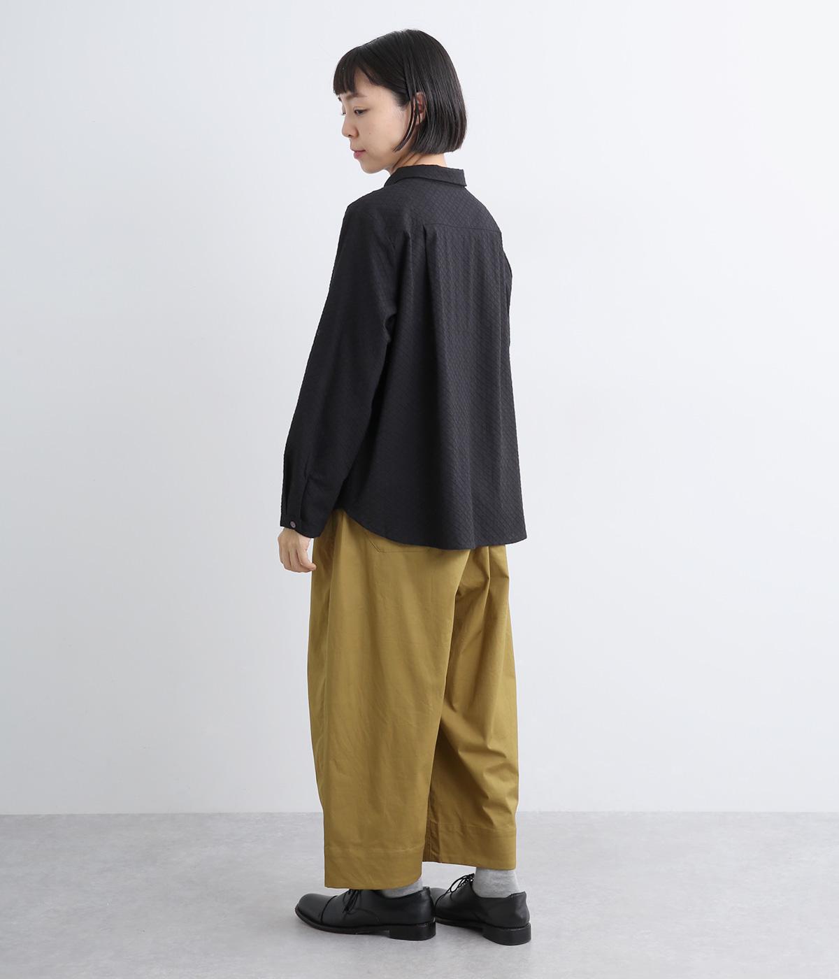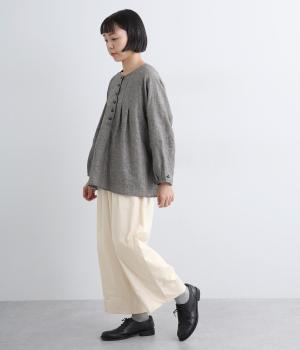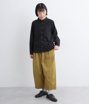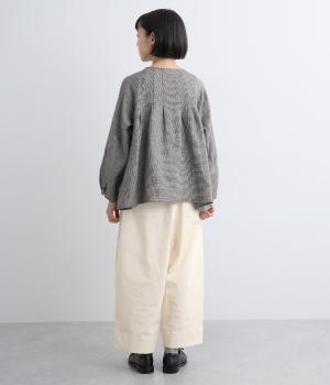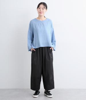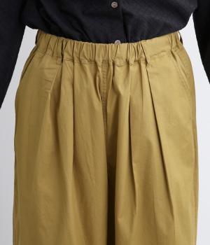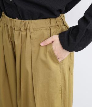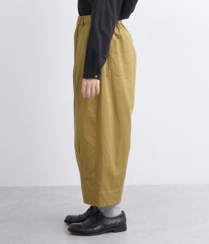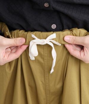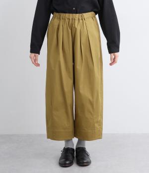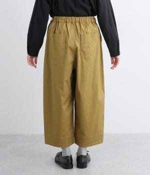 こなれ感のあるワイドシルエットで、縦に入った切り替えとタックが美しい落ち感を演出します。体のラインを拾わずリラックスした着心地ながら、カジュアルにもきれいめにも合わせやすい一枚。ウエストは総ゴム仕様で紐で調節できます。