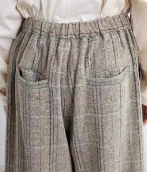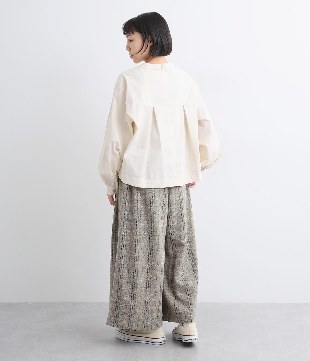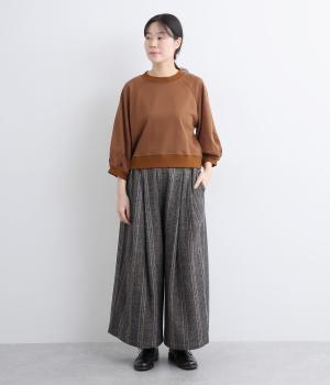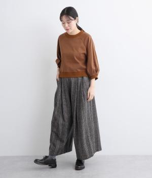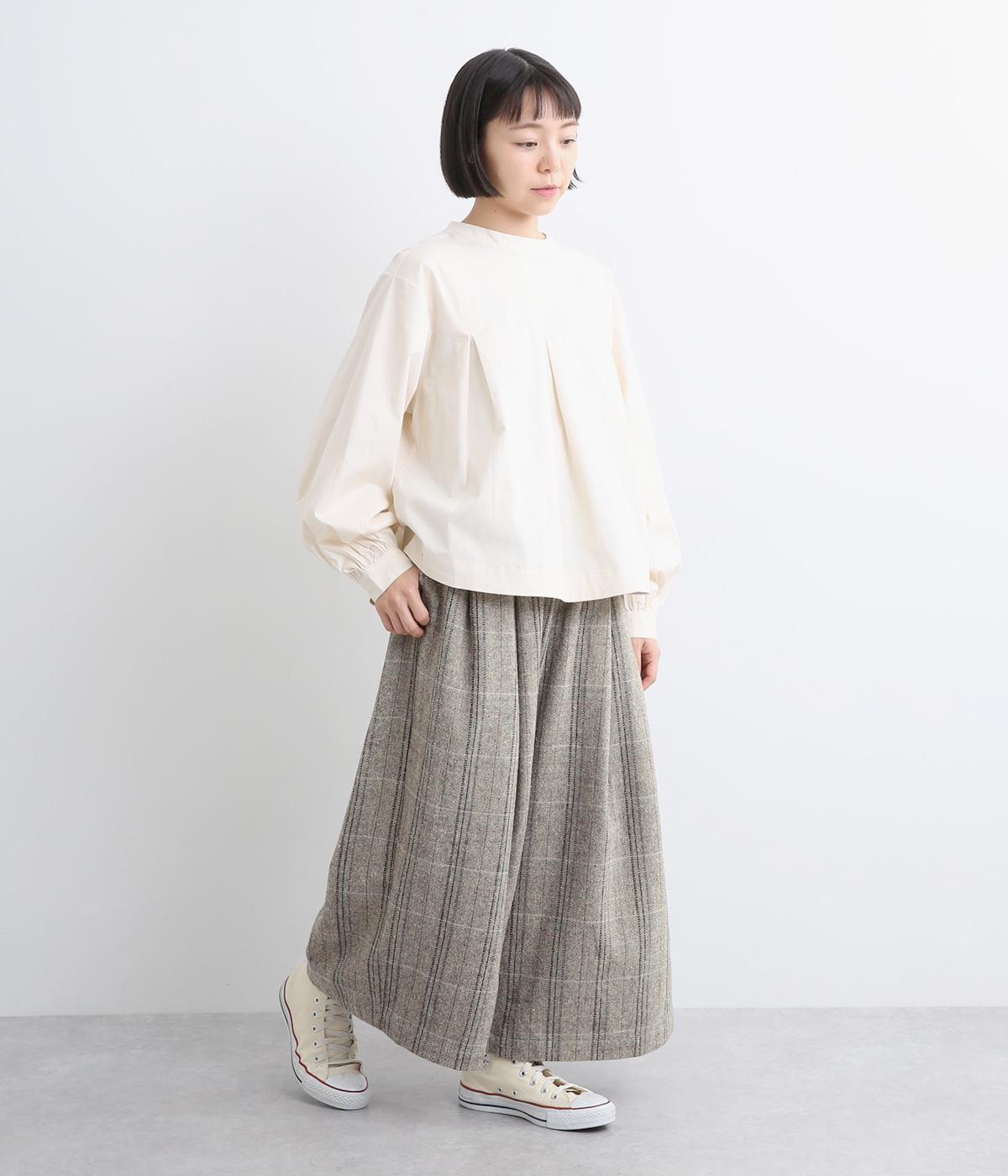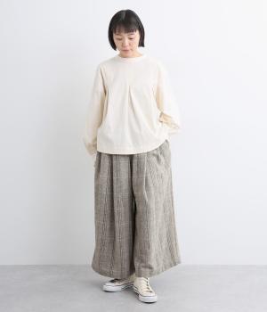 ワイドシルエットにたっぷり施されたギャザーが落ち感を出し、動くたびに自然な揺れが生まれます。すっきりしたトップスにもゆったりしたトップスにも好相性。ウエストはうしろゴム仕様で紐で調節可能です。