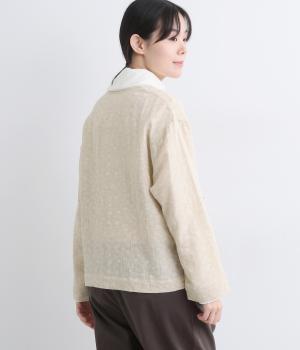 肌ざわりのやわらかいコットンガーゼに小花のジャカード織りを施しました。軽やかな風合いに品のある仕上がりです。織り柄ならではの奥行きが、表情豊かな印象を与えます。