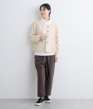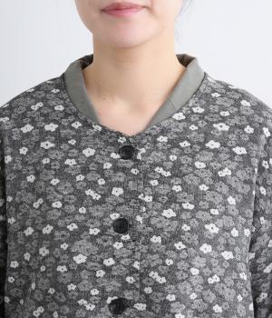 すっきりとしたノーカラーが上品な印象を与えるカーディガンです。大きなポケットが程よいカジュアル感を添えています。シンプルで上品な小花柄はさまざまなボトムスやインナーに合わせやすく、着まわし力も抜群です。