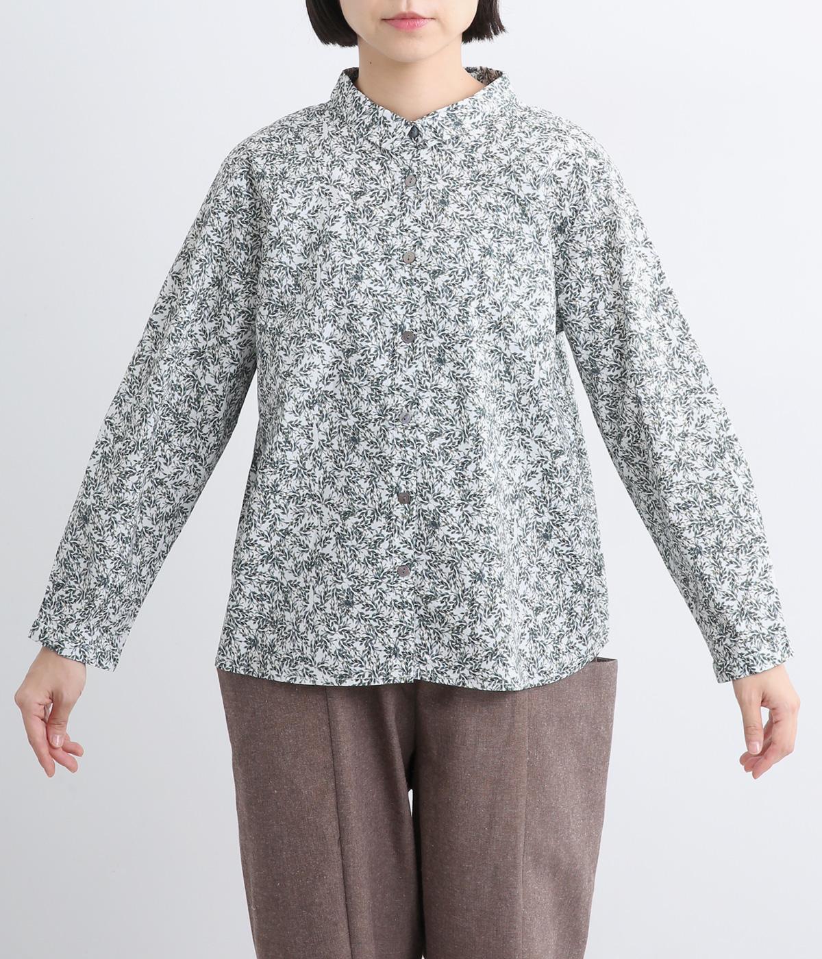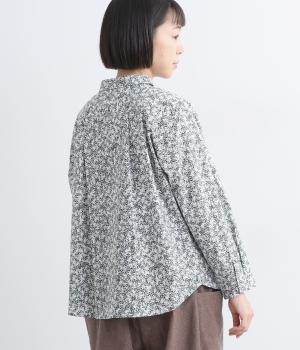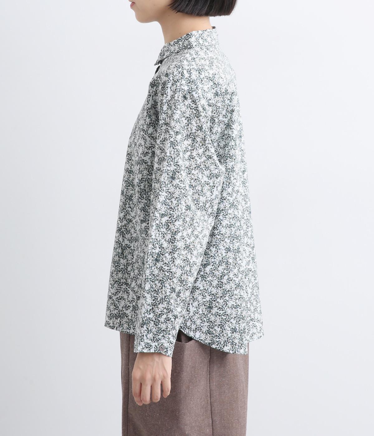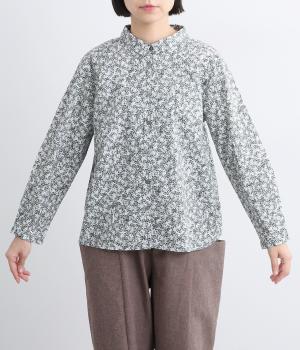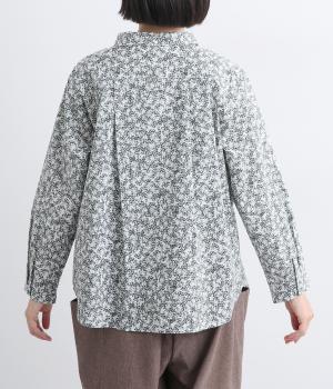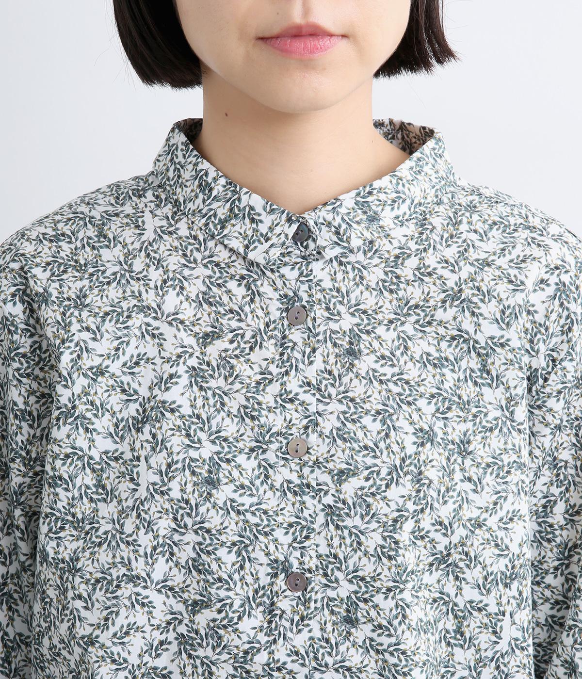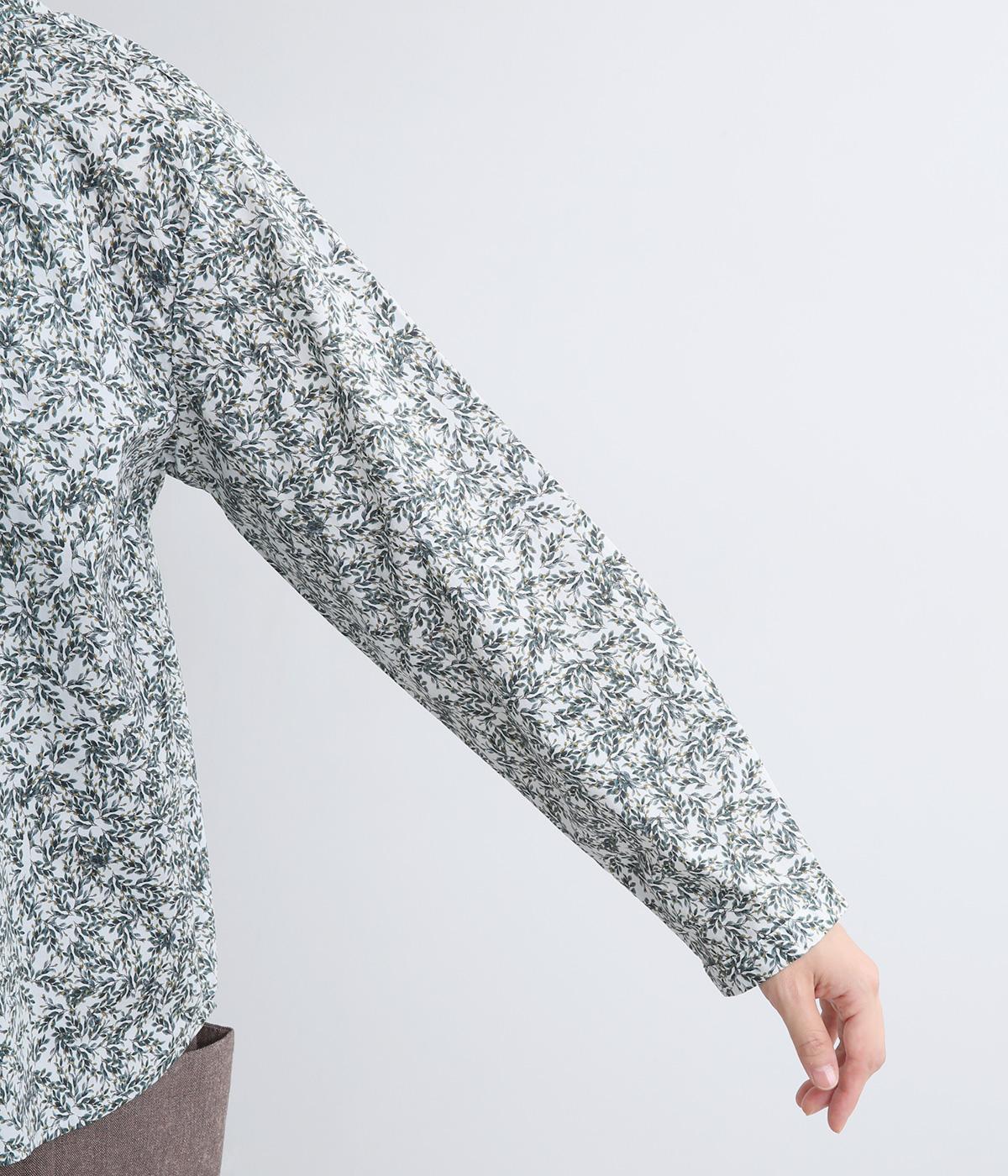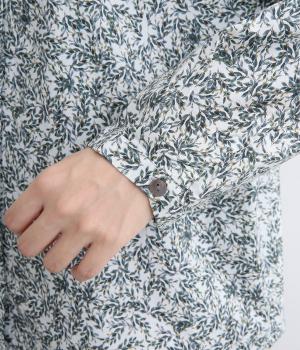 シックな草花プリントで落ち着いた着こなしが叶います。小さめの襟がさりげなく品を添え、顔まわりをすっきりと見せてくれます。きちんと感のあるデザインで、コーディネートの主役になる一枚です。