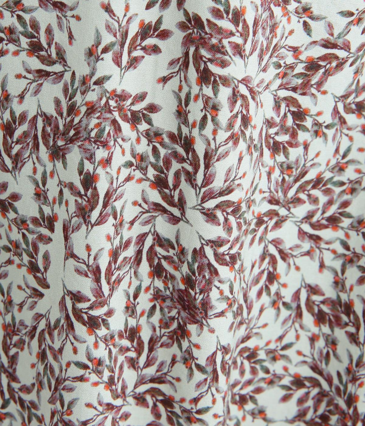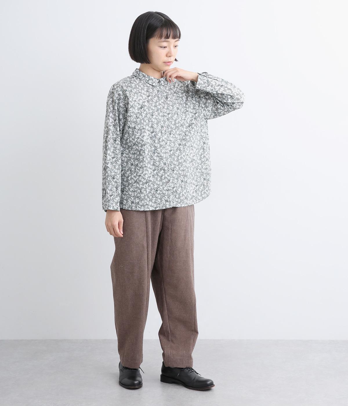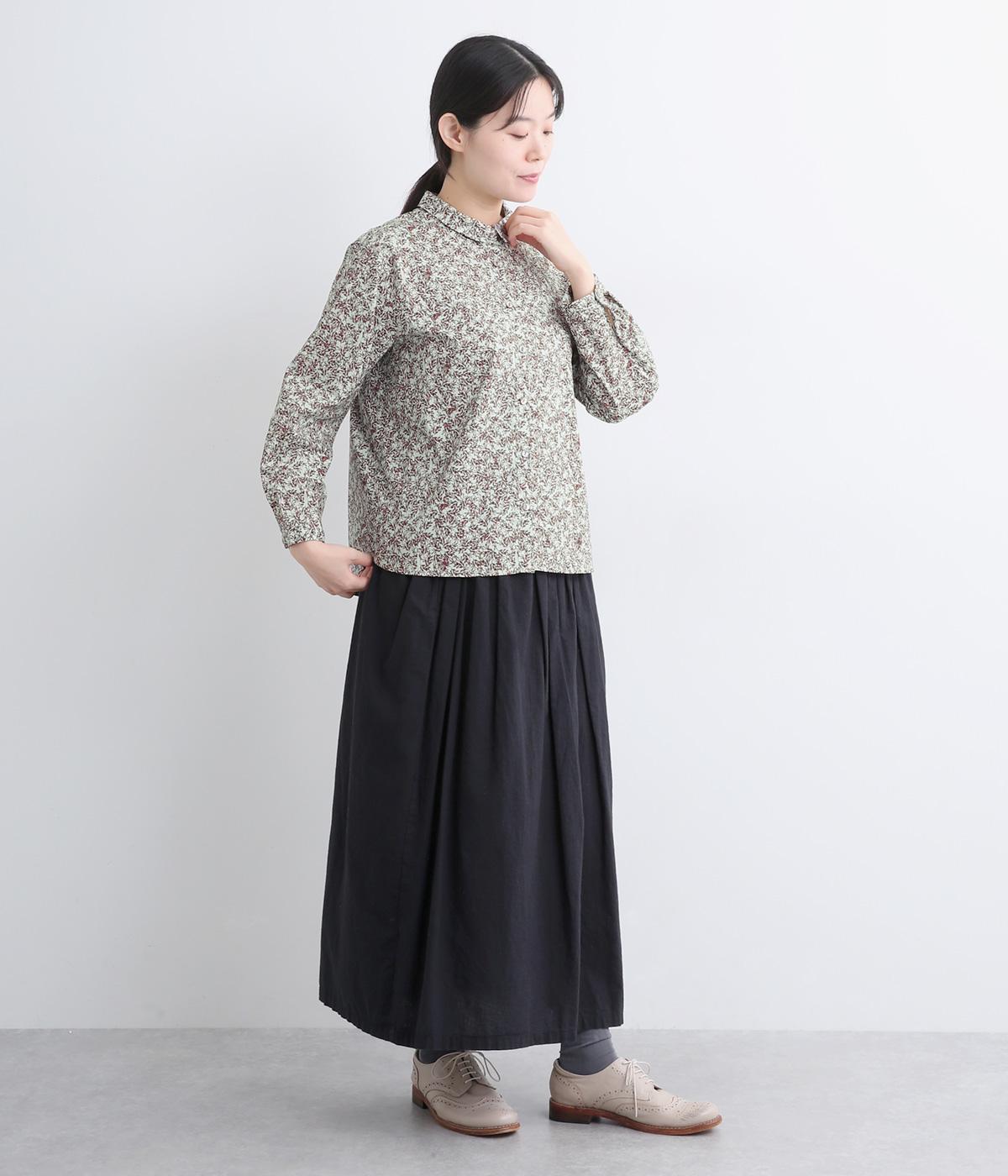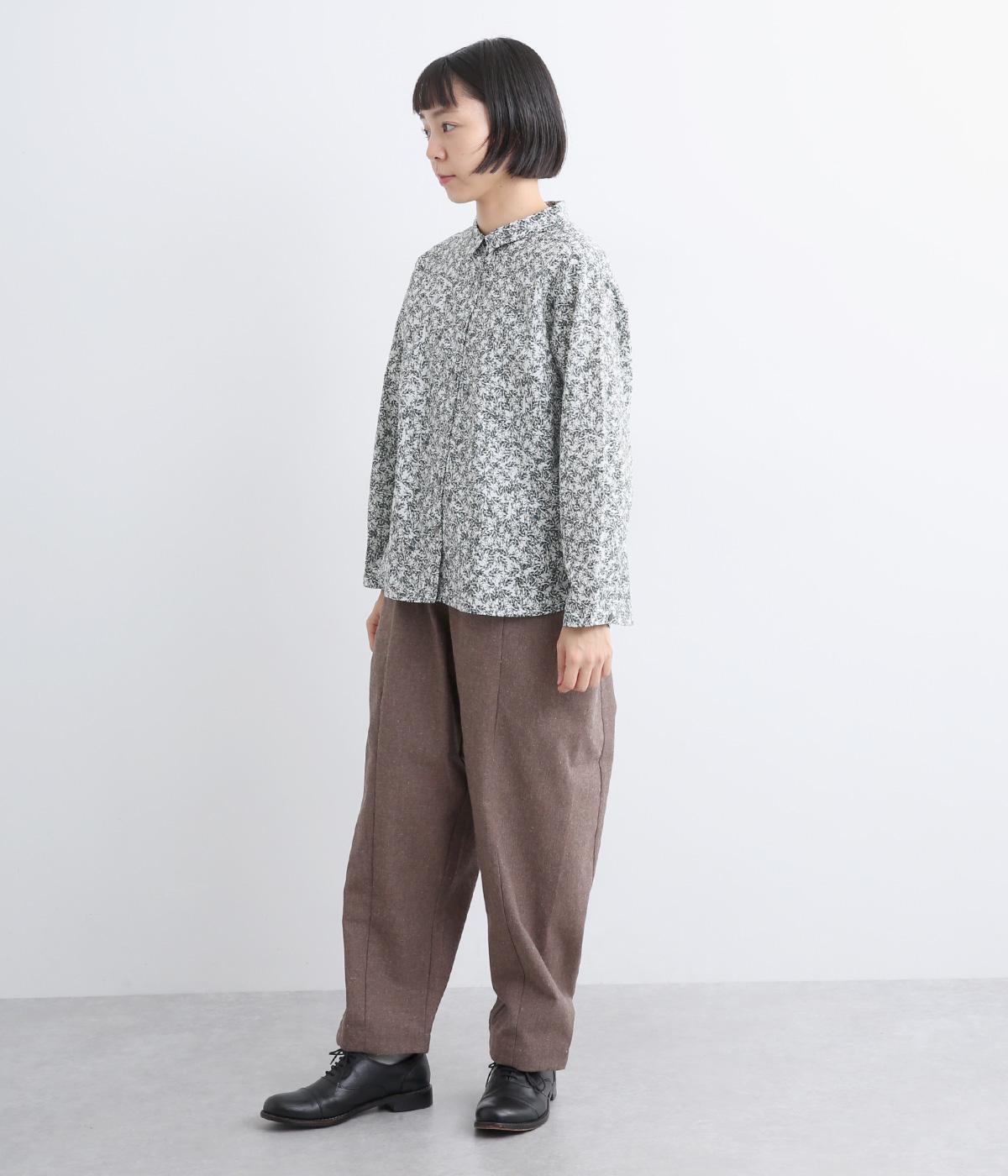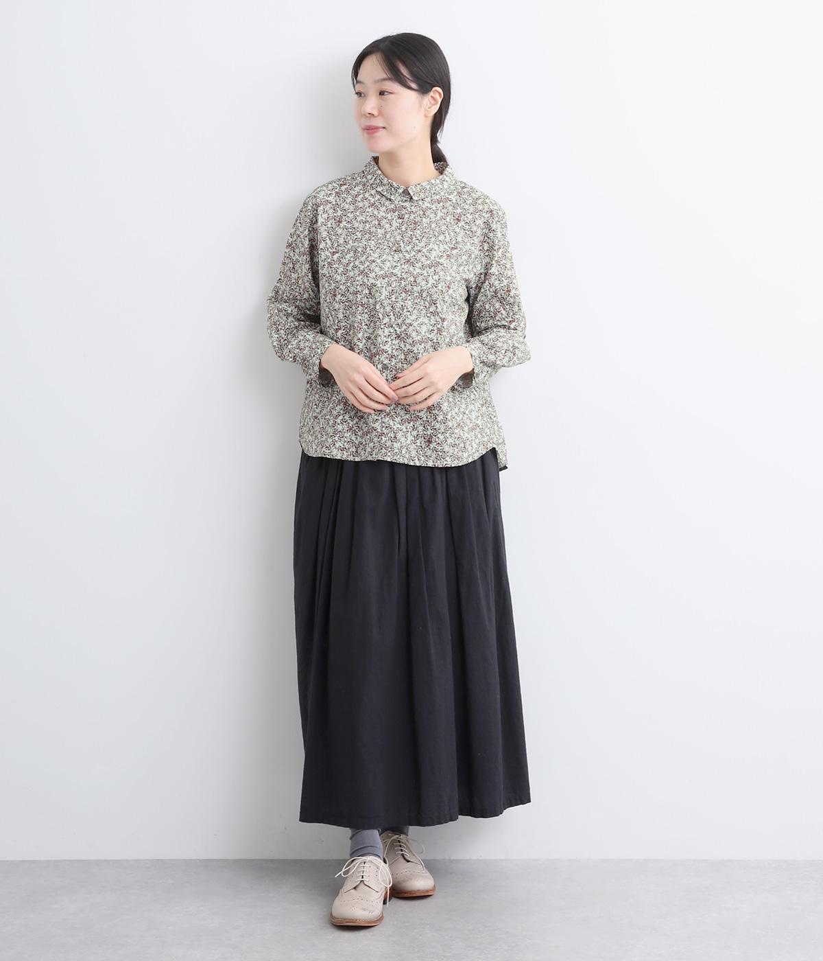 シックな草花プリントで落ち着いた着こなしが叶います。小さめの襟がさりげなく品を添え、顔まわりをすっきりと見せてくれます。きちんと感のあるデザインで、コーディネートの主役になる一枚です。