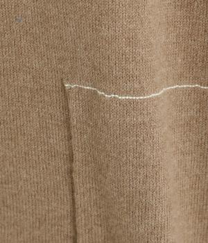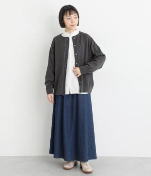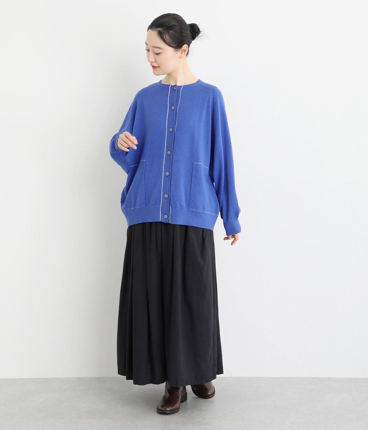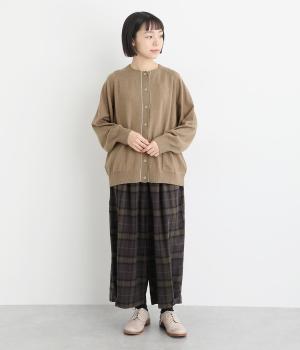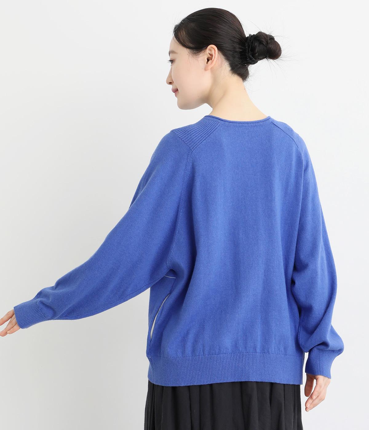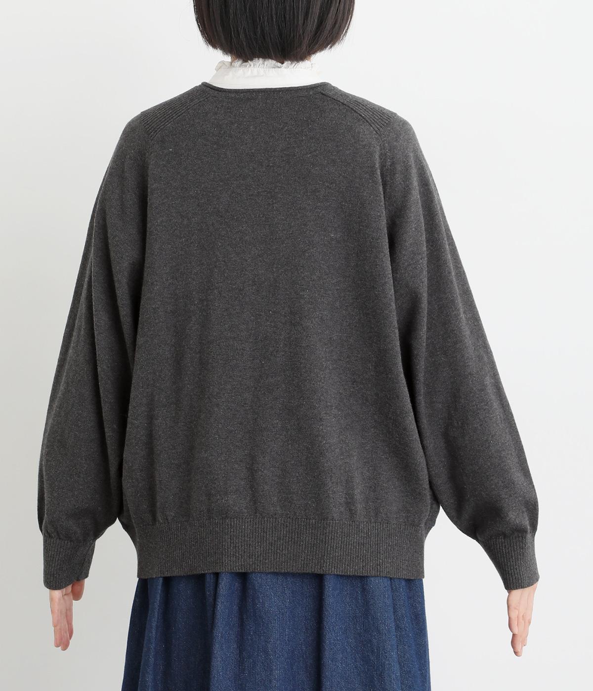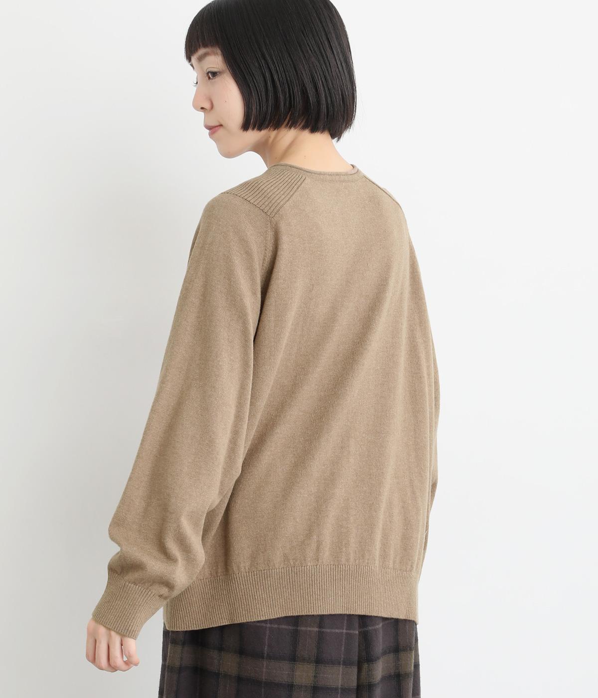 空気をふくんだような軽さと、やわらかいタッチが魅力のコットンカシミヤ。ほどよい厚みで体になじみ、あたたかさと軽やかさのバランスがよい素材です。のびやかでチクチクしにくく、ストレスのない着心地なのも◎。