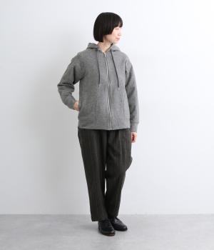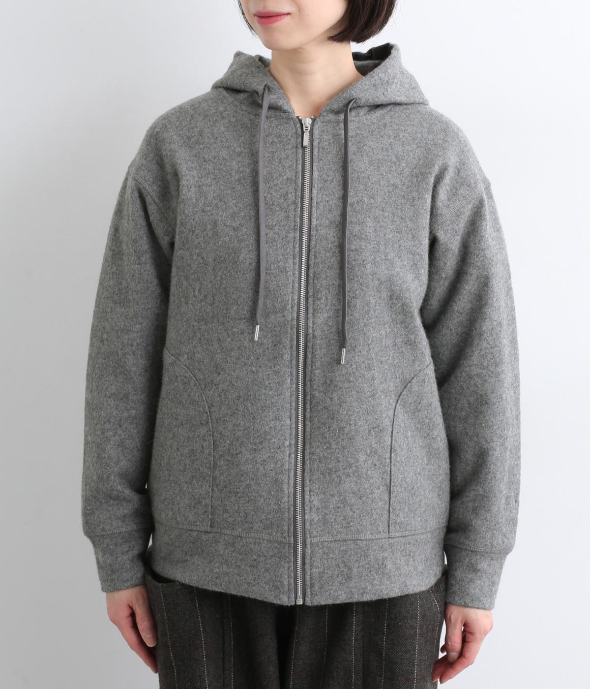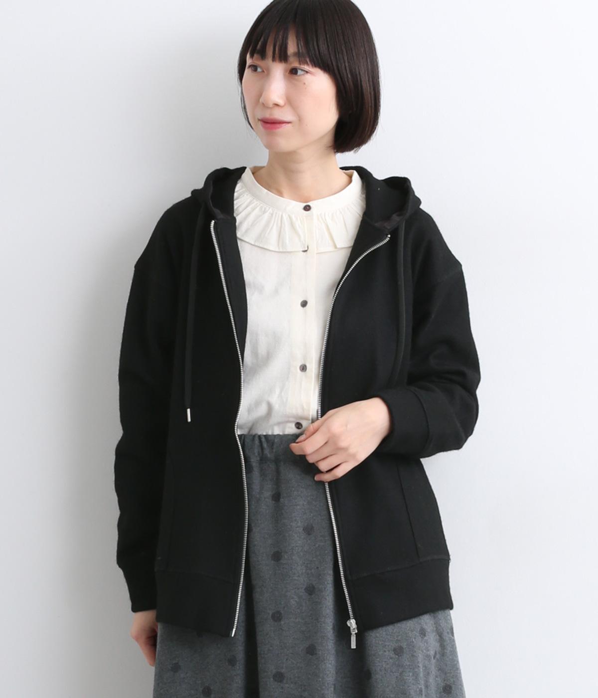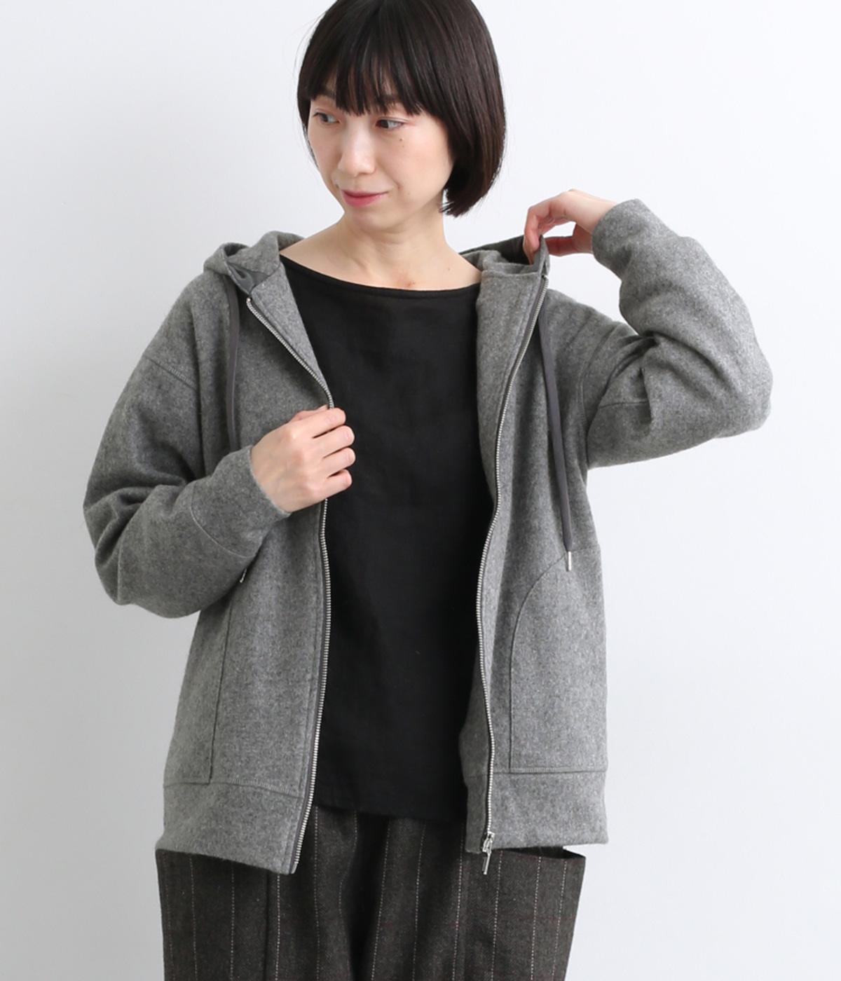 ベーシックなフルジップパーカーを上品な生地で仕立てました。カジュアルにもきれいめにも着まわせる一枚です。シンプルな装いにほんのり品をプラスします。コートのインナーにしても抜け感が出ておすすめです。