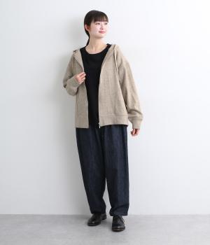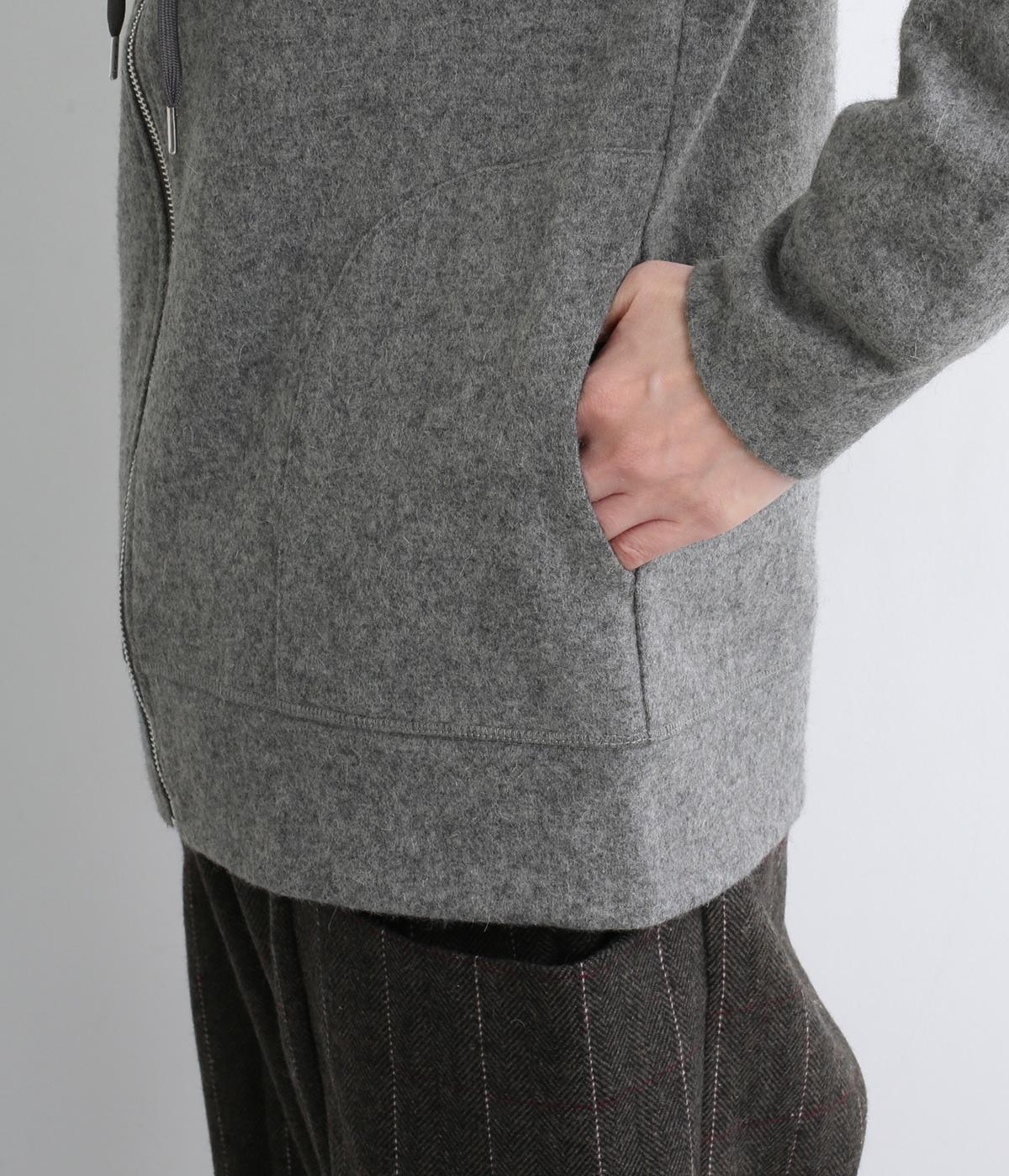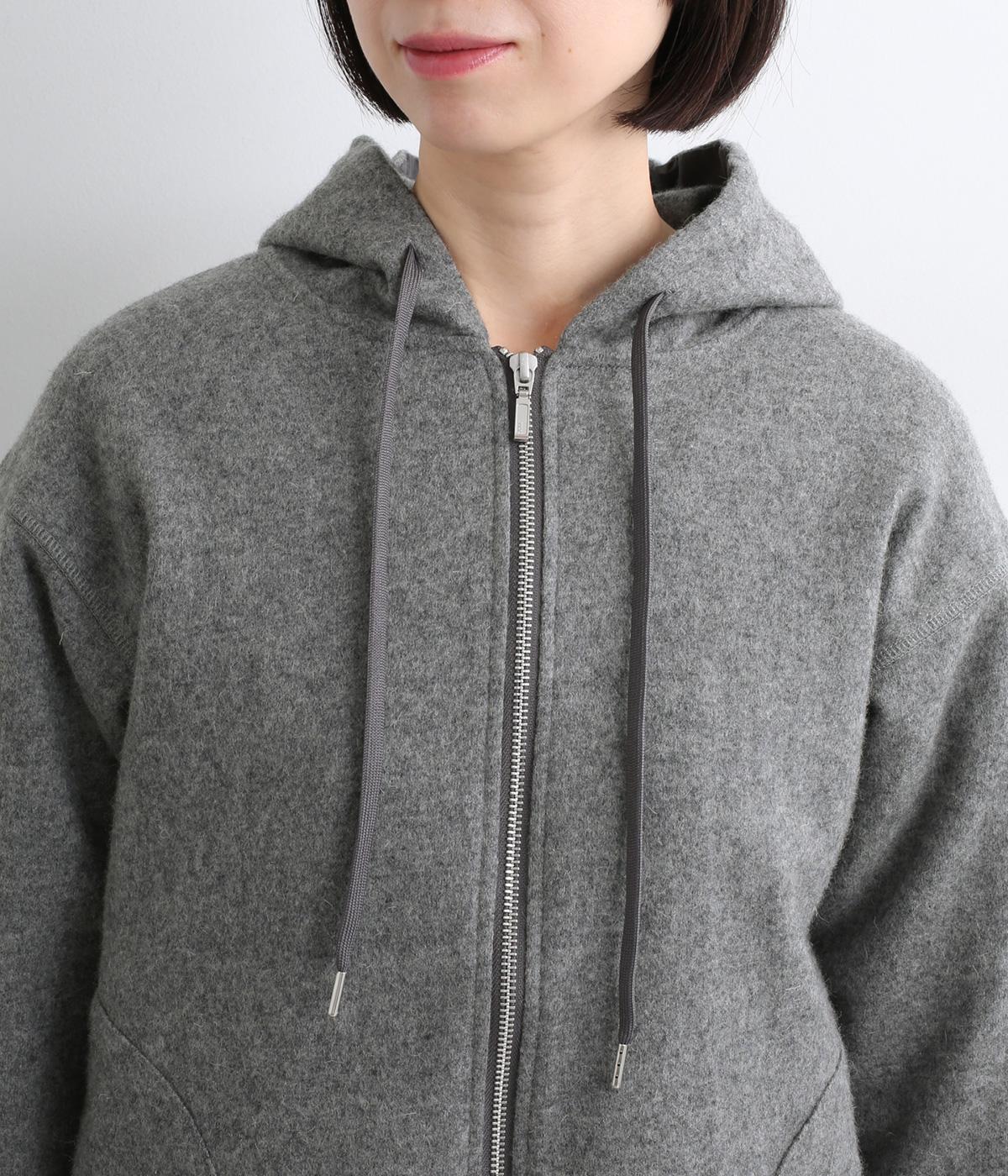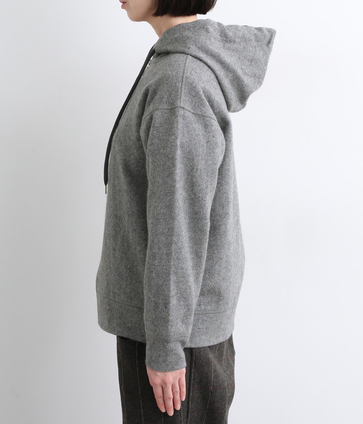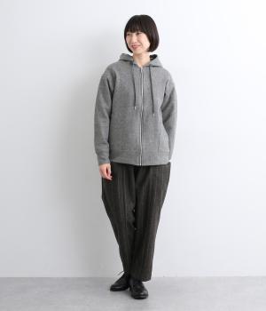 ベーシックなフルジップパーカーを上品な生地で仕立てました。カジュアルにもきれいめにも着まわせる一枚です。シンプルな装いにほんのり品をプラスします。コートのインナーにしても抜け感が出ておすすめです。