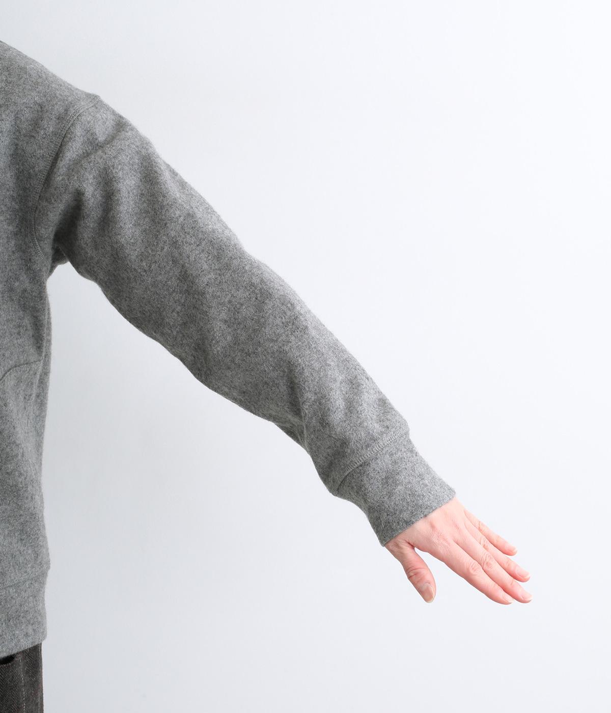 ドライな質感で表面に起毛感のある混紡生地を使用しました。ほどよいハリがシルエットを美しくキープします。やわらかくあたたかみのある、秋冬にぴったりな素材感です。