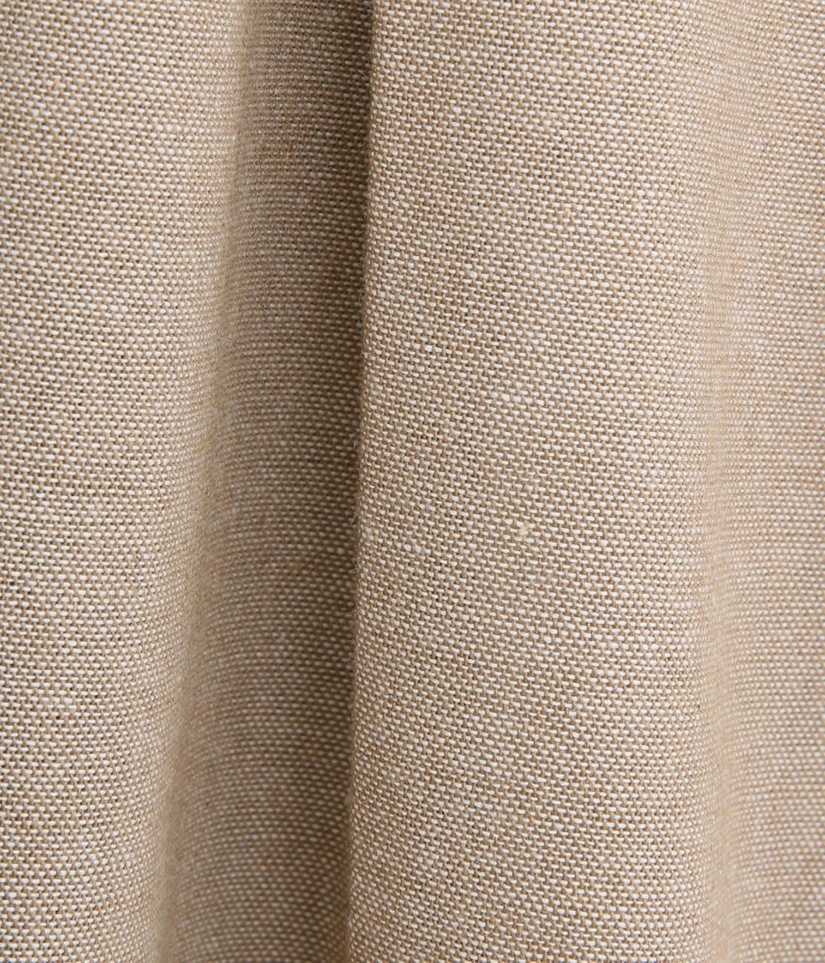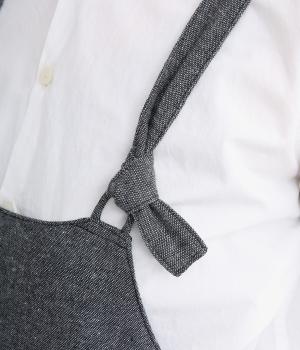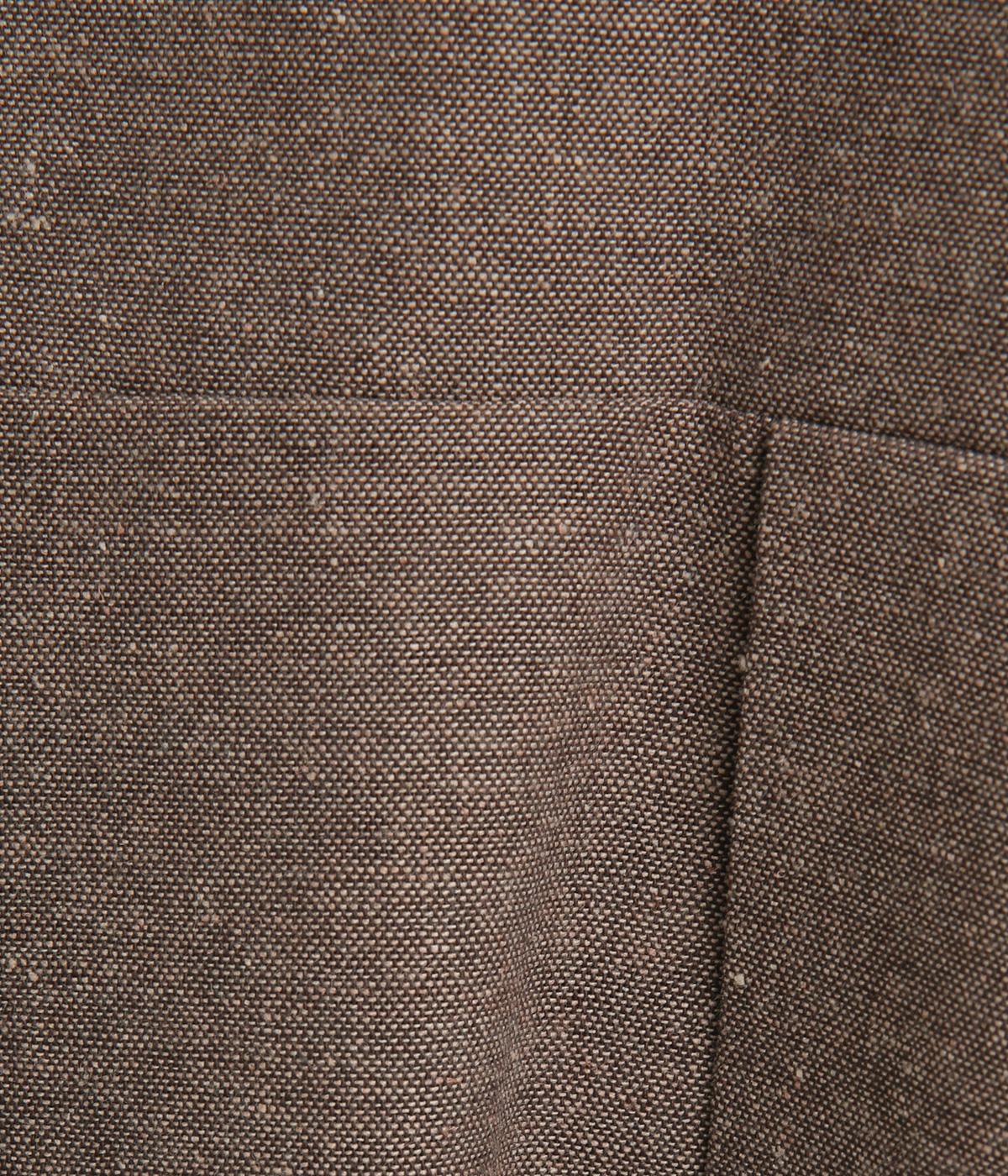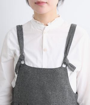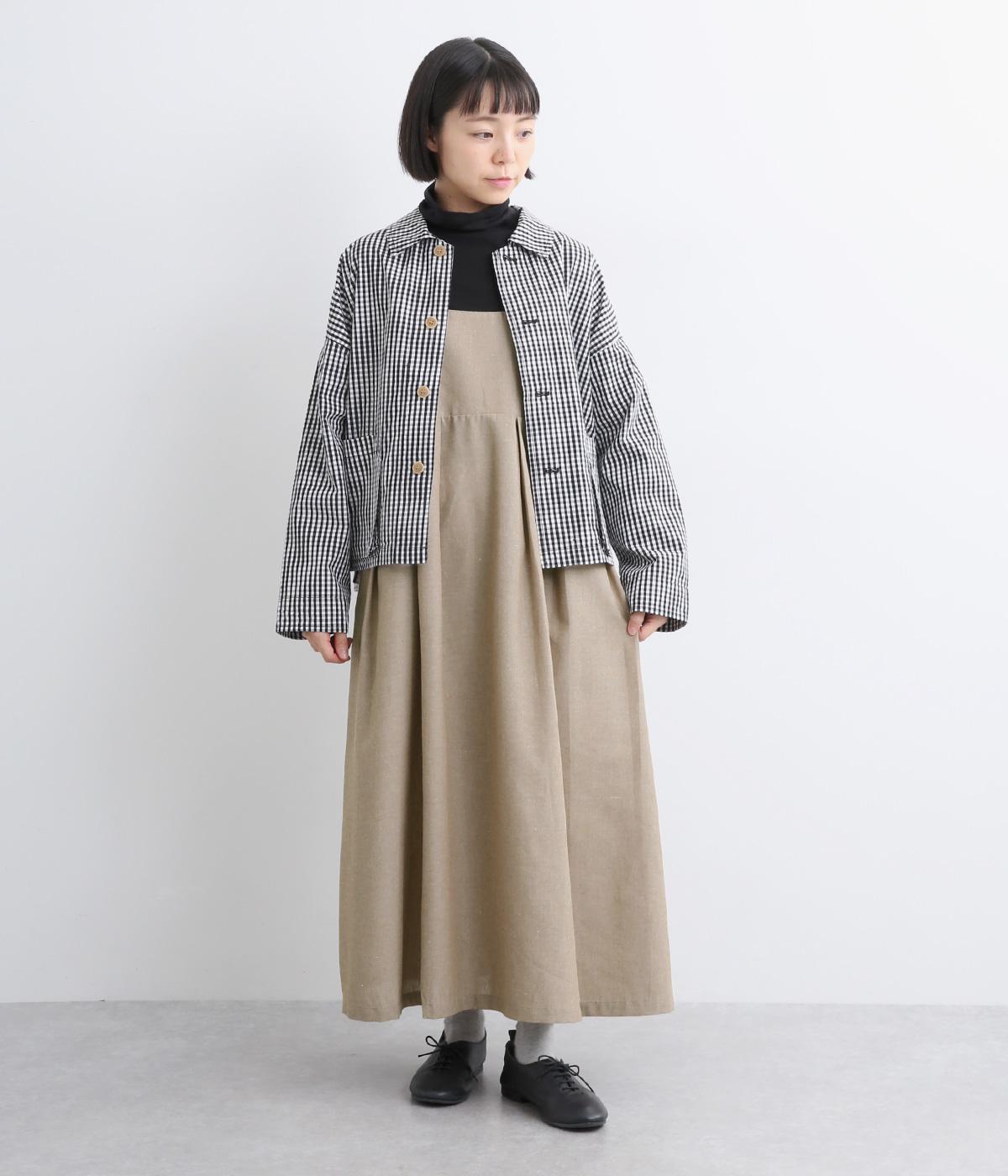 コットンとリネンの混紡で、さらりとしたツイード調の平織生地を使用しました。軽やかな肌ざわりで、素朴ながら品のある雰囲気に仕上がっています。