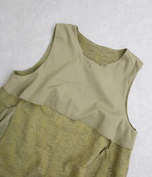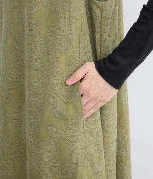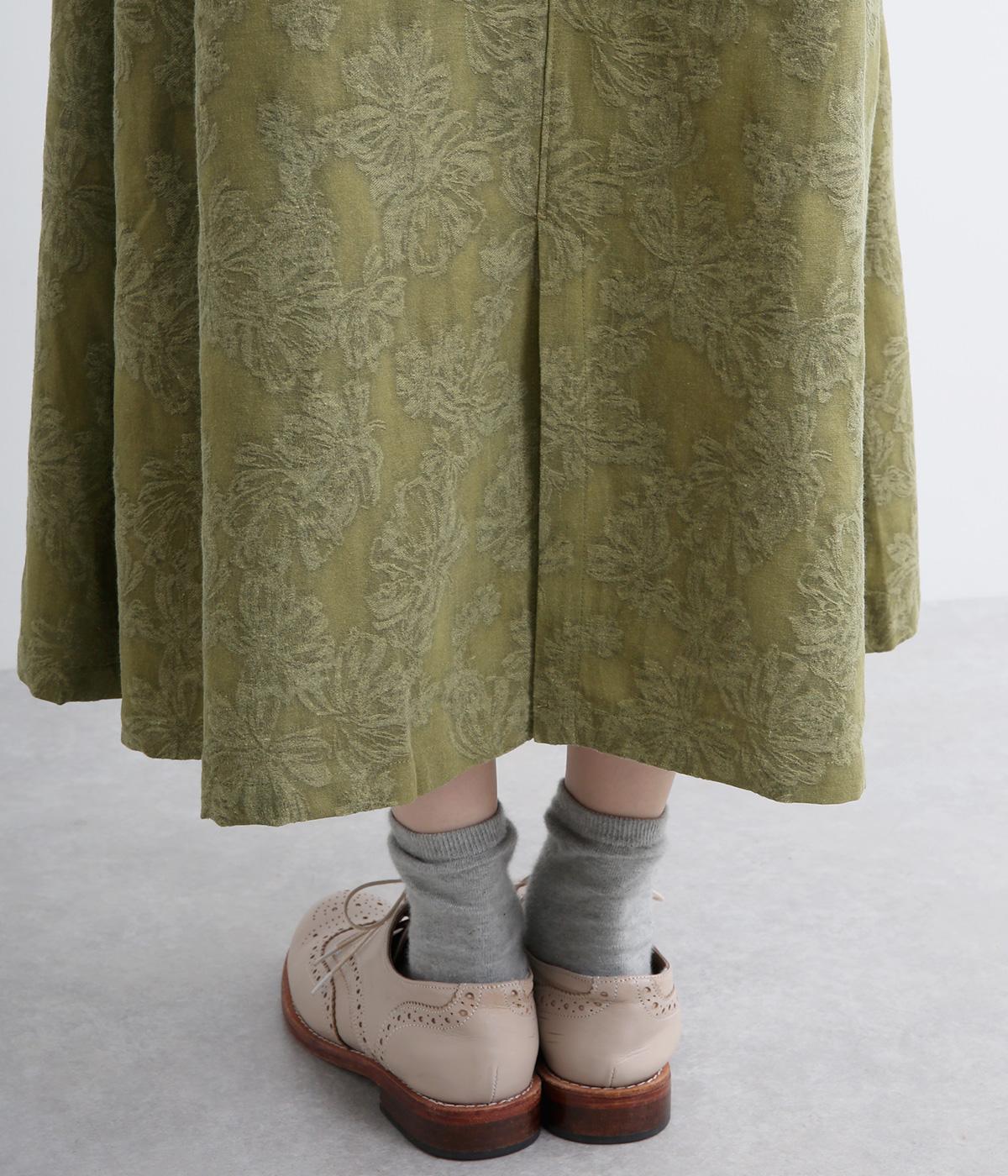 レーヨン、コットン、リネンを絶妙にブレンドしたジャカード生地で、ボタニカル柄を立体的に表現しました。やわらかくしなやかな手ざわりと自然な風合いが魅力です。