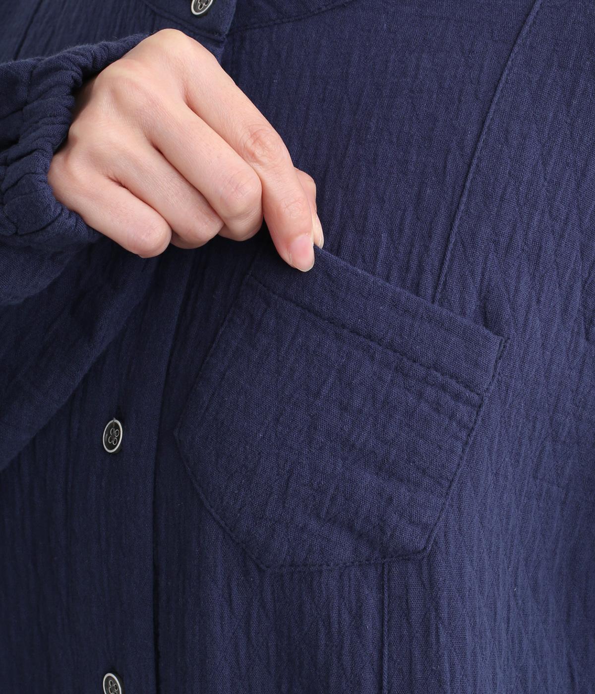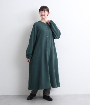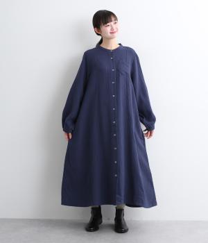ふっくらとやさしい風合いが魅力のガーゼワンピース。胸元に少し斜めに仕立てたポケットがアクセントになっています。シャーリングにした袖口がニュアンスをプラス。軽やかな着心地でレイヤードスタイルにもおすすめです。